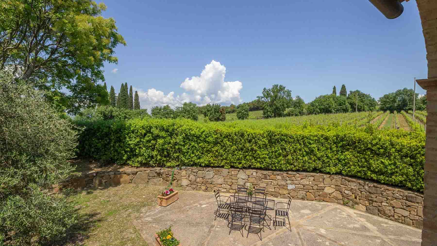 Amidst the enchanting vineyards of Montalcino, this exquisite stone estate captures the essence of rural elegance and tranquility. Imagine waking to the gentle rustle of leaves and the scent of fresh earth, as sunlight filters through the verdant canopy surrounding this serene retreat. Here, every moment is an invitation to bask in the beauty of Tuscany's rolling hills and the charm of its storied landscape. Spanning 270 square meters, this luxurious residence offers a harmonious blend of rustic charm and modern comfort. With seven spacious rooms and five beautifully appointed bathrooms, the home is designed for both relaxation and entertainment. The property features a private garden, perfect for leisurely strolls or intimate gatherings, where nature's splendor is your constant companion. Located in the picturesque countryside of Montalcino, Siena, this estate embodies the quintessential Italian lifestyle, offering a haven of peace and beauty. Living here is an experience steeped in the richness of the region's wine culture and natural beauty. Envision afternoons spent sipping local vintages on the patio, surrounded by lush greenery and the distant melody of birdsong. As the sun sets, the vineyard-laden landscape transforms into a golden tapestry, providing a breathtaking backdrop for evenings under the stars. This property is a testament to the allure of the Tuscan lifestyle—a rare opportunity to own a piece of this storied land, where timeless beauty meets modern luxury.