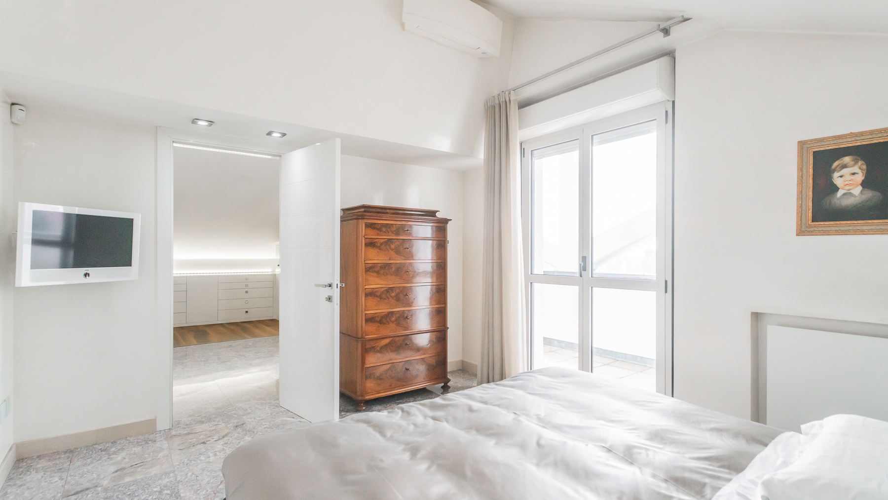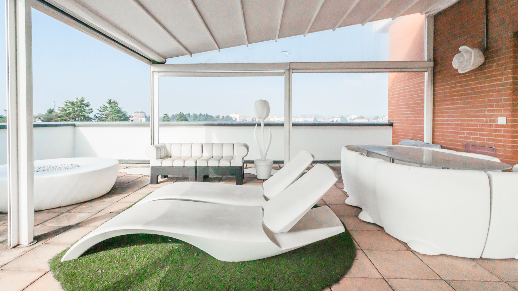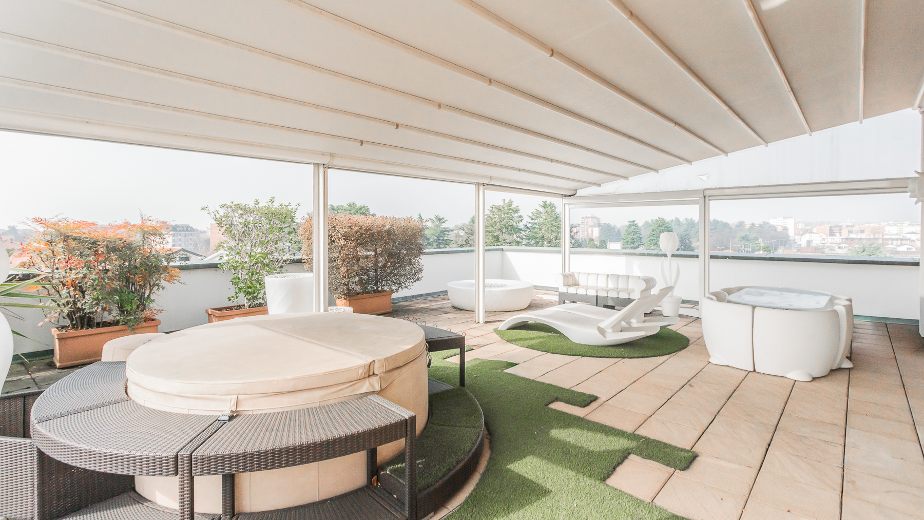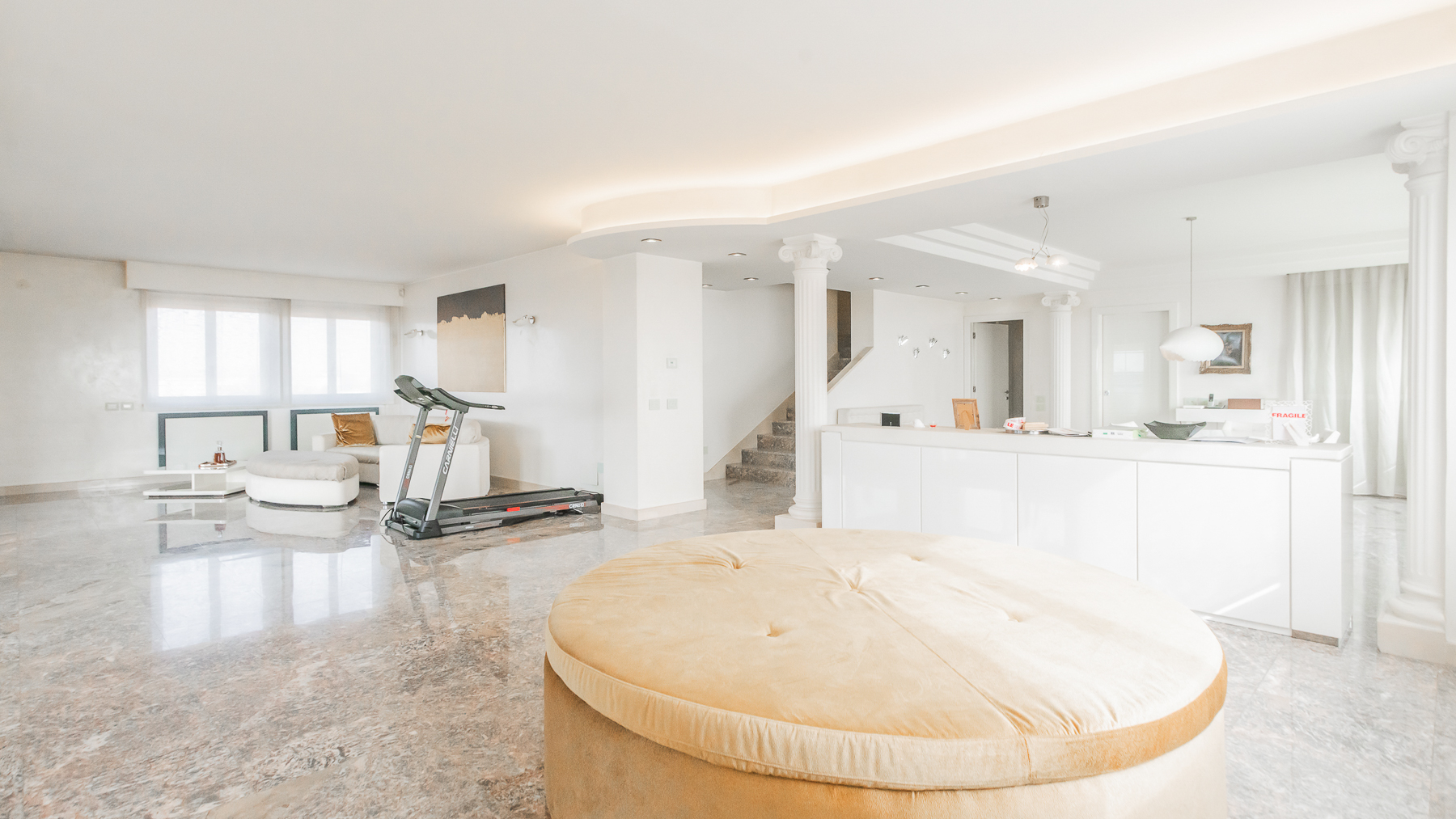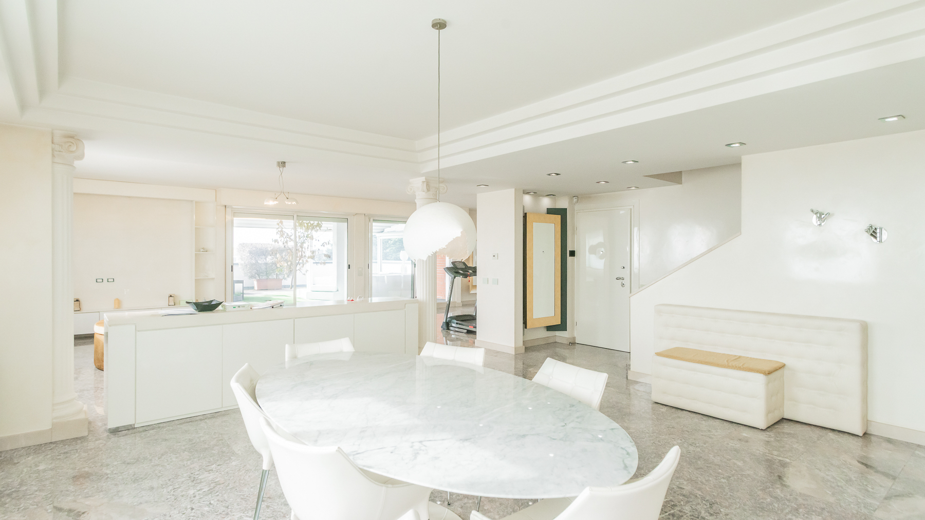 Imagine stepping into a sanctuary of modern elegance, where sunlight dances through expansive glass doors, illuminating a realm of luxury and tranquility. The gentle hum of city life fades away as you relax on the plush, light-colored sofa, enveloped by the warmth of exposed brick walls and the allure of contemporary design. This exquisite 400 sqm property in Gallarate, Varese, offers a refined living experience with eight spacious rooms and three elegant bathrooms. The open concept living area seamlessly integrates with the outdoors, where a private pool and terrace invite moments of leisure and sophistication. The minimalist aesthetic, highlighted by a treadmill and a wall-mounted television, speaks to a lifestyle of health and relaxation, while the sleek terrace provides an enchanting view of the surroundings, blending urban vibrance with serene privacy. Living here is an invitation to embrace a life of refined elegance and unparalleled comfort. Picture yourself unwinding on white lounge chairs, surrounded by stylish plant sculptures, as the tranquil ambiance of the city envelops you. Savor alfresco dining on the terrace, where the evening sky becomes a canvas of stars, offering a backdrop for intimate gatherings and solitary reflections. This residence is a rare find, embodying the essence of luxury and modernity. It is a testament to sophisticated living, where every detail is meticulously crafted to offer an exclusive retreat in the heart of the city.