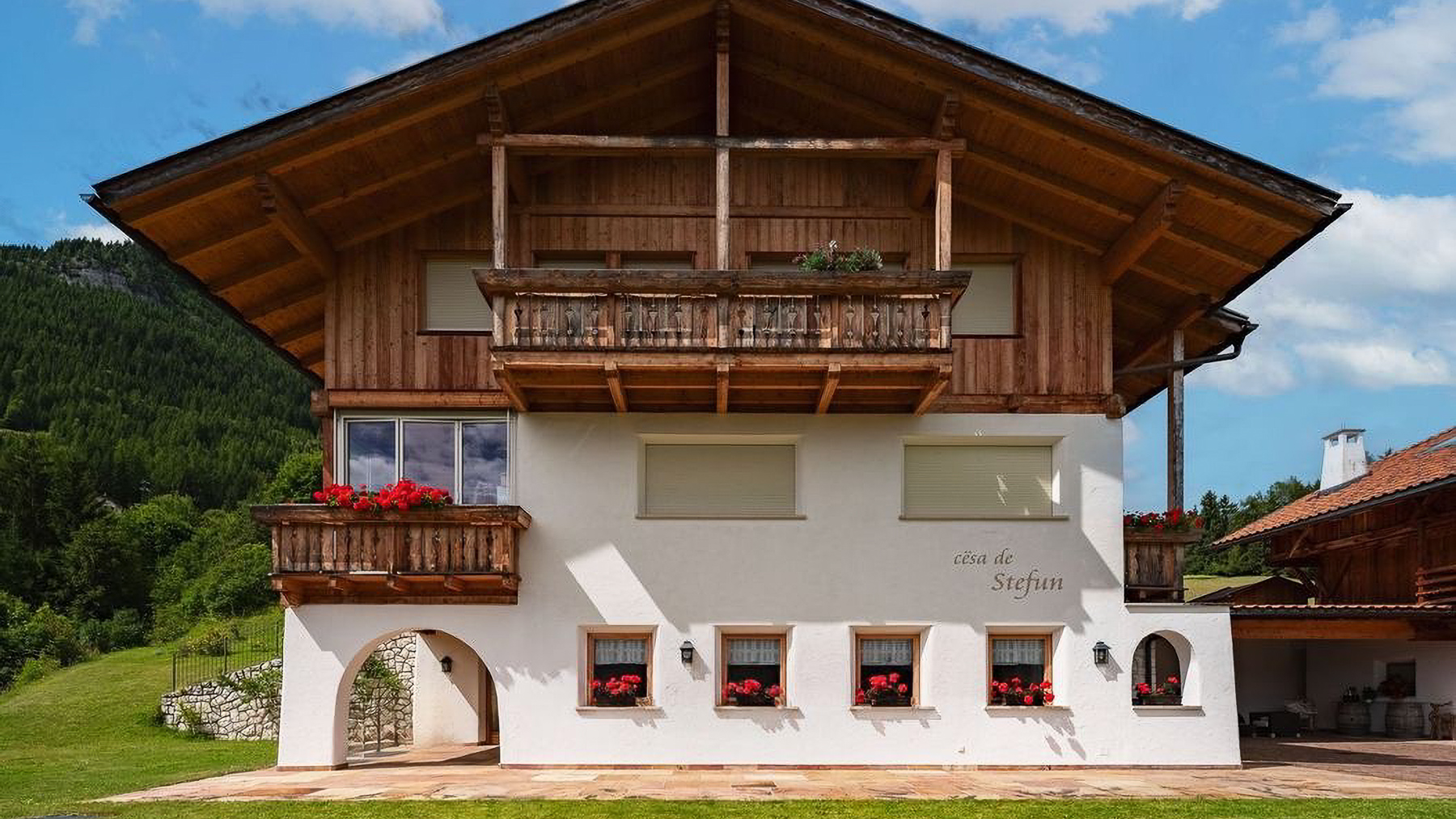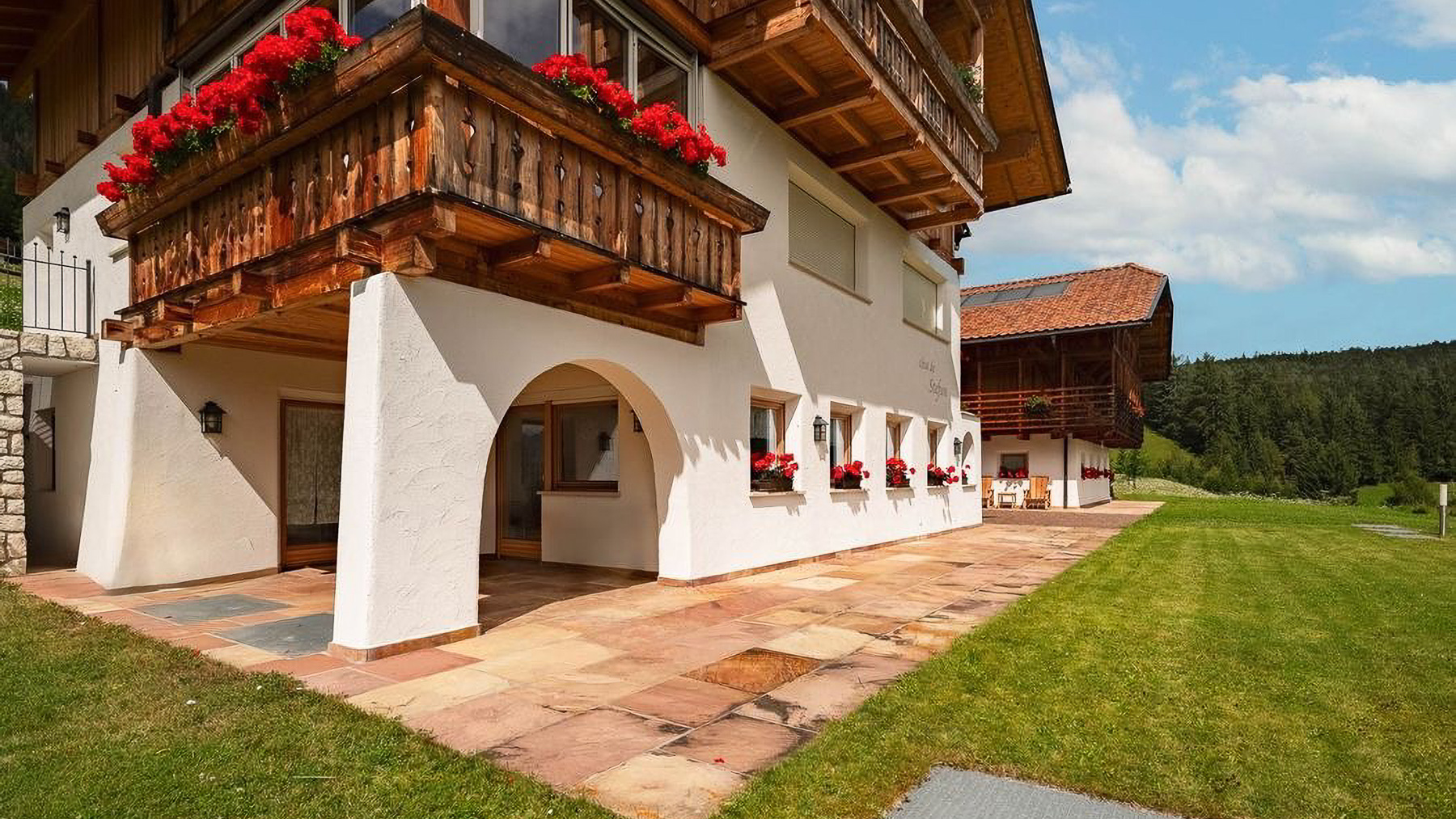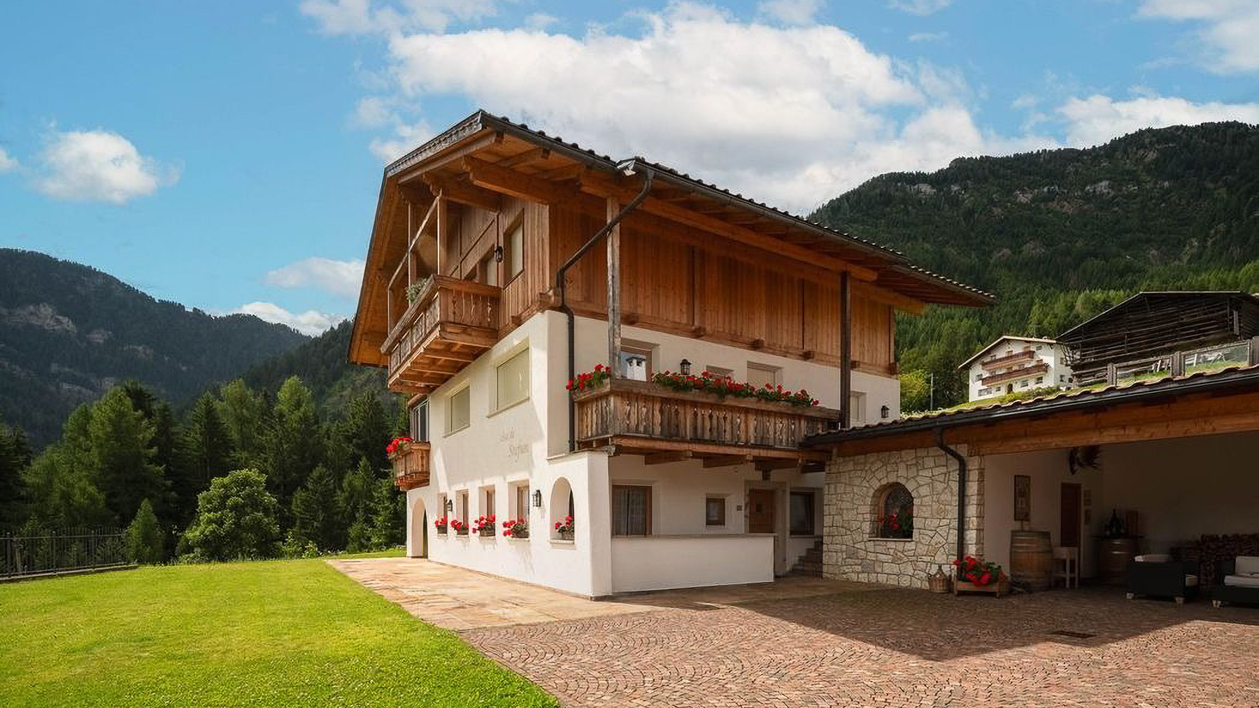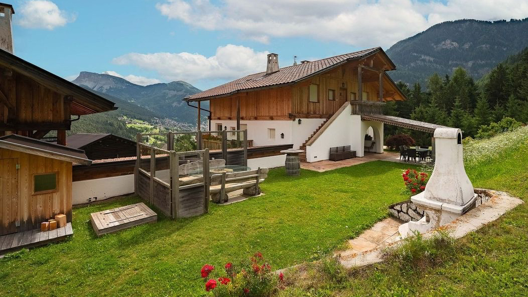 Perched amidst the serene beauty of a mountainous landscape, this exquisite chalet offers an idyllic retreat where nature's grandeur meets architectural splendor. The gentle rustling of leaves in the breeze and the delicate fragrance of blooming flowers create a sensory tapestry that enchants the soul. Under a partly cloudy sky, this residence promises a harmonious blend of tranquility and luxury. Spanning 140 square meters, this stunning property features three elegantly designed rooms and two luxurious bathrooms, harmonizing comfort with style. The chalet's unique architecture, a mix of traditional wood and stone elements, complements its scenic surroundings. Balconies adorned with vibrant flower boxes invite you to soak in the breathtaking views. Located in Ortisei, Bolzano, this mountain sanctuary is a testament to refined living and tasteful design. Imagine waking up to the majestic views of lush green hills and spending afternoons on the well-maintained grassy lawns, perhaps enjoying a leisurely lunch at the outdoor dining area. The ambiance of this residence offers a lifestyle of peace and rejuvenation, where every moment is an opportunity to connect with nature's splendor. This property embodies the pinnacle of luxury mountain living, a unique fusion of timeless elegance and modern sophistication. It is a rare treasure in the world of high-end real estate, offering an unparalleled lifestyle experience.