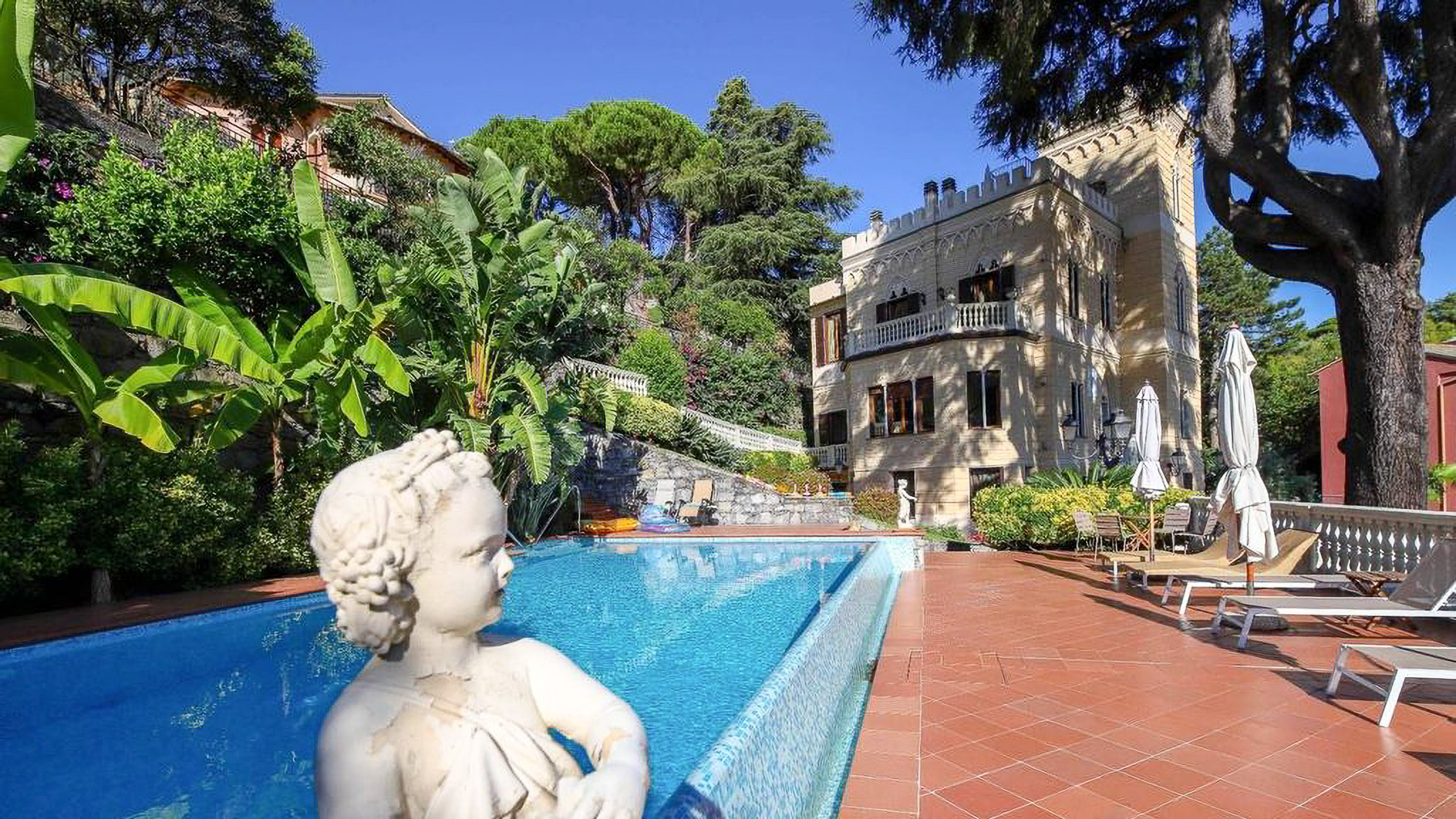 Amidst the serene embrace of stunning landscapes, this exquisite property unveils a captivating blend of elegance and tranquility. Surrounded by lush greenery and the gentle sway of palm trees, the residence provides a peaceful retreat with the scent of the sea carried by the coastal breeze. The light dances through arched windows, inviting you to experience a world of beauty and sophistication. Spanning 220 square meters, this luxurious abode in Rapallo, Genova, offers five beautifully appointed rooms and three elegant bathrooms. A private pool and expansive terrace provide the perfect venues for relaxation and entertainment, while the exquisite garden enhances the property's allure. Designed for the discerning buyer, the residence combines architectural grandeur with the allure of a seaside lifestyle, delivering an oasis of comfort and style. Living here means immersing oneself in a coastal paradise where each day begins with breathtaking views of mountains and the sparkling sea. Imagine leisurely afternoons by the pool or dining alfresco on the terrace, enveloped by the warmth of the Italian sun and the gentle rustle of palm leaves. This property invites you to create memories in a setting that is both luxurious and intimate. This residence stands as a testament to the art of fine living, offering a rare opportunity to own a piece of paradise. It is a sanctuary where timeless elegance meets modern luxury—a true jewel in the prestigious luxury real estate market.