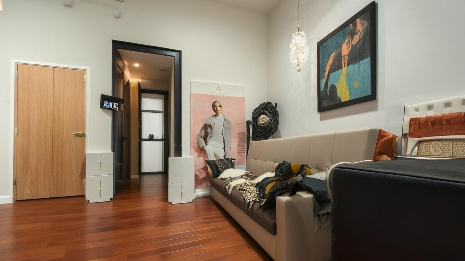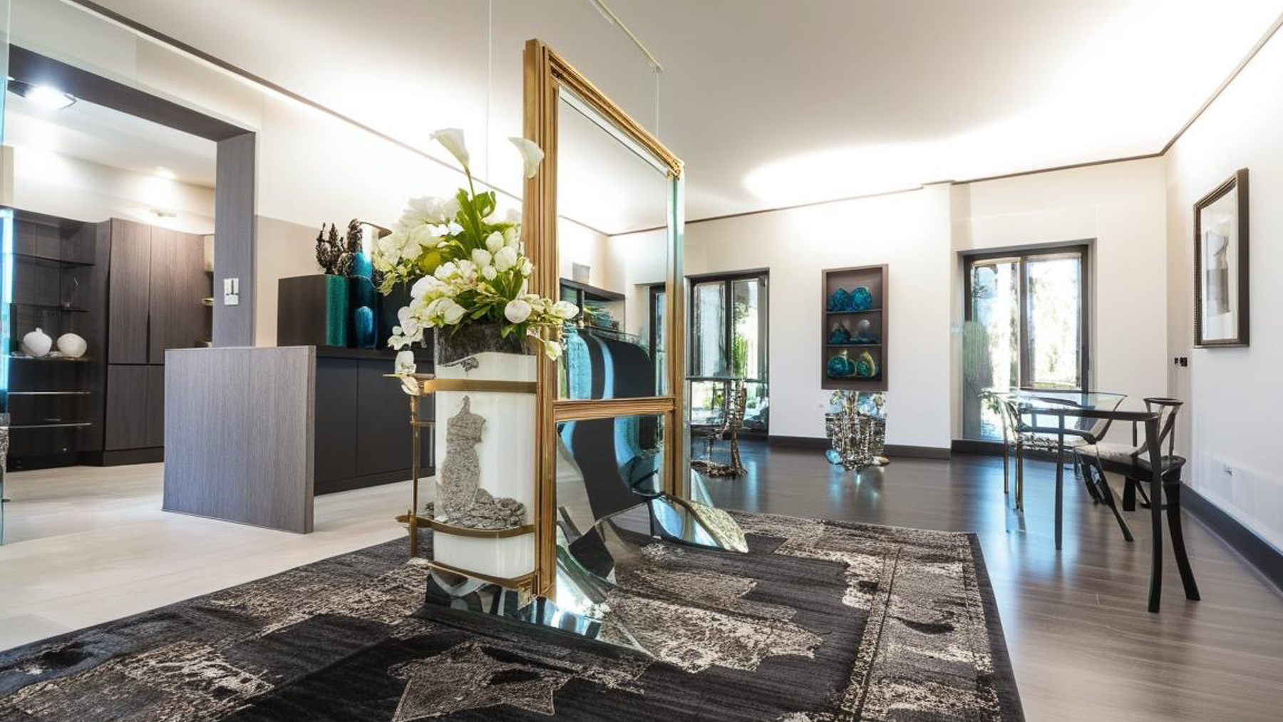 Tucked away in the heart of Torino, this exquisite residence offers a seamless blend of modern elegance and rustic charm. Bathed in natural light streaming through expansive windows, the home exudes warmth and sophistication. The gentle rustle of leaves from decorative plants and the soft glow of ambient lighting create an inviting atmosphere that whispers luxury at every turn. Spanning an impressive 300 square meters, this ten-room masterpiece is a canvas of refined living. With four well-appointed bathrooms and a stunning terrace, the property is a haven for relaxation and entertainment. The interior boasts a plush area rug on hardwood floors, a stylish transparent rocking chair, and a vibrant pink chair, all harmonizing with colorful artworks that adorn the walls. Located in the vibrant city of Torino, this home offers the perfect city lifestyle. Living here is an experience of unparalleled comfort and style. Imagine waking up to the gentle caress of sunlight filtering through dark-framed windows, sipping coffee in a room filled with art and elegance. The terrace beckons for serene mornings and unforgettable evenings under the stars, offering a private escape amidst the bustling city. This property is a rare find in the luxury real estate market, offering a perfect blend of contemporary design and timeless elegance. It is a testament to exquisite taste and a dream come true for the discerning buyer.