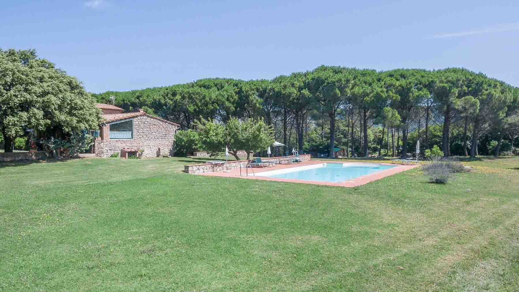 Enveloped in the serene embrace of the Tuscan countryside, this exquisite property captures the essence of rustic elegance. Imagine waking to the gentle rustle of leaves and the soft chirping of birds, as sunlight streams through verdant foliage, creating a tapestry of light and shadow across a tranquil oasis. Spanning 500 square meters, this grand home features eight spacious rooms and seven luxurious bathrooms, each crafted with impeccable attention to detail. The rustic stone house, with its charming tiled roof, exudes timeless appeal. Set amidst lush greenery in Semproniano, Grosseto, the property offers a private swimming pool—a perfect retreat for leisurely afternoons. The expansive landscape provides an idyllic backdrop for this luxurious residence, inviting you to indulge in the ultimate countryside lifestyle. Living here means savoring the simple pleasures of life. Picture yourself lounging by the pool, enveloped by the fragrance of blooming flowers, and sipping a refreshing drink as you gaze at the rolling hills. This sanctuary offers a retreat from the hustle and bustle, where tranquility and beauty converge. This property is a rare masterpiece, epitomizing the perfect blend of rustic charm and modern luxury—a true jewel in the heart of Tuscany, waiting to be discovered.