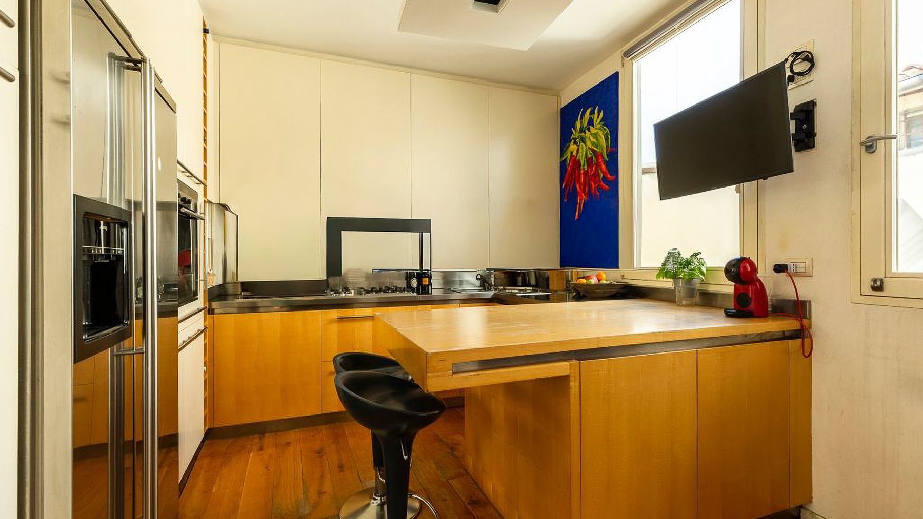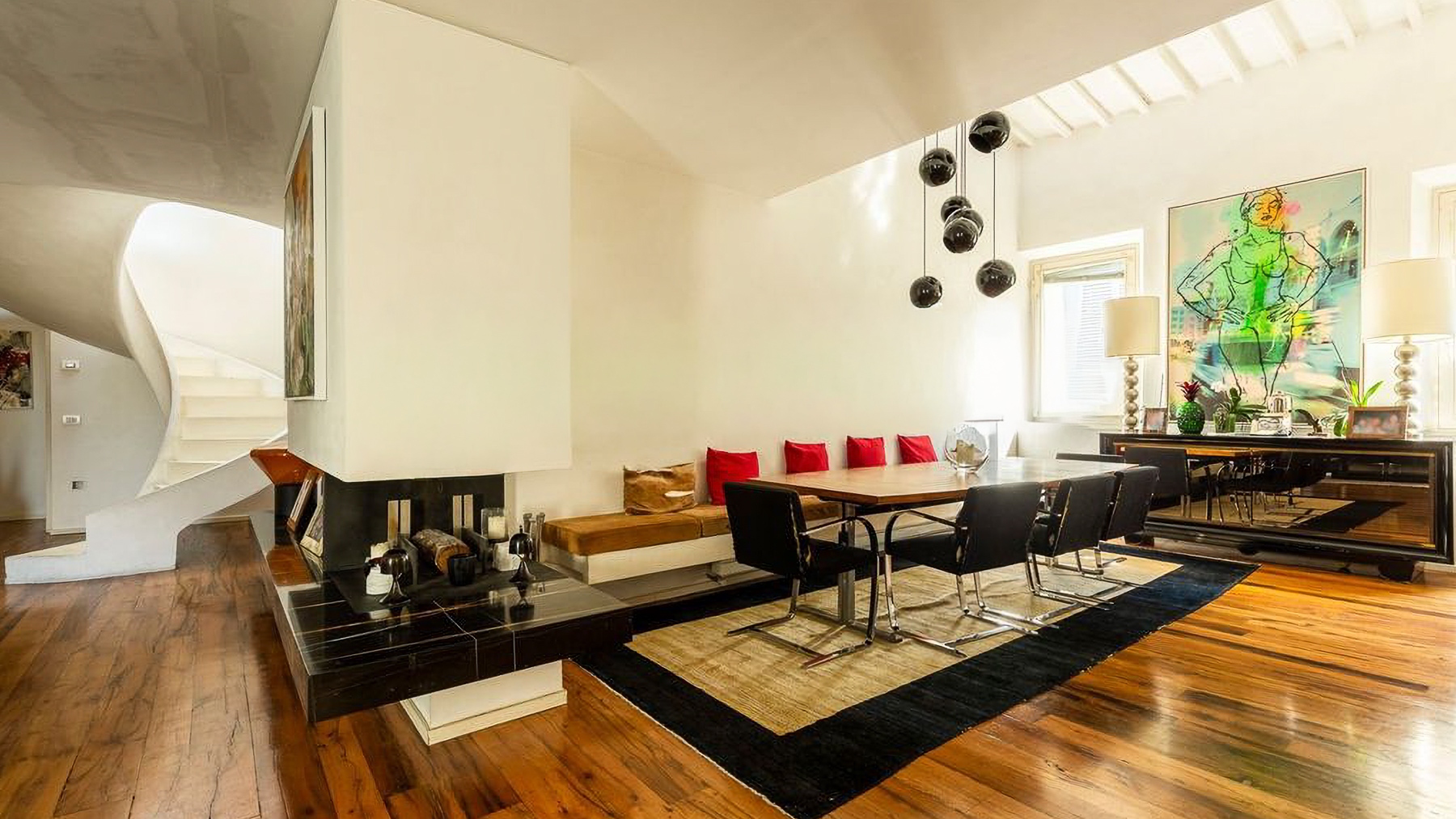 Imagine stepping into a serene sanctuary where modern elegance meets timeless charm. Bathed in natural light, this exquisite property in the heart of Florence evokes a sense of warmth and sophistication. Picture a space where the gentle glow of spherical light fixtures invites you to unwind, as the rich tones of polished wood flooring create an inviting ambiance, setting the stage for a lifestyle of luxury and comfort. Spanning 190 square meters, this remarkable residence boasts 8 spacious rooms and 3 well-appointed bathrooms, offering a harmonious blend of style and functionality. Every corner of this home speaks of contemporary design, from the sleek dining area with its chic black chairs to the cozy built-in seating adorned with vibrant red cushions. The open-plan layout is accentuated by a wall-mounted bookshelf that holds a world of stories and treasures, while a striking piece of artwork adds a touch of personality to the space. Conveniently located in the vibrant city of Florence, this property offers the perfect urban lifestyle. Living here means experiencing the best of city living, with a touch of tranquility. Envision leisurely afternoons spent by the large windows, basking in the abundance of natural light, or productive mornings in the thoughtfully designed workspace. A large plant adds a refreshing hint of nature, enhancing the serene vibe of the home. This is where relaxation seamlessly blends with productivity, creating an unparalleled living experience. This residence is not just a home