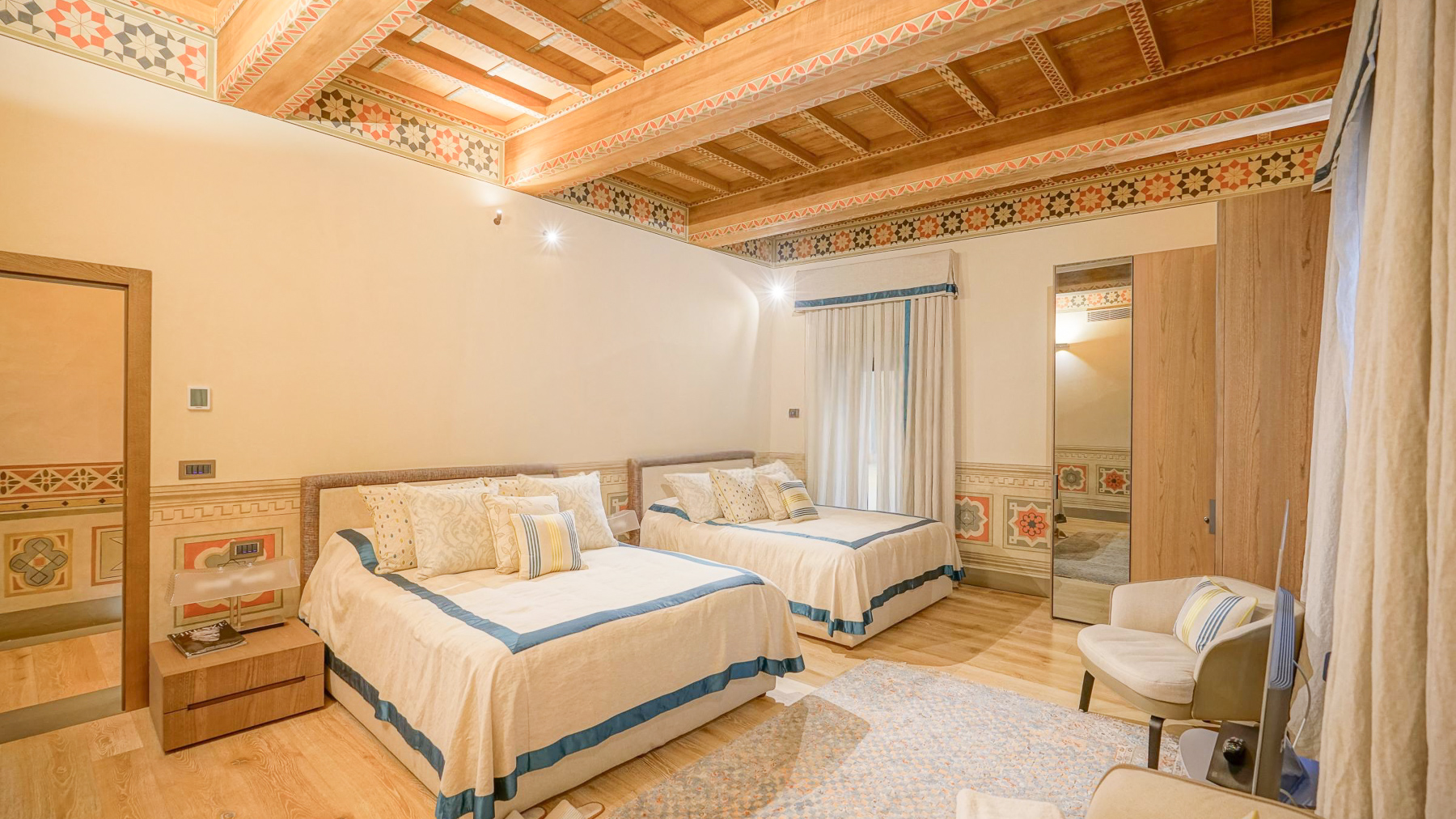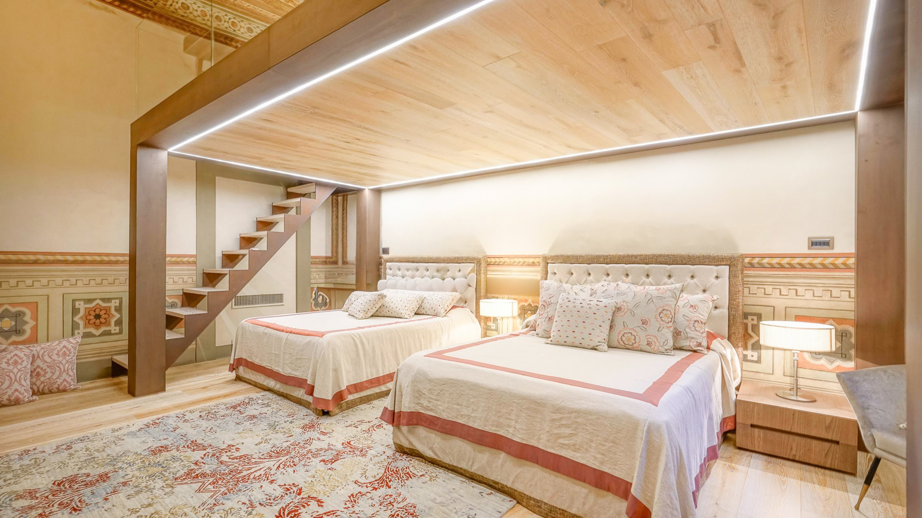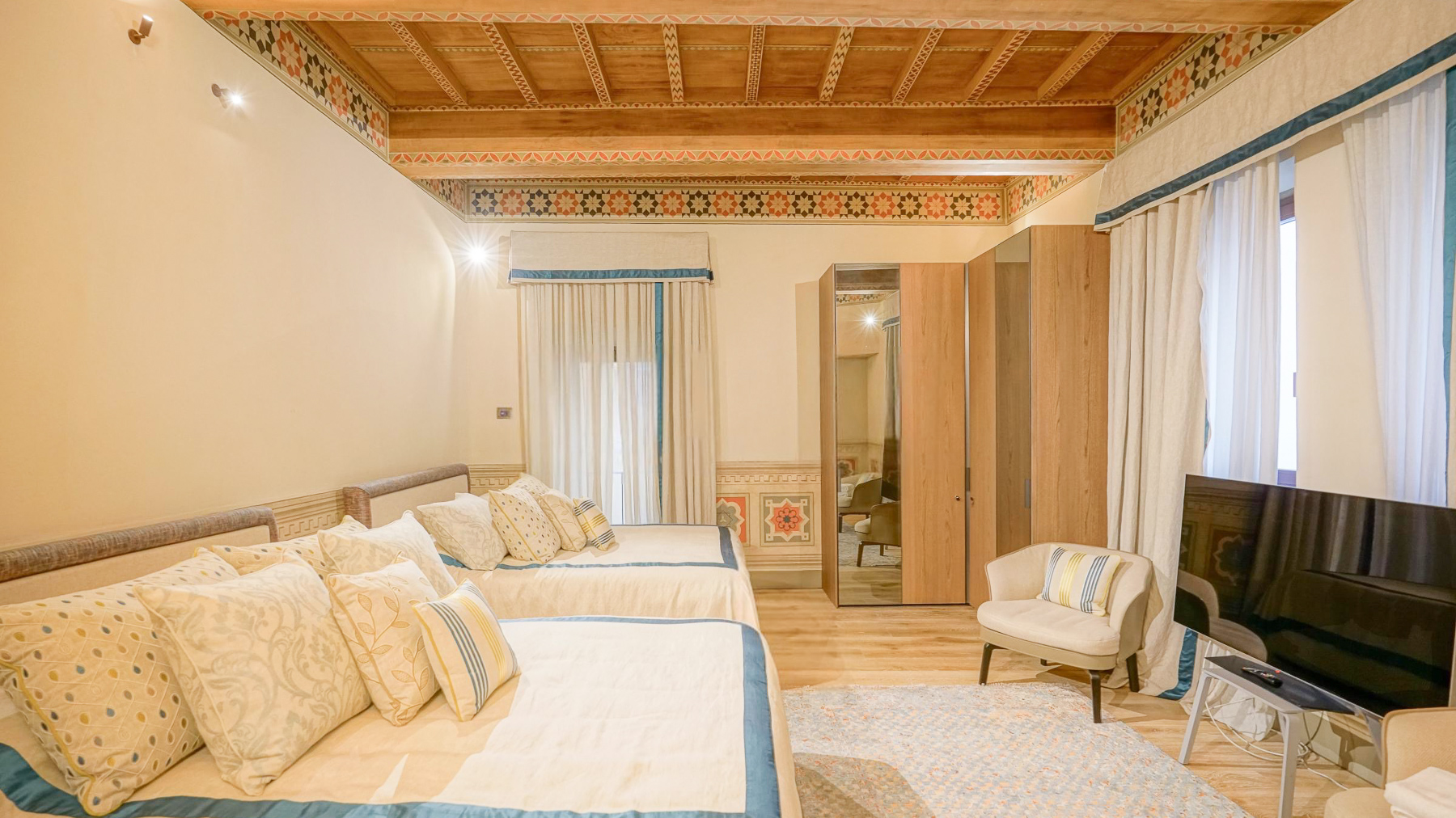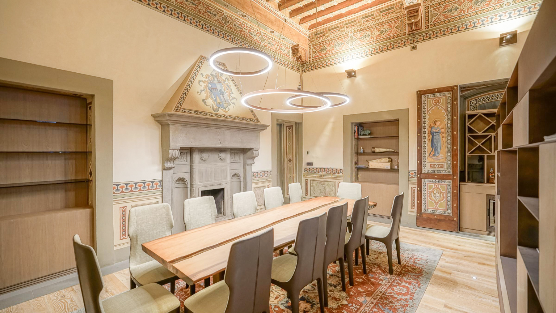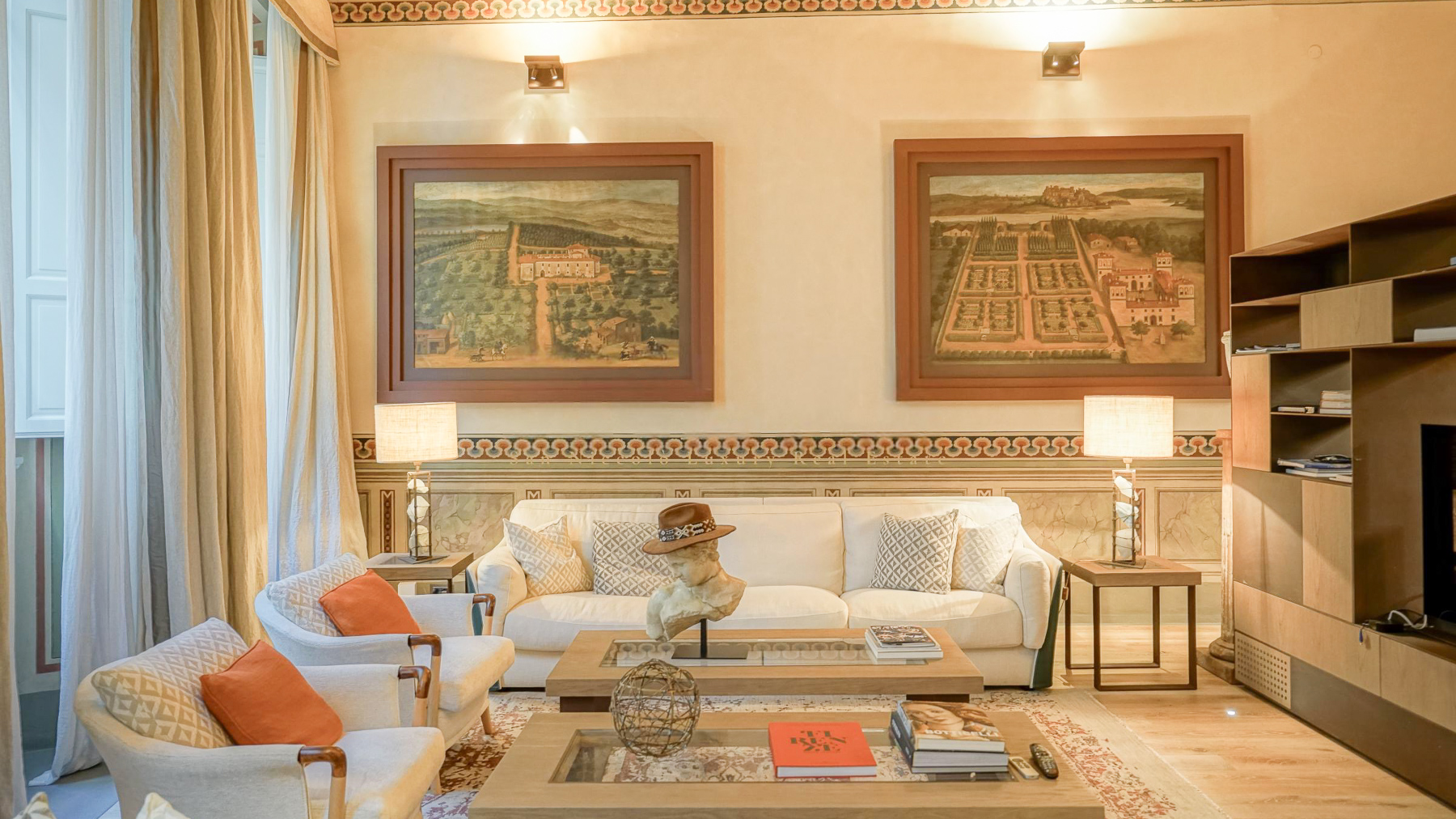 Tucked away in the vibrant heart of Florence, this exquisite property offers an oasis of elegance and sophistication. As you step inside, the interplay of light and shadow, combined with the gentle aroma of Italian blooms from the private garden, envelops you in a sense of tranquility and luxury. Spanning an impressive 340 square meters, this remarkable residence boasts nine spacious rooms and five opulent bathrooms. The living room is a masterpiece of design, featuring high ceilings with exposed wooden beams and intricate painted details. Comfortable white sofas with patterned cushions invite relaxation, while a contemporary entertainment unit and decorative pieces add a touch of modern flair. The bedroom exudes serenity, with a light-colored bedspread, decorative pillows, and large windows that drape the space in natural light. A set of stairs leads to a charming lofted area, enhancing the room's airy ambiance. The private garden offers a serene escape, making this home a perfect blend of elegance and comfort. Imagine waking up to the gentle glow of the Tuscan sun, drawing back the light, flowing curtains to reveal a new day in one of Italy's most enchanting cities. Evenings can be spent in the inviting seating area, savoring a glass of wine from your own storage unit, as you relax in the harmonious blend of modern and traditional design elements. This property is a testament to refined living, offering a unique blend of historical charm and contemporary luxury. It stands as a rare jewel in the prestigious Florence real estate market, capturing the essence of a sophisticated city lifestyle.