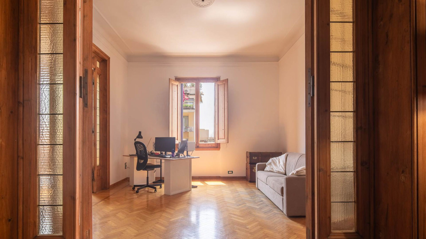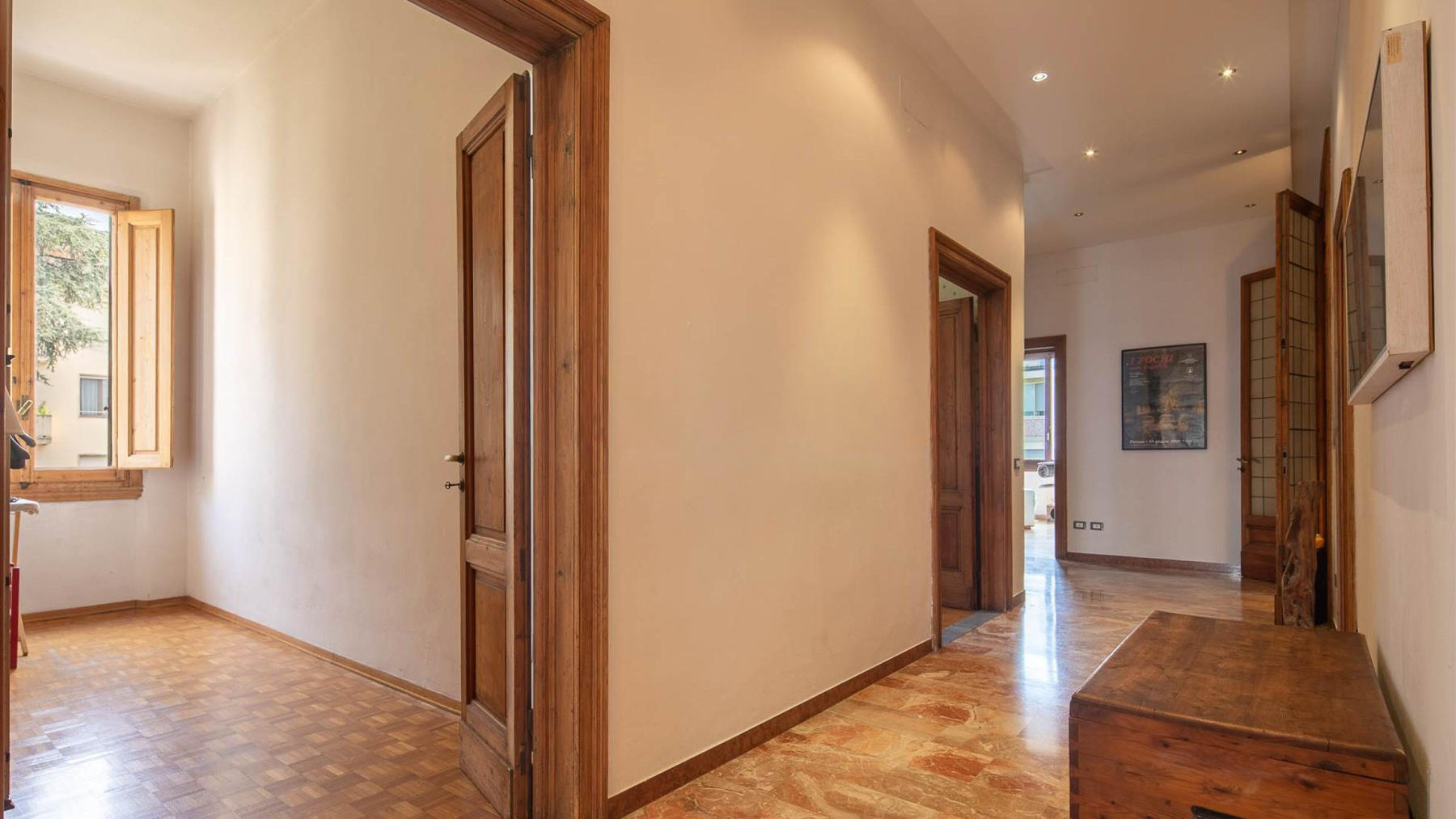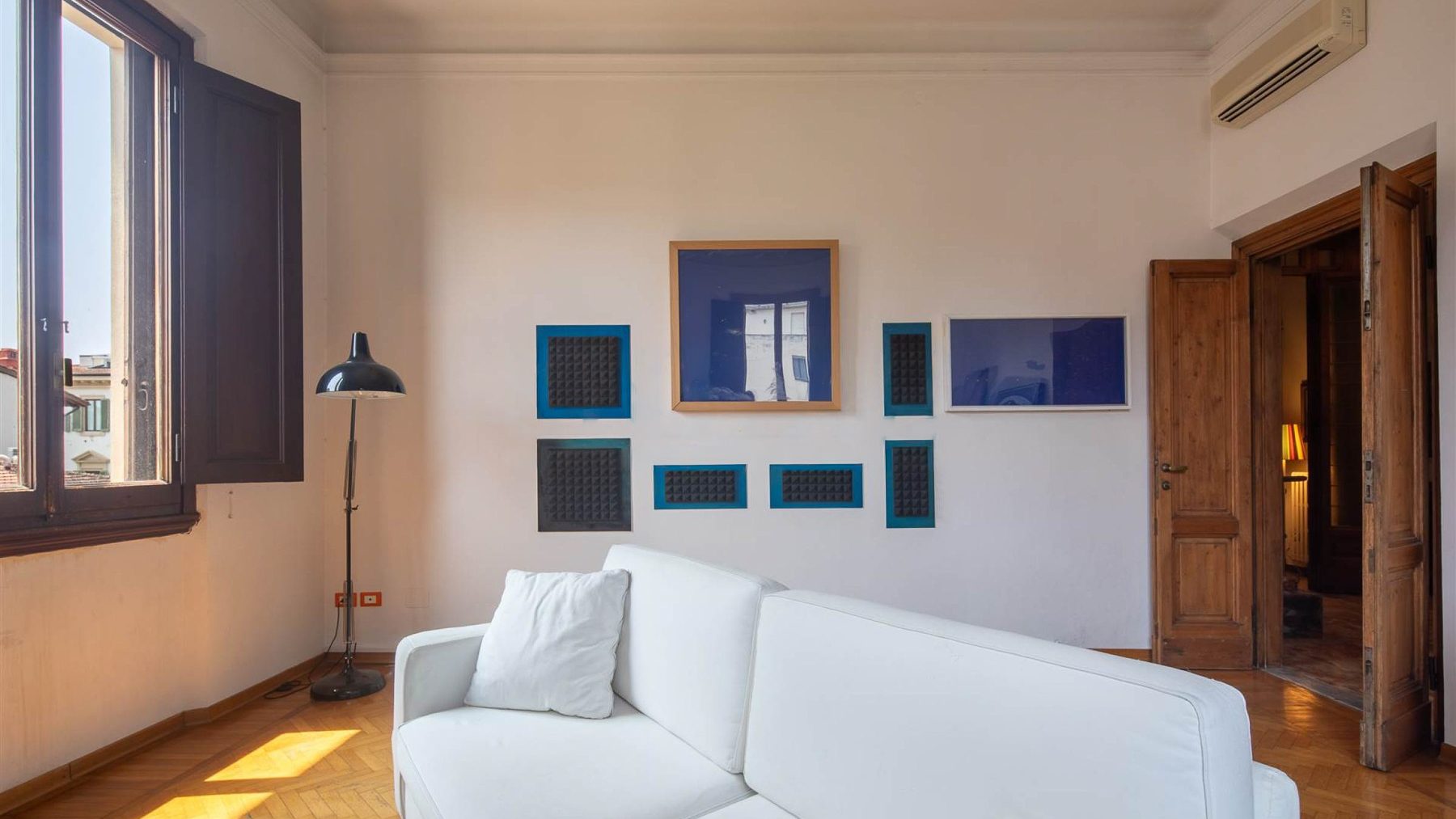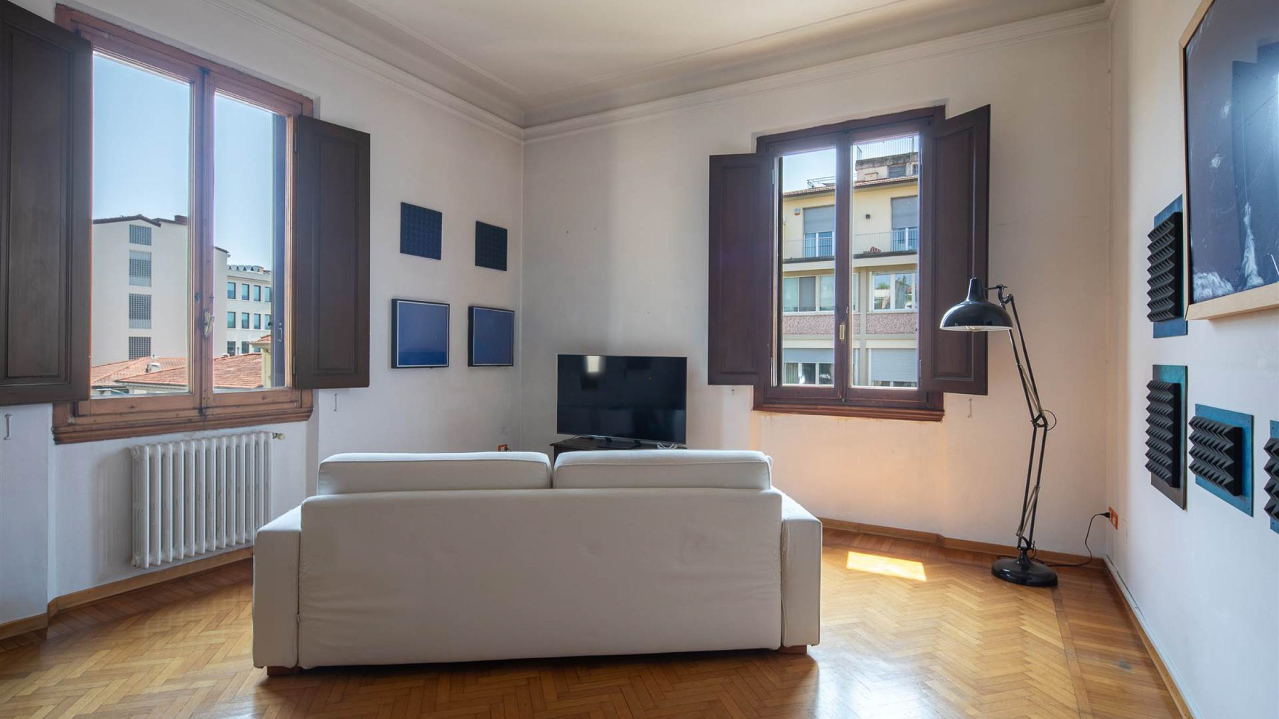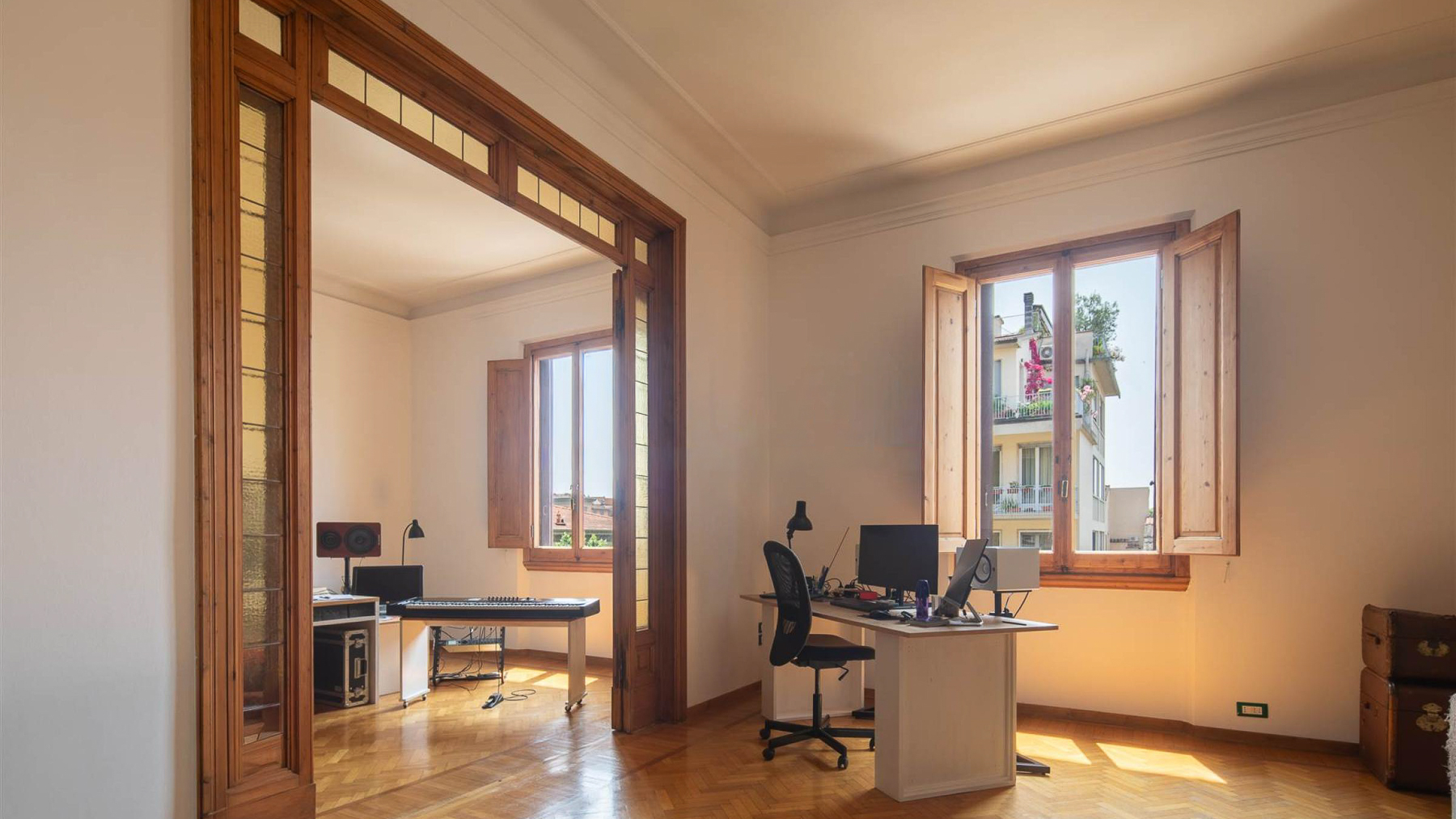 In the heart of Firenze, where history whispers through cobblestone streets and the air is filled with the aroma of Italian cuisine, lies a residence that exudes warmth and sophistication. As sunlight streams through the large windows, it dances across the hardwood floors, creating a serene and welcoming ambiance that envelops you the moment you step inside. Spanning 200 square meters, this exquisite property boasts seven spacious rooms and three elegantly appointed bathrooms. The interior is a harmonious blend of classic charm and modern elegance, featuring a stunning entryway with polished brass railings and red-carpeted stairs. Double wooden doors framed in rich wood open to reveal a sanctuary of style and comfort. The cozy room with a sofa, a bookshelf filled with literary treasures, and keyboards for the musically inclined invite both relaxation and creativity. Living here is an immersive experience of Italian city life, where each day begins with the gentle glow of morning light filling your home. Imagine spending leisurely afternoons in the comfort of your sophisticated living space, surrounded by the vibrant culture and rich history that Firenze offers. The city's art and architecture become an extension of your home, providing endless inspiration and fulfillment. This property stands as a testament to refined living, offering an unparalleled blend of tradition and modernity. It is not just a home but a statement of prestige—a rare find in the luxury real estate market of Firenze.
