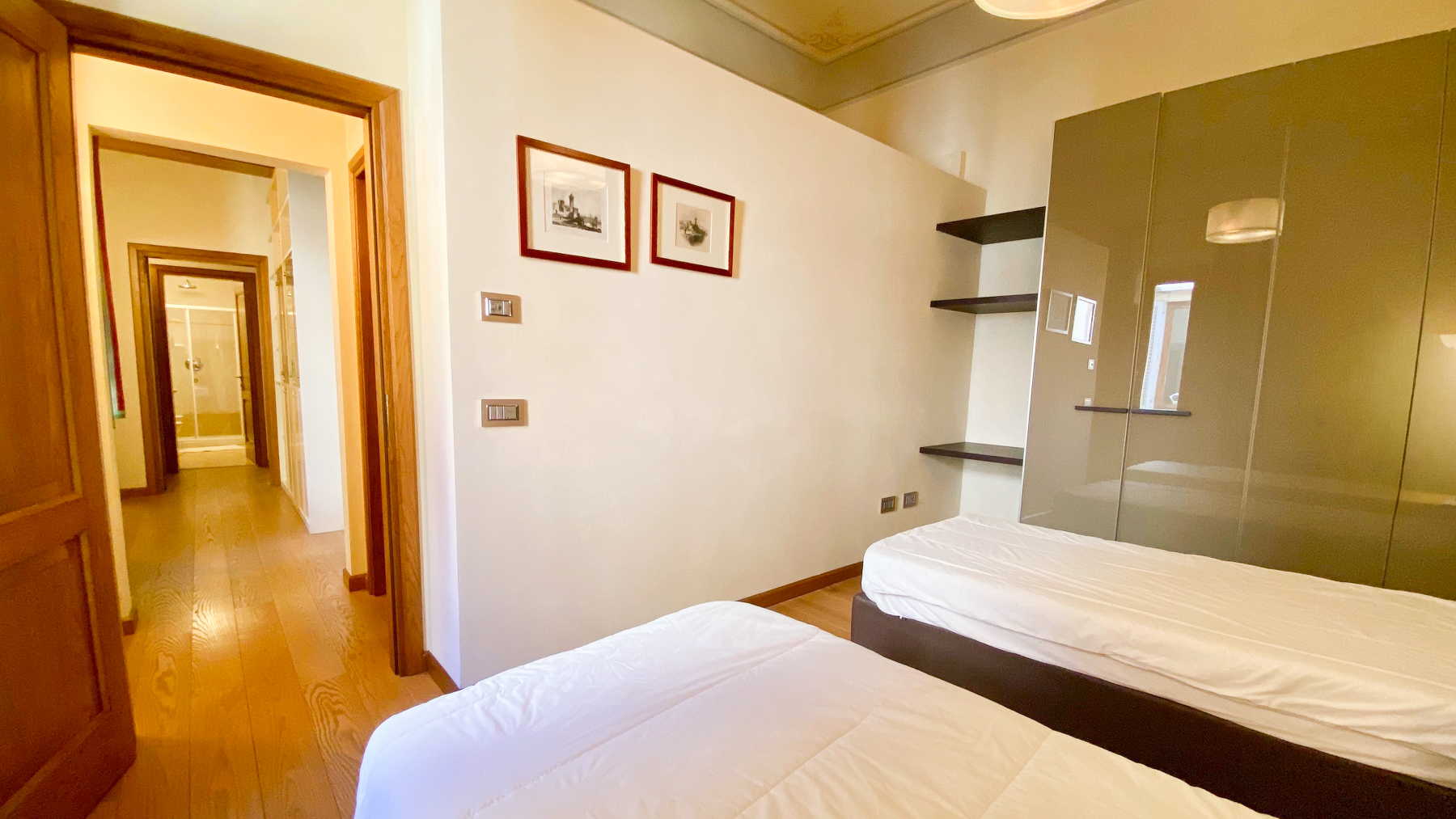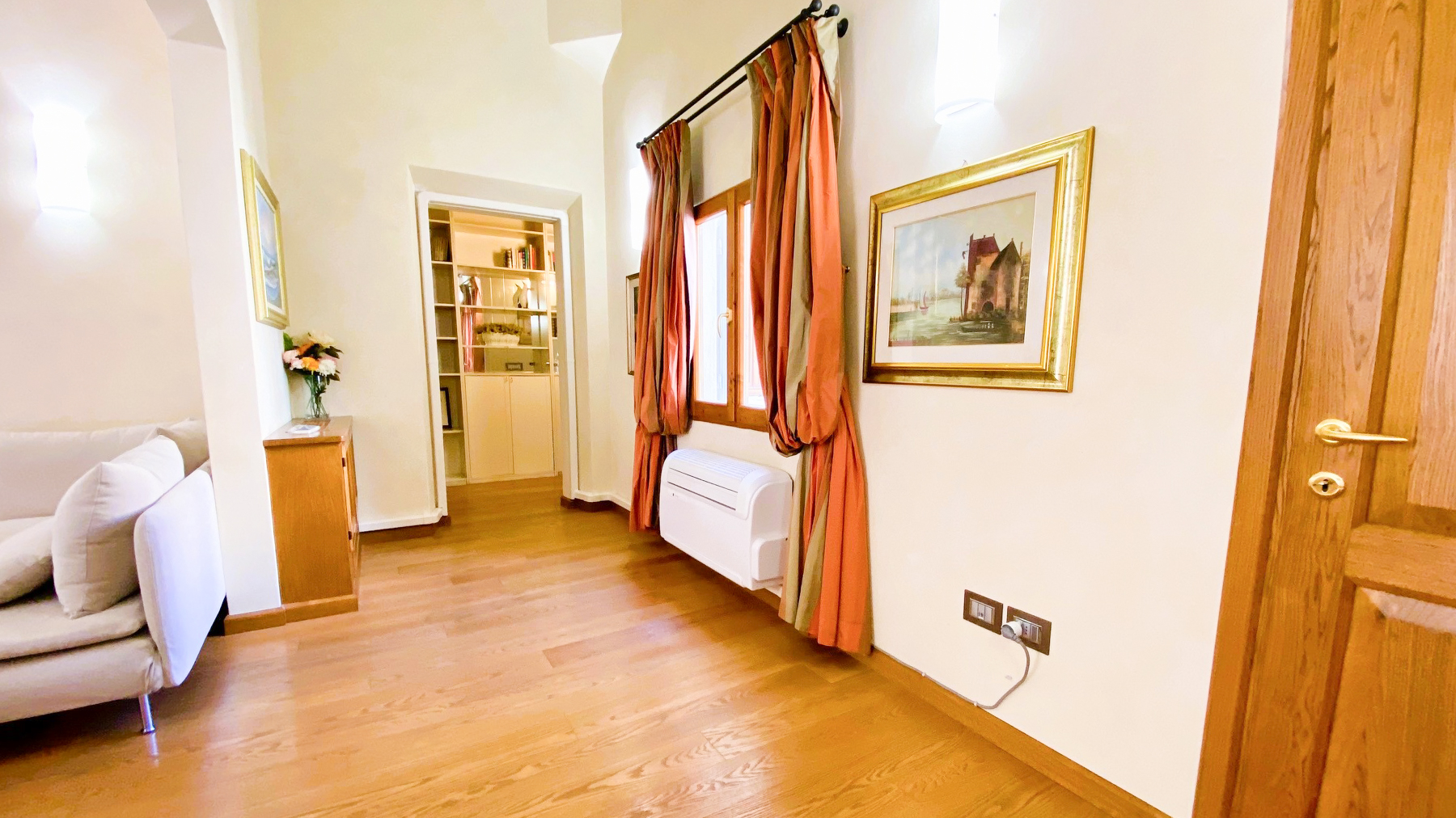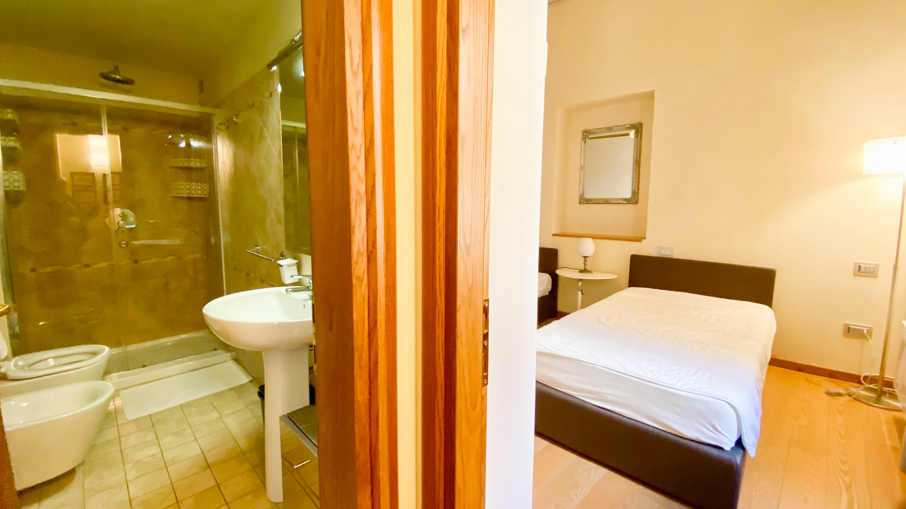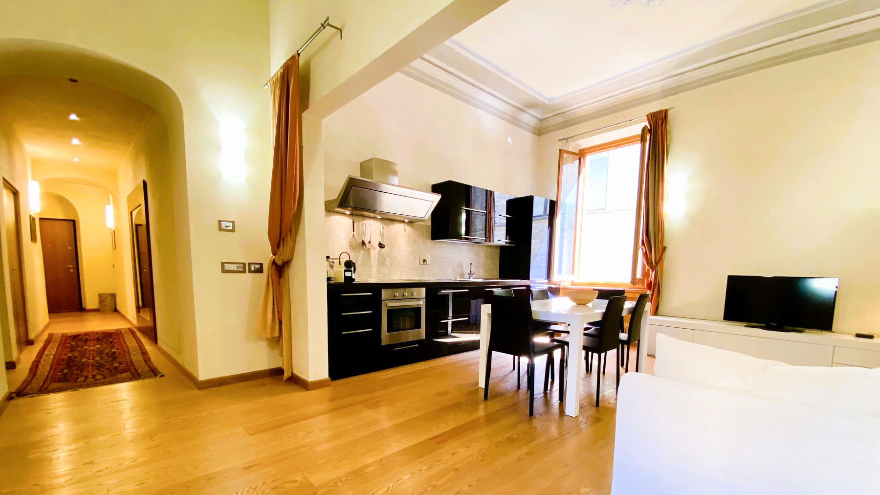 Enveloped in the charm of Florence, this exquisite property captures the essence of elegance and serenity. Bathed in natural light, the interiors invite you to embrace the warmth and tranquility of a luxurious urban sanctuary. The gentle hum of the city beyond the windows offers a harmonious backdrop to this refined retreat. Spanning 120 square meters, this sophisticated residence boasts four elegantly designed rooms and three modern bathrooms. The expansive living and dining area is a masterpiece of contemporary style, featuring a sleek white dining table, chic black chairs, and a light-colored sofa, all illuminated by large windows. The seamless blend of wooden flooring and tasteful decorative elements creates a space that is both inviting and refined. The private quarters reveal a serene bedroom with a minimalist bed, complemented by a cozy bedside table and a mirror that enhances the room's airy ambiance. The bathroom is a sanctuary of relaxation, complete with a glass shower enclosure and pristine, light-colored tiles. Living in this refined Florence abode means indulging in the vibrant city life while enjoying your own peaceful haven. Picture yourself savoring peaceful mornings with a cup of coffee as sunlight streams through the windows, or hosting intimate gatherings around the elegantly appointed dining area, where laughter and conversation flow freely. This property is not just a home; it is a statement of prestige and distinction, a rare find in the heart of Florence's luxury real estate market. Embrace the unparalleled blend of timeless beauty and modern sophistication that awaits within these walls.