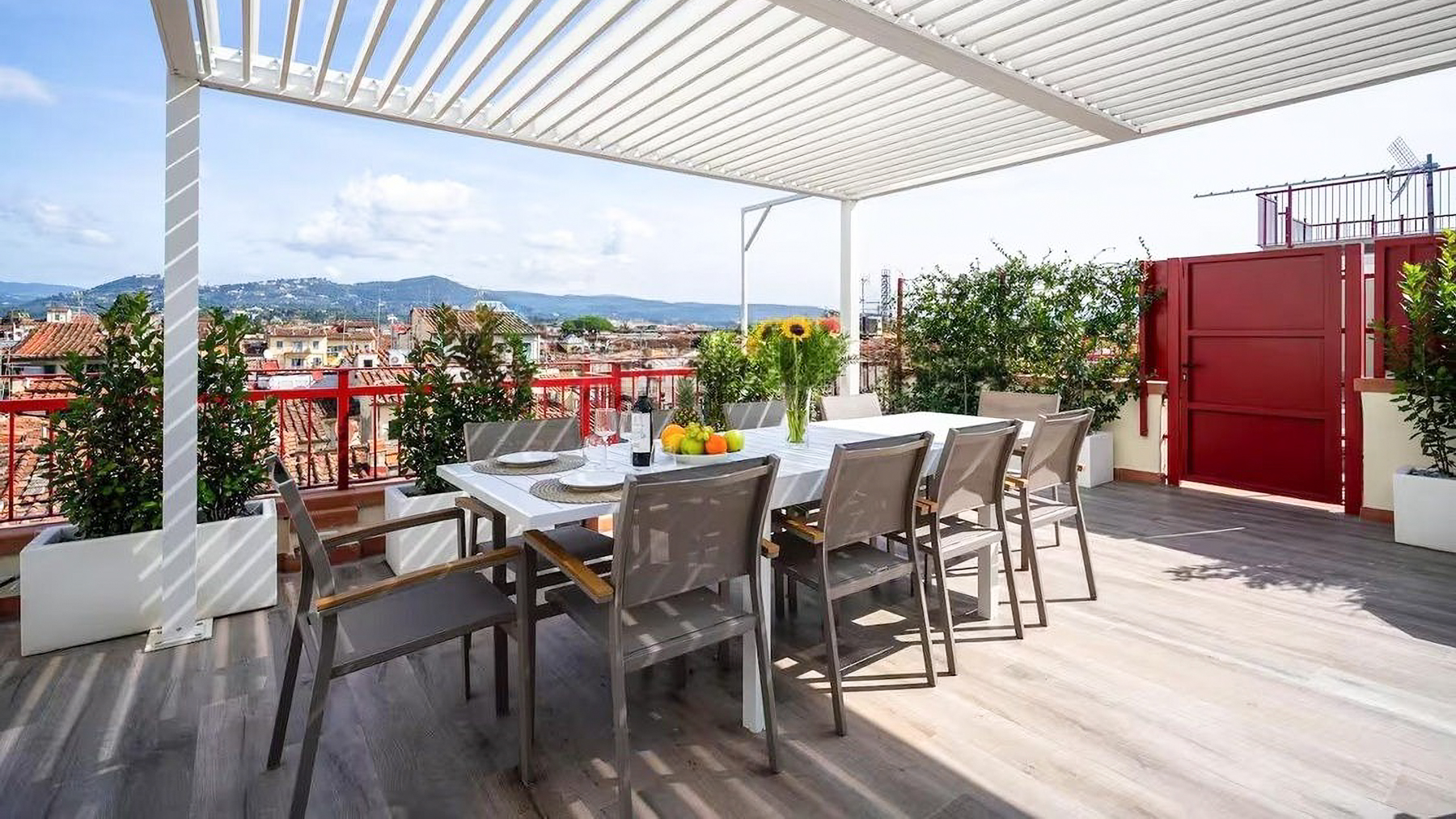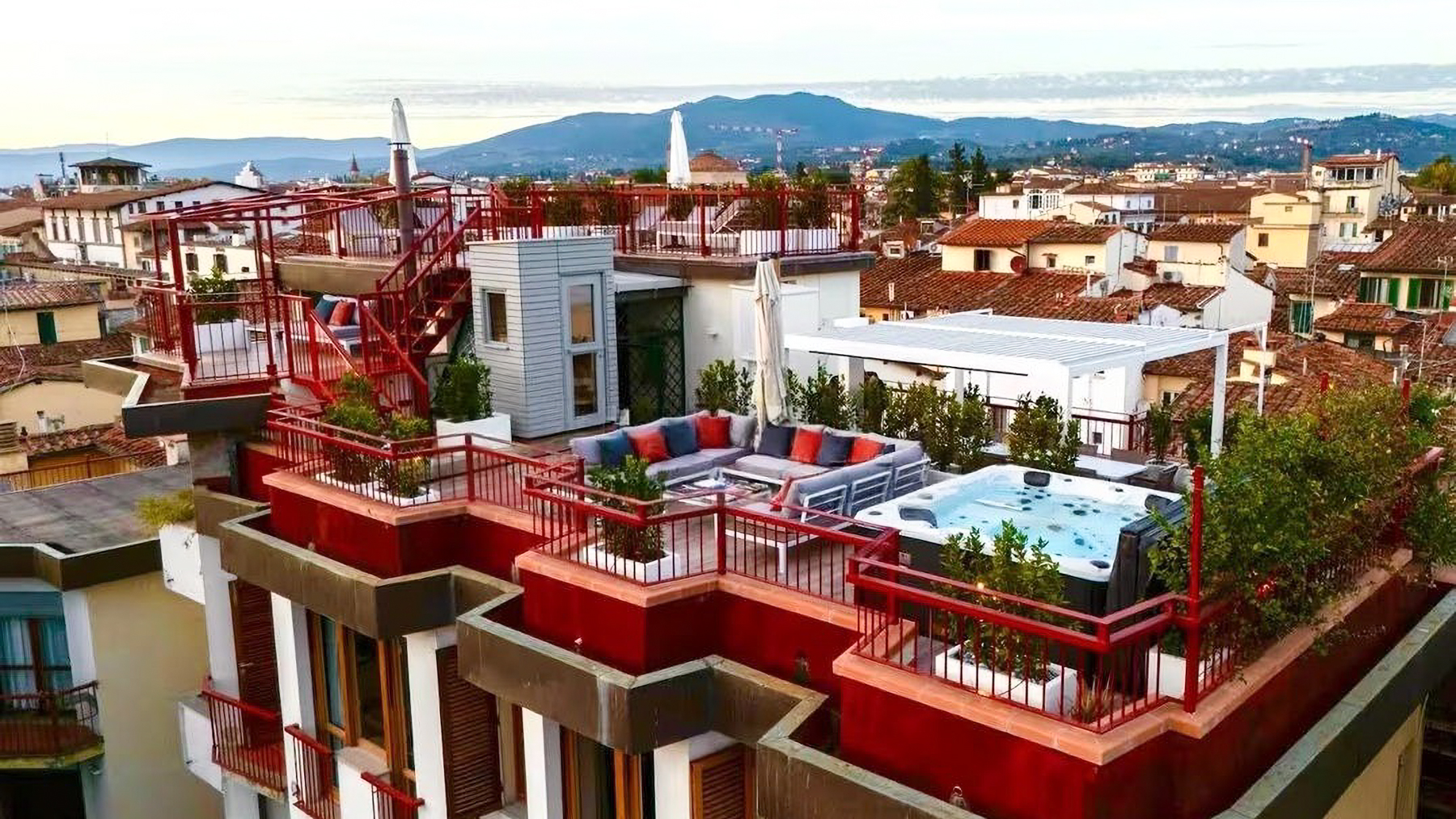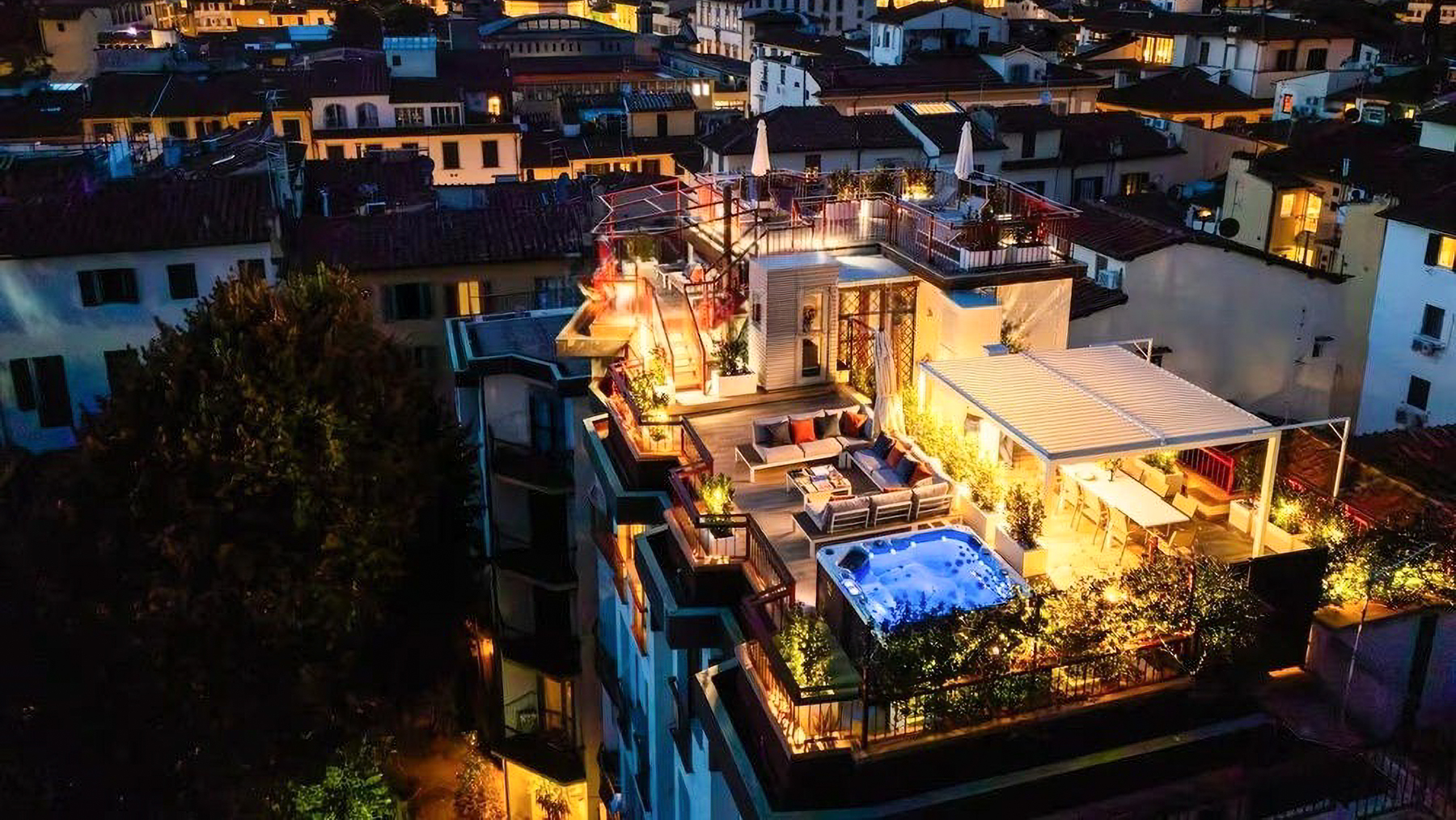 Perched high above the bustling city of Florence, this exquisite residence offers a unique blend of urban vibrancy and serene luxury. As you step onto the rooftop terrace, you're greeted by the gentle rustle of leaves from the surrounding plants, the soothing bubbles of the hot tub, and the stunning panorama of the cityscape stretching towards the distant hills. It's a place where the sky seems endless and every sunset paints a masterpiece. Spanning an impressive 200 square meters, this property boasts six spacious rooms and three elegantly designed bathrooms. Each space reflects contemporary sophistication, from the expansive living room with its plush, L-shaped white sofa and captivating artwork to the inviting terrace that seamlessly merges indoor and outdoor living. Located in the heart of Florence, this home offers not just a place to live, but a lifestyle to embrace — an oasis in the city where comfort meets style. Imagine hosting intimate gatherings on the terrace, where laughter mingles with the cool evening breeze, or savoring a quiet moment in the living room, bathed in natural light filtering through the large windows. This residence is more than just a home; it's an experience, a canvas for memories waiting to be created. This property is a testament to modern elegance and refined living, a rare gem in the prestigious Florence real estate market. It invites you to discover a life of unparalleled luxury and timeless beauty.