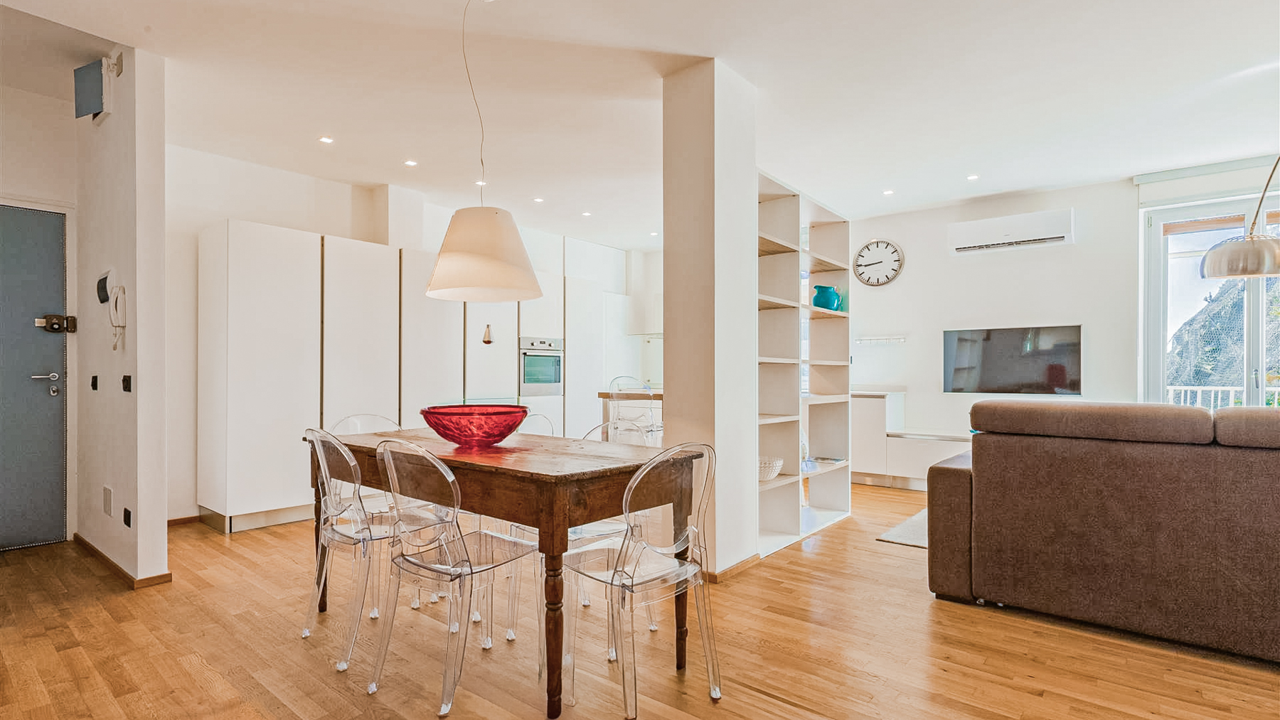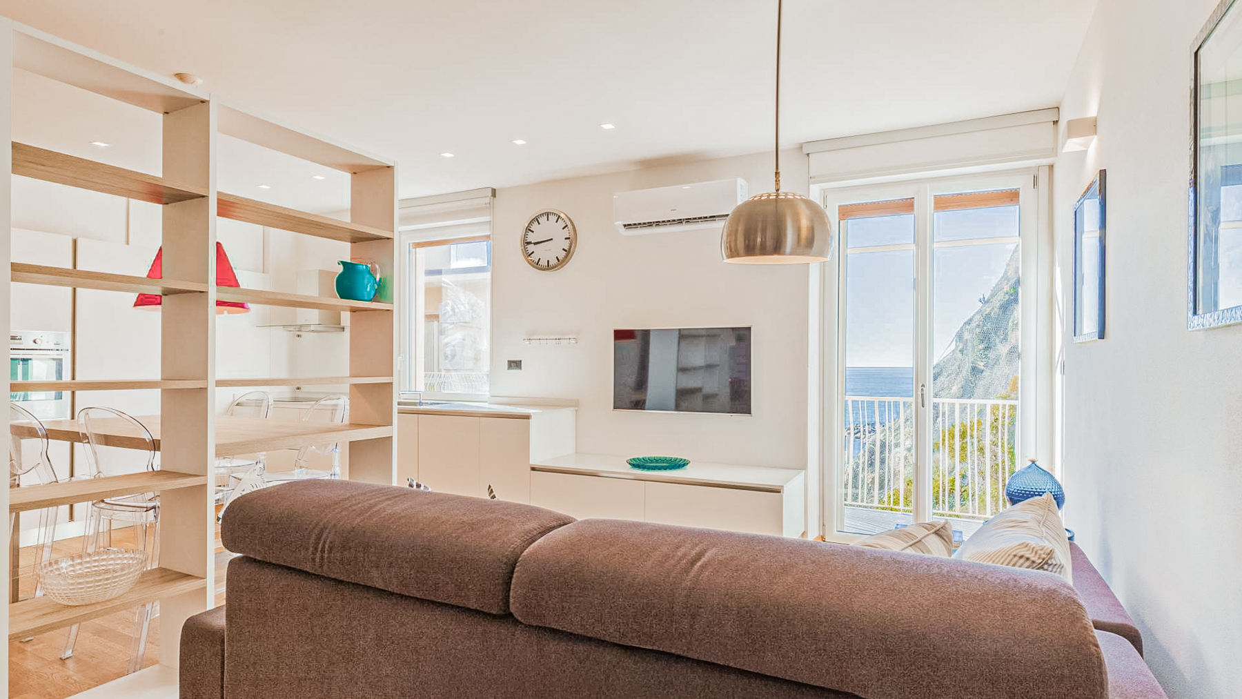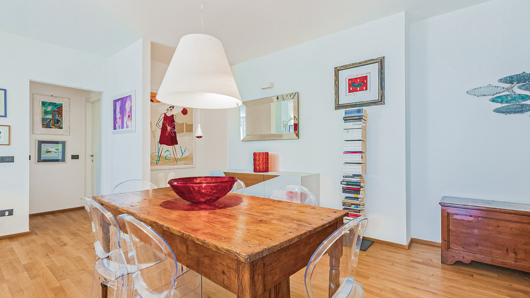 In the heart of Levanto, where the vibrant hues of the town meet the serene whispers of the Ligurian Sea, lies a stylish sanctuary that exudes sophistication and charm. Imagine a space where modern design harmonizes with artistic flair, inviting you to indulge in luxury and comfort. This 92 sqm residence offers an intimate yet spacious layout, with two elegantly appointed rooms and a contemporary bathroom. The interior is a masterpiece of modern design, featuring a wooden dining table adorned with a striking red bowl and surrounded by transparent chairs that reflect the abundant natural light. The space is tastefully accented with a brown sofa and an array of framed artworks that add a touch of creativity and warmth. A chic floor lamp casts a soft glow, enhancing the inviting ambiance. Just beyond the windows, the lively urban landscape of Levanto unfolds, with its colorful buildings, green and blue awnings, and red-shuttered windows, all set against a clear blue sky. Living here means immersing yourself in the vibrant lifestyle of Levanto. Picture leisurely mornings sipping espresso on your balcony, the scent of the sea mingling with the fresh breeze. The lively atmosphere of this bustling area offers endless opportunities for exploration and enjoyment, from sunlit strolls along the coast to evenings filled with the sounds of laughter and music. This property is a testament to refined living, offering an exclusive opportunity to own a piece of Levanto’s charm. A true jewel, it perfectly balances artistic elegance with modern luxury, promising an exceptional lifestyle in one of Italy’s most desirable locales.