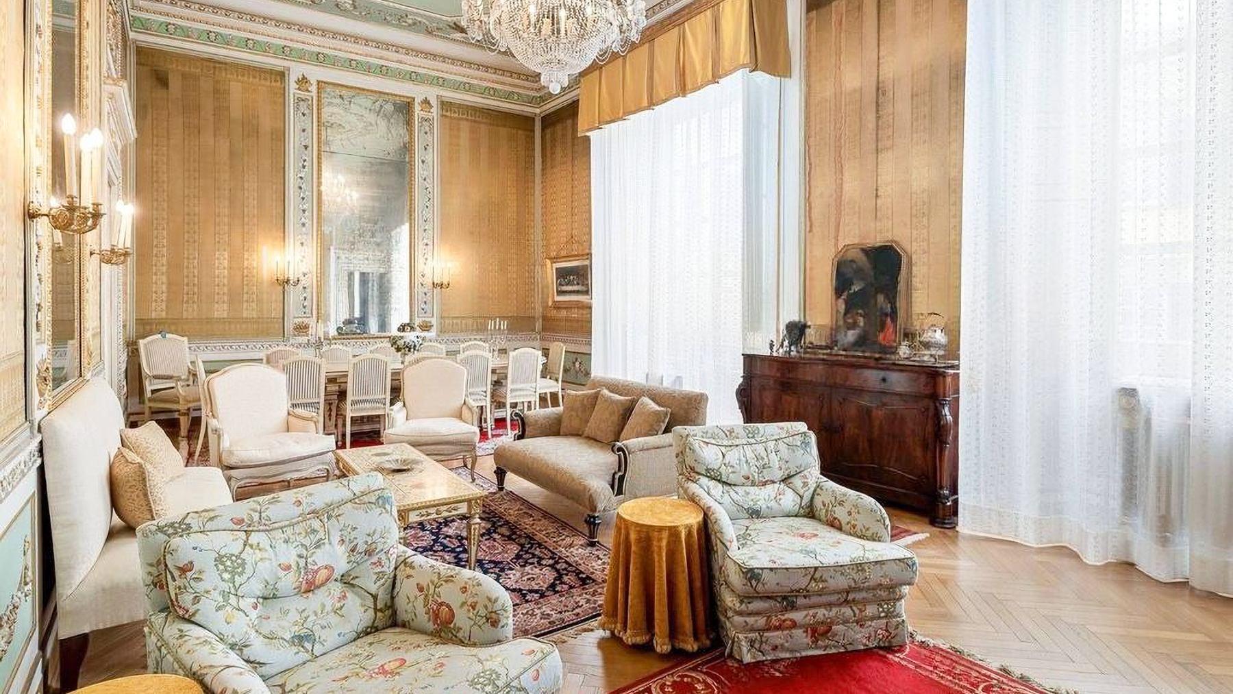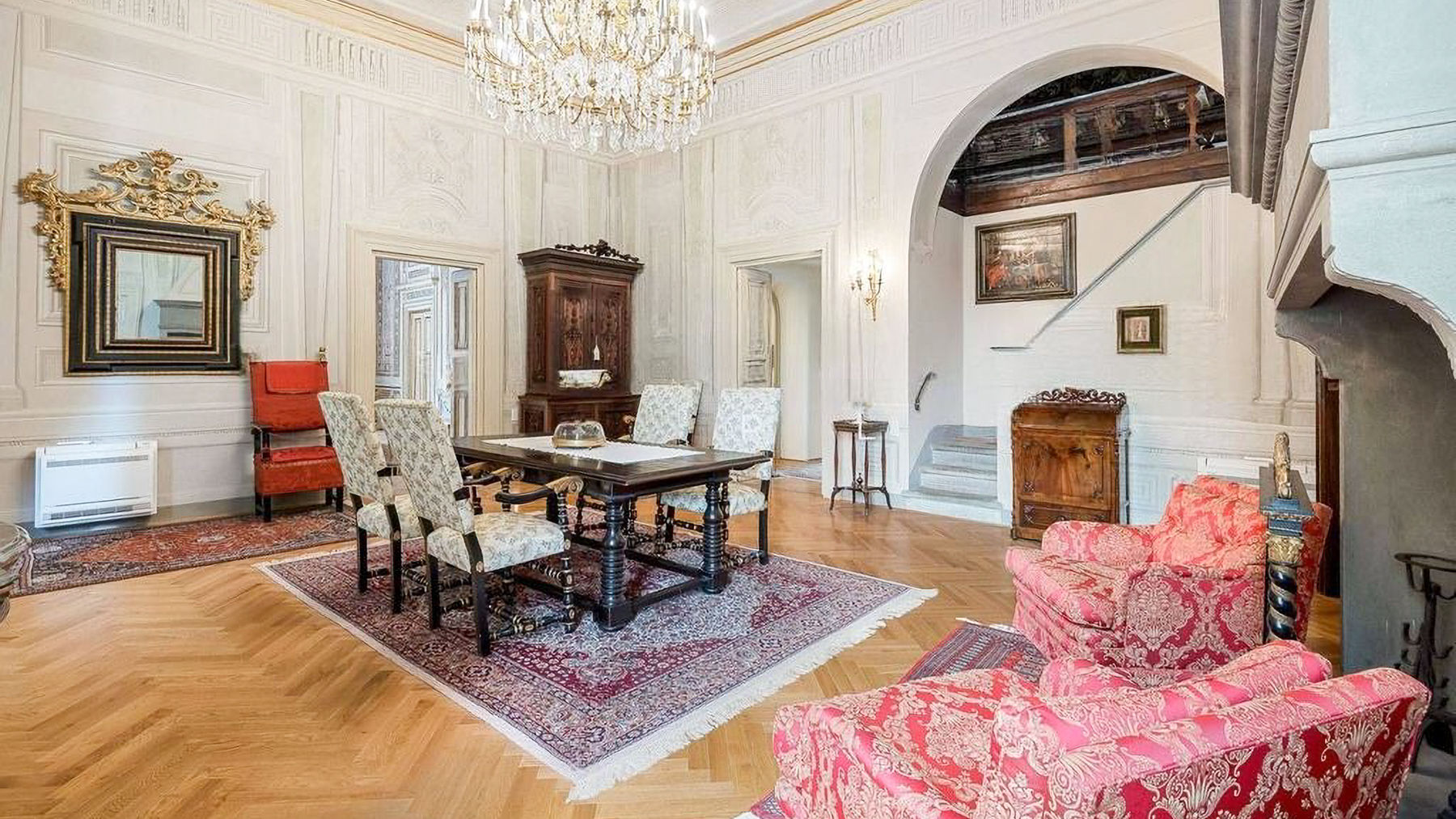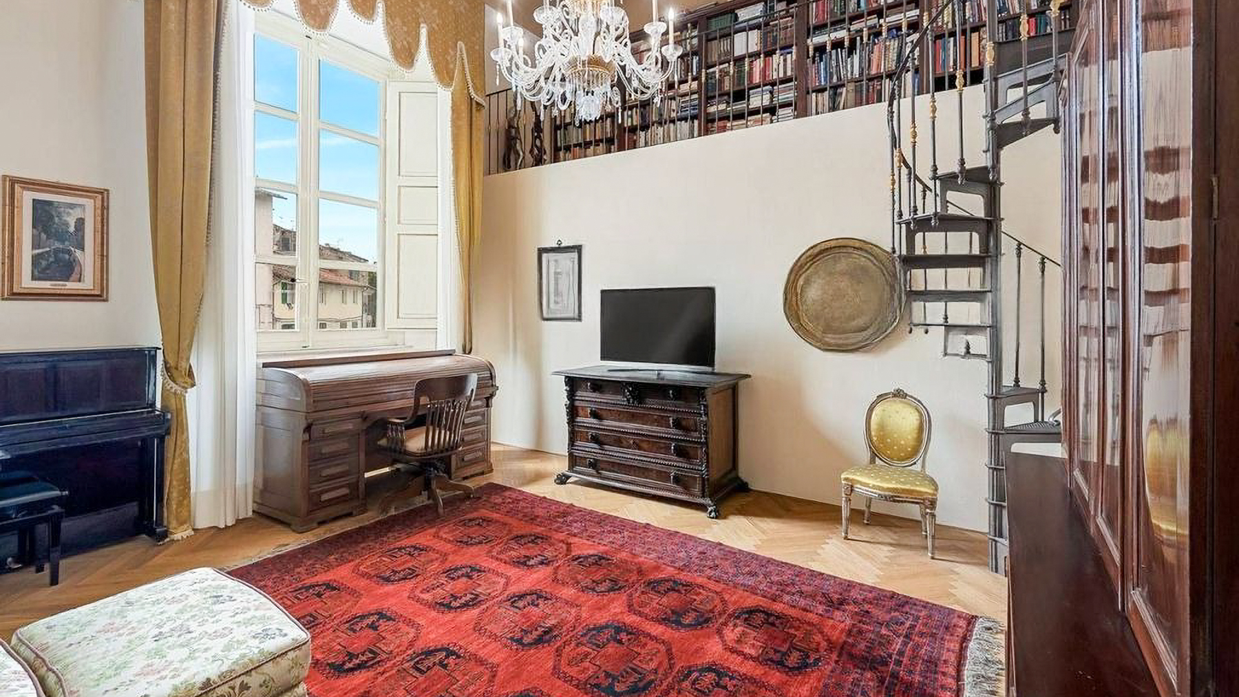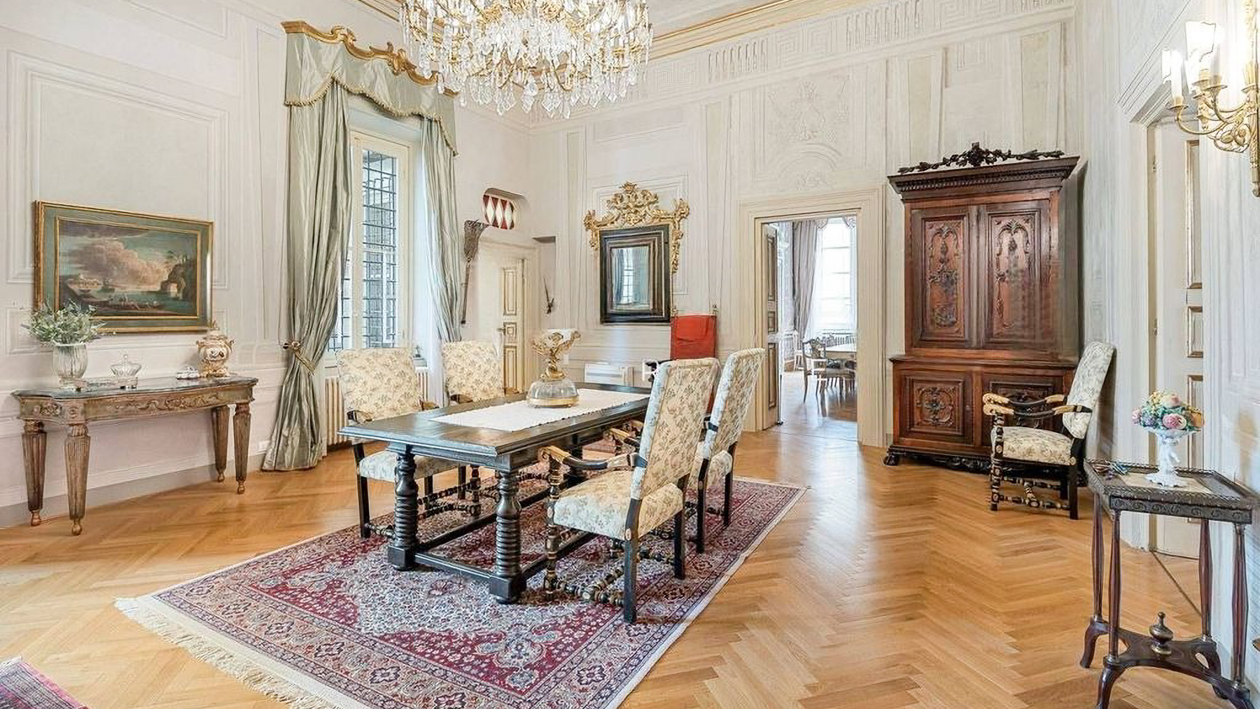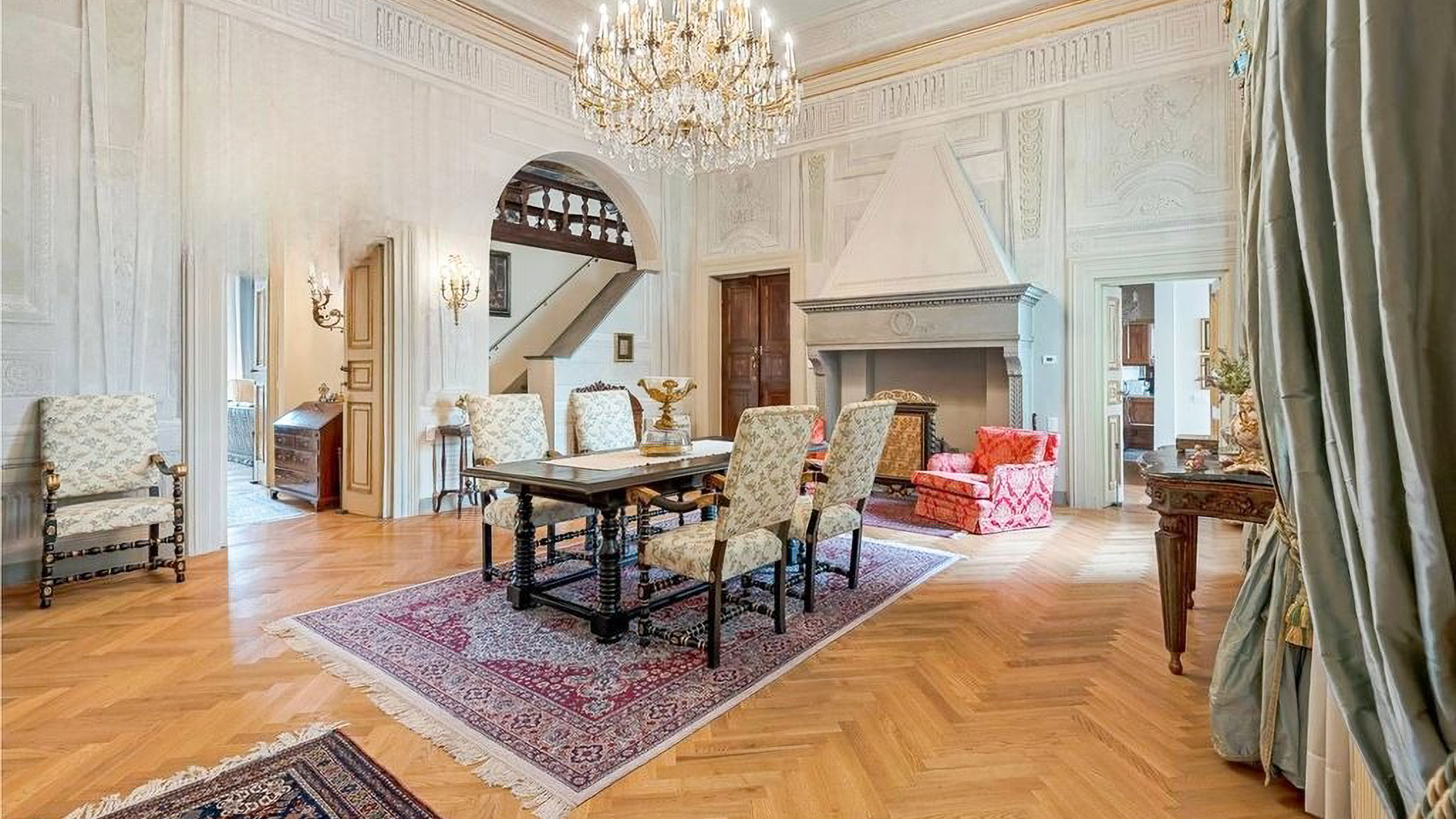 Set amidst the enchanting streets of Lucca, this exquisite property offers a sanctuary of elegance and modern luxury. The ambiance is filled with the gentle glow of natural light streaming through grand windows, the scent of fresh blooms from nearby gardens, and the serene sounds of city life at a distance, creating an atmosphere of refined tranquility. Spanning an impressive 637 square meters, this residence boasts five stunning rooms and three lavishly appointed bathrooms. Each space is a testament to meticulous design, featuring ornate architectural details, from the intricate moldings and relief sculptures to the herringbone-patterned wooden floors. The centerpiece dining room, with its opulent chandelier and elegant furnishings, exudes sophistication, while the contemporary bathroom offers a serene retreat with its modern fixtures and stylish decor. Located in the heart of Lucca, this home perfectly embodies urban elegance and timeless beauty. Living here is an experience of unparalleled delight. Picture yourself enjoying bright mornings with sunlight cascading through elegant drapes, or unwinding in the serene luxury of the beautifully designed bathroom. Every moment in this exquisite abode is a celebration of comfort and style, where the finest details have been curated for your pleasure. This remarkable property is a masterpiece of design and luxury, offering an extraordinary lifestyle in the heart of Lucca. It is not just a home, but a rare opportunity to own a piece of refined elegance and modern sophistication in the vibrant city.