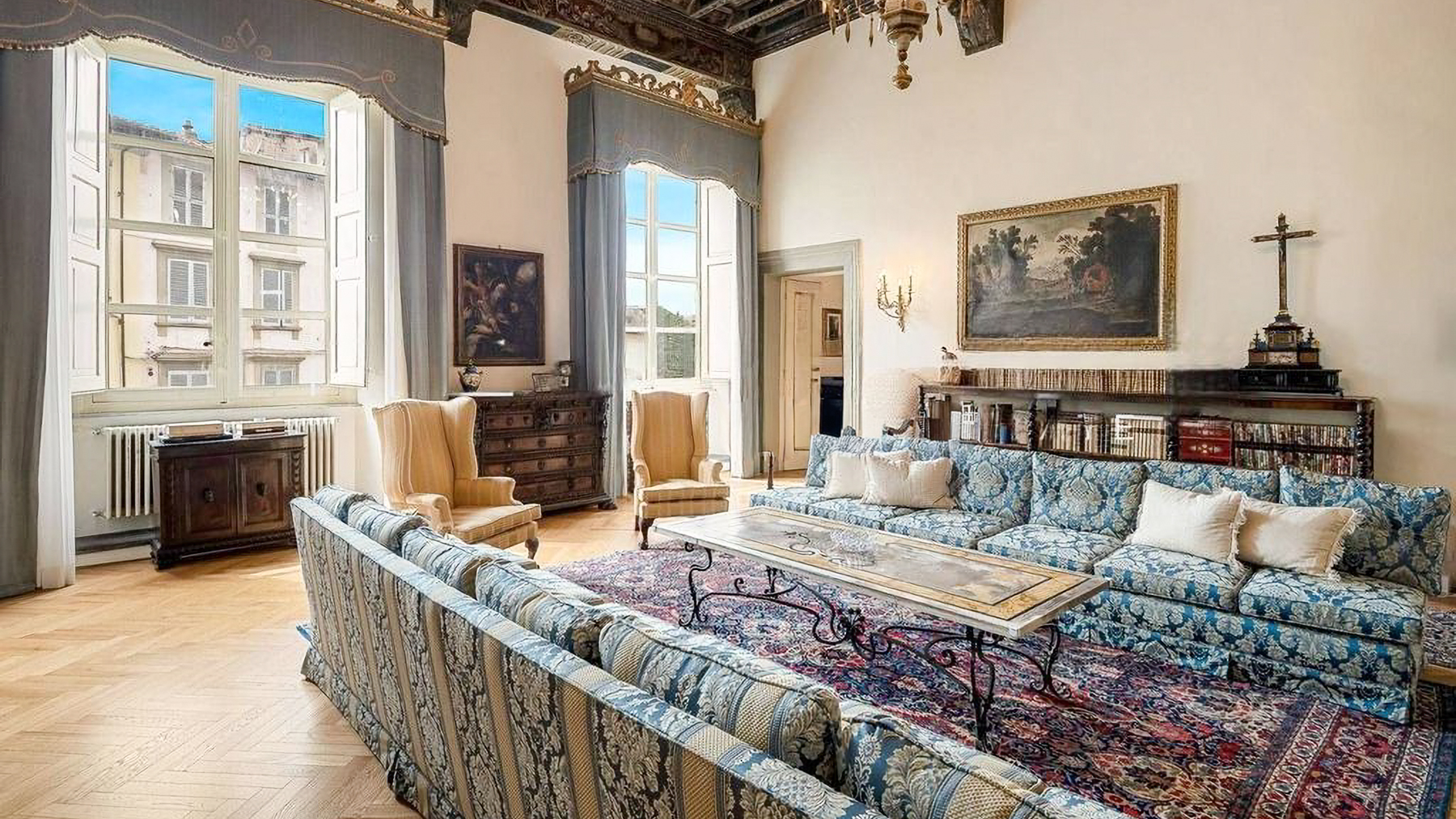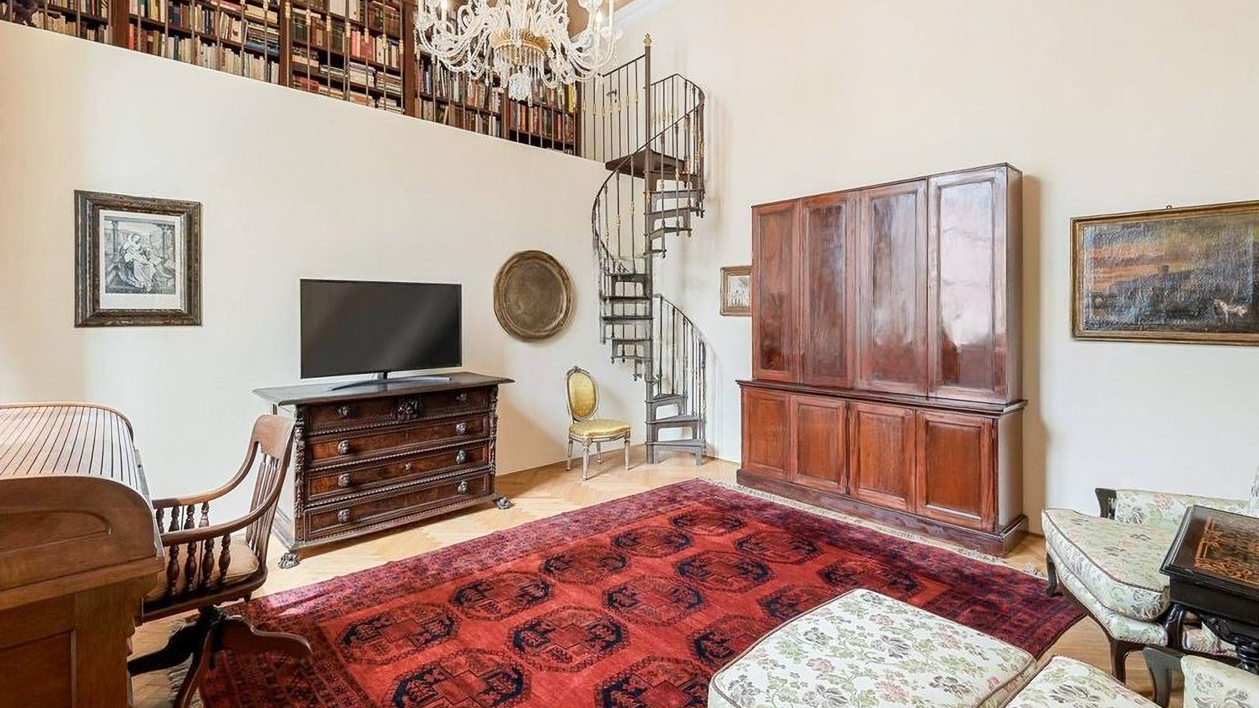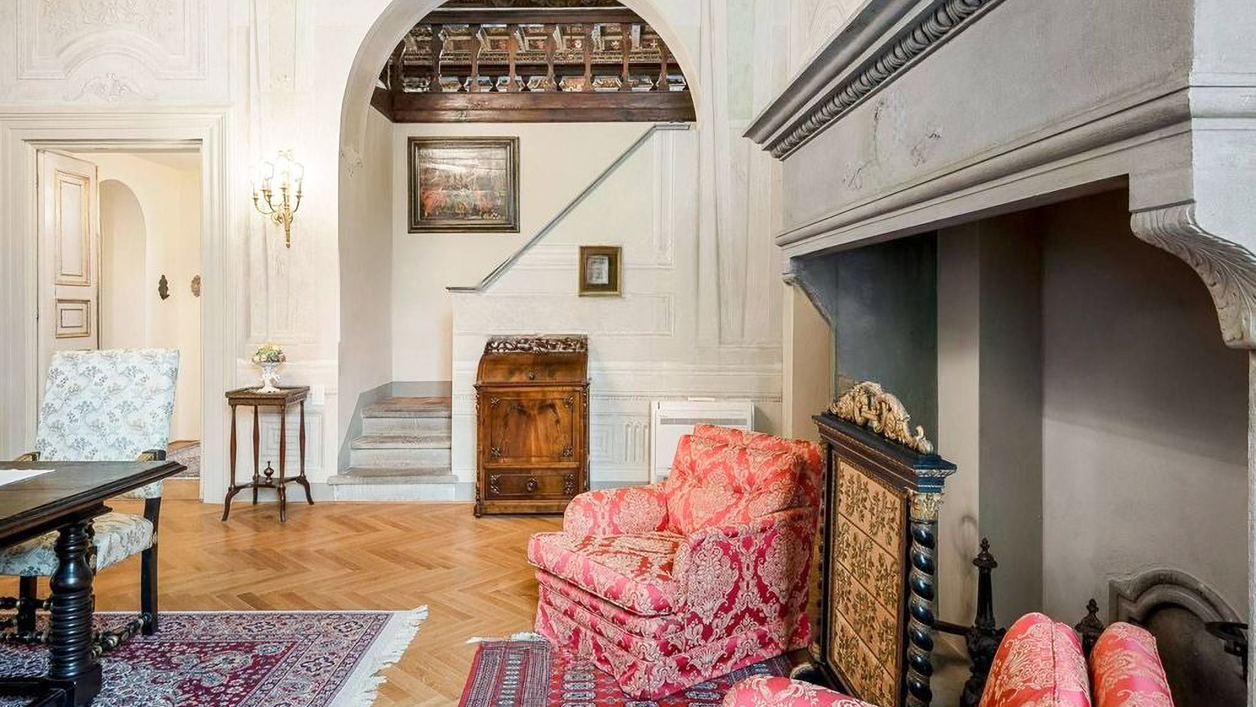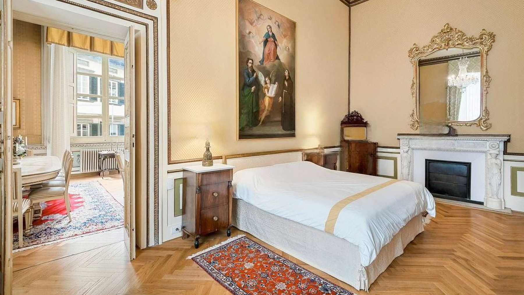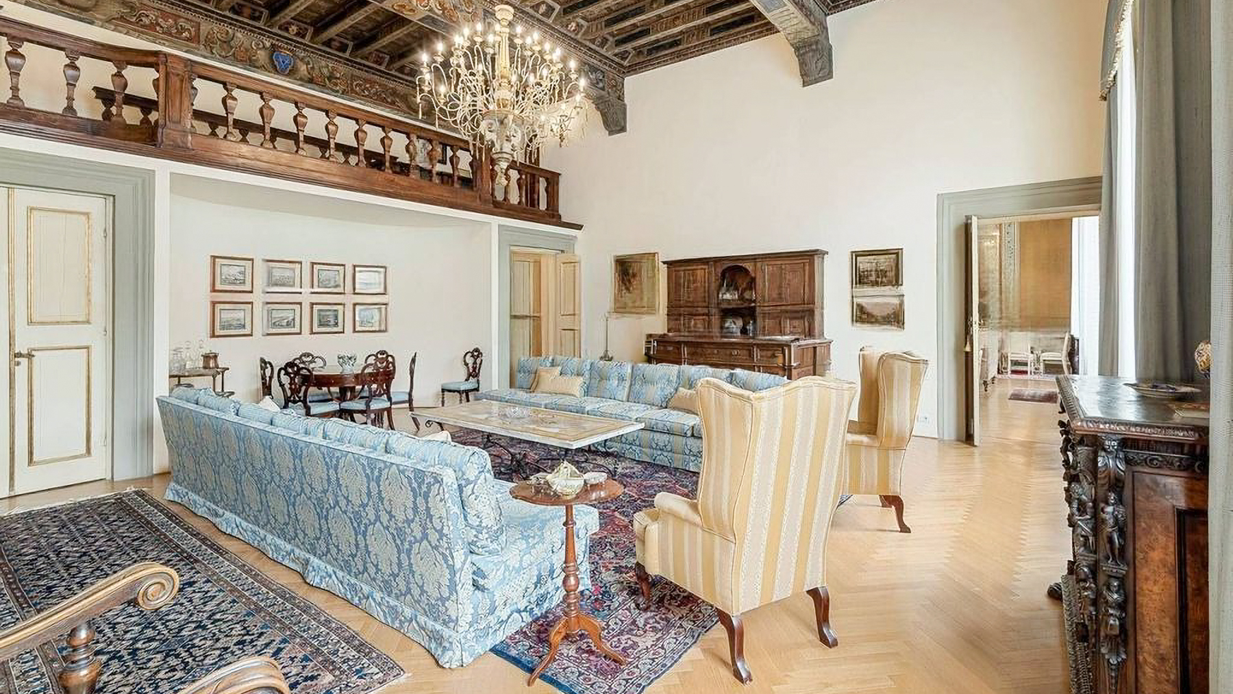 Set amidst the enchanting streets of Lucca, this exquisite property offers a sanctuary of elegance and modern luxury. The ambiance is filled with the gentle glow of natural light streaming through grand windows, the scent of fresh blooms from nearby gardens, and the serene sounds of city life at a distance, creating an atmosphere of refined tranquility. Spanning an impressive 637 square meters, this residence boasts five stunning rooms and three lavishly appointed bathrooms. Each space is a testament to meticulous design, featuring ornate architectural details, from the intricate moldings and relief sculptures to the herringbone-patterned wooden floors. The centerpiece dining room, with its opulent chandelier and elegant furnishings, exudes sophistication, while the contemporary bathroom offers a serene retreat with its modern fixtures and stylish decor. Located in the heart of Lucca, this home perfectly embodies urban elegance and timeless beauty. Living here is an experience of unparalleled delight. Picture yourself enjoying bright mornings with sunlight cascading through elegant drapes, or unwinding in the serene luxury of the beautifully designed bathroom. Every moment in this exquisite abode is a celebration of comfort and style, where the finest details have been curated for your pleasure. This remarkable property is a masterpiece of design and luxury, offering an extraordinary lifestyle in the heart of Lucca. It is not just a home, but a rare opportunity to own a piece of refined elegance and modern sophistication in the vibrant city.