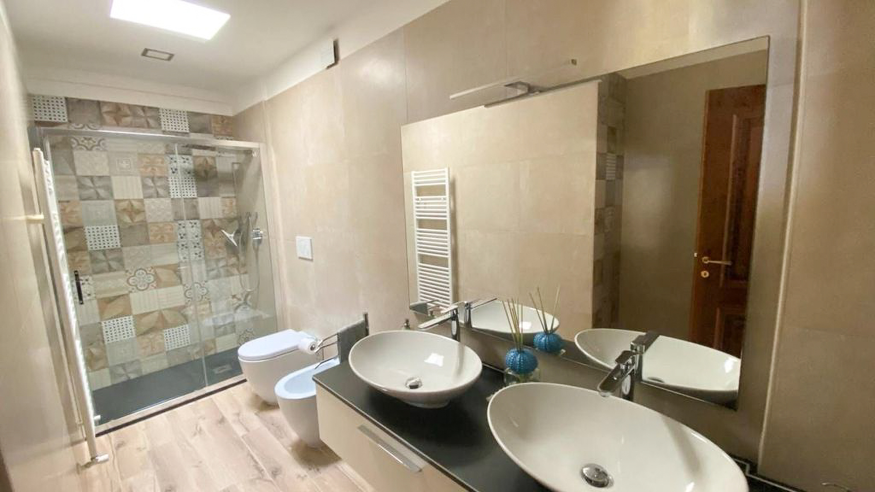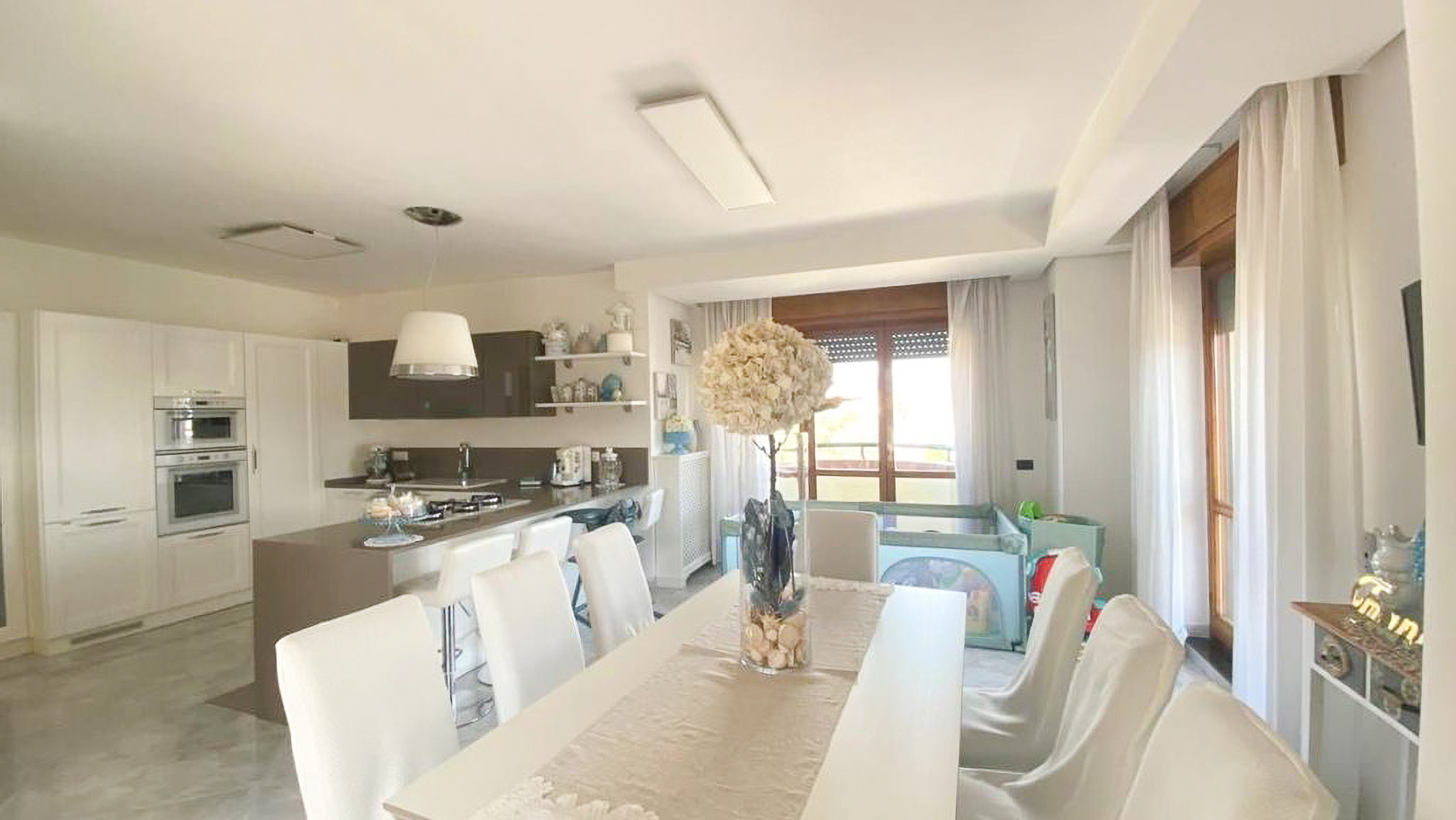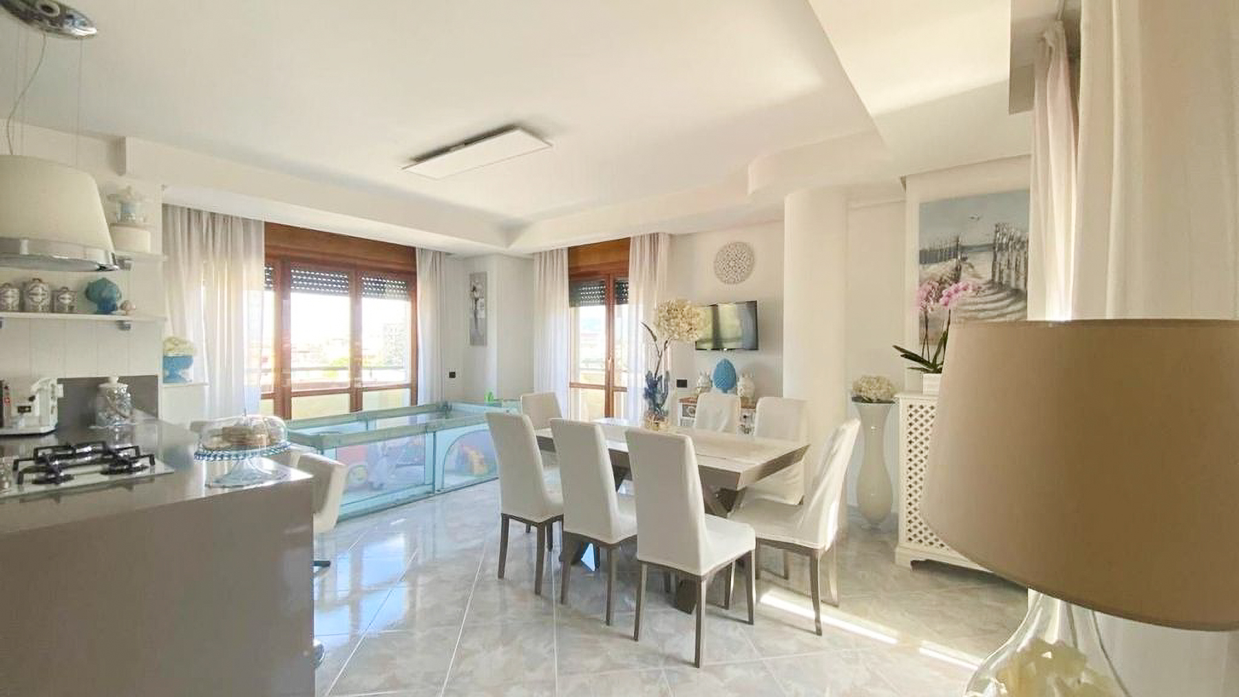 Perched on the edge of an enchanting landscape, this exquisite residence in Pompei, Napoli, invites you into a world of elegance and serenity. As you step onto the terrace, the gentle breeze carries the scent of blooming flowers, while panoramic views of majestic mountains and a clear blue sky unfold before you. This is a haven where luxury meets tranquility, offering a sensory escape from the bustle of everyday life. Spanning an impressive 296 square meters, this remarkable property features five spacious rooms and three modern bathrooms, providing ample space for comfort and relaxation. The bright, open-plan living area is graced with large windows draped in sheer curtains, allowing natural light to flood the space and enhance its airy ambiance. A modern kitchen, complete with a countertop and stylish decorative elements, meets the needs of any culinary enthusiast. Outside, a beautiful garden and a scenic terrace offer perfect spots to unwind or entertain, encapsulating the essence of refined living by the sea. Life in this stunning residence is an endless celebration of beauty and leisure. Imagine sipping your morning coffee on the terrace as the sun rises, or hosting intimate gatherings under the stars, with the twinkling city lights as your backdrop. Each moment spent here is an embrace of the luxurious coastal lifestyle. This exceptional property is not just a home; it is a statement of prestige and exclusivity. A rare gem in the luxury real estate market, it promises to be a sanctuary of modern comfort and timeless elegance.