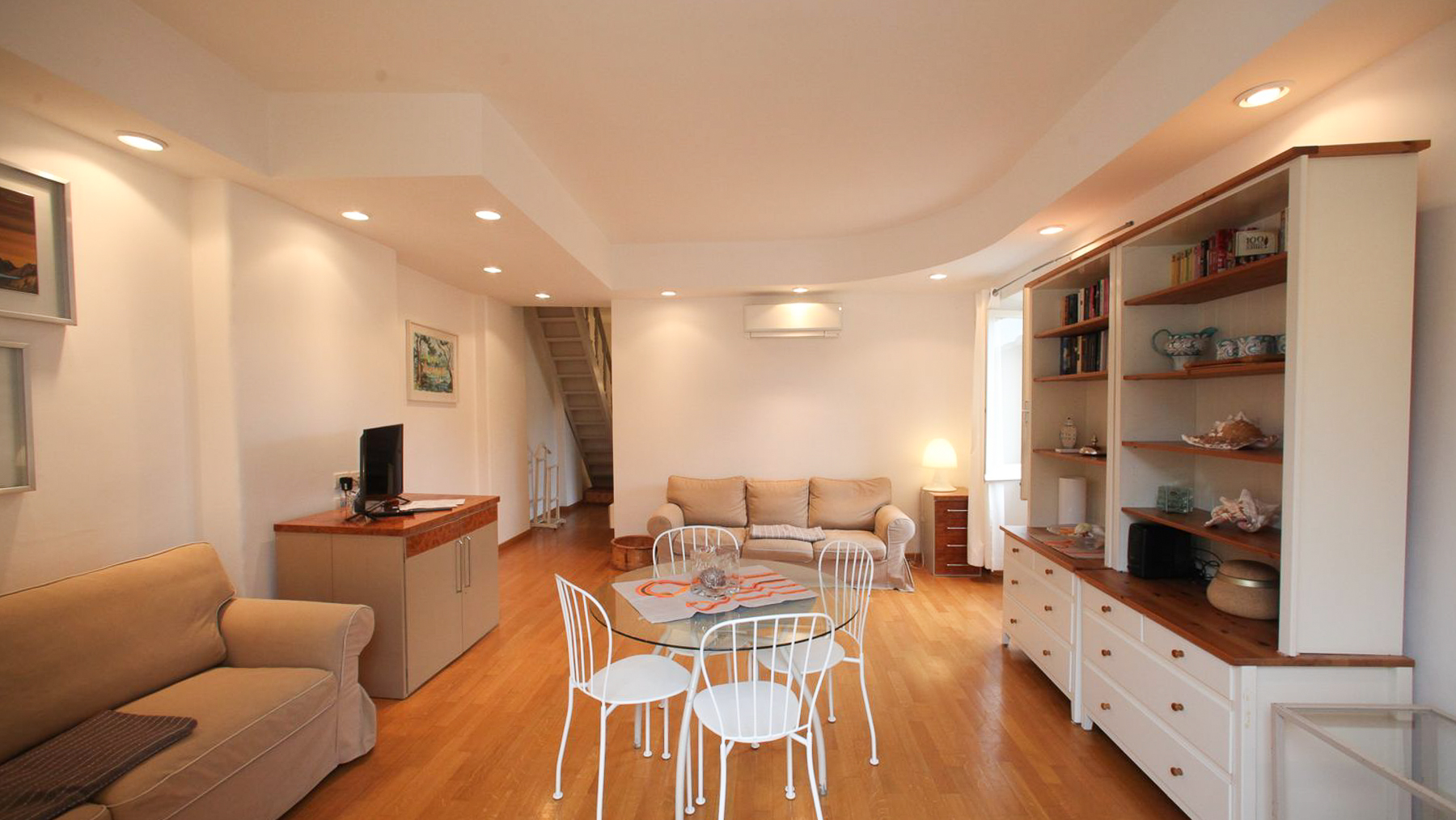 Imagine stepping into an oasis of modern elegance, where natural light dances across light wood floors and a serene ambiance envelops you. This exquisite residence in Portofino, Genova, offers a seamless blend of luxury and comfort, perfectly positioned amidst the charming cityscape. With views of lush greenery beyond your windows, every moment here feels like a breath of fresh air, inviting you to unwind and savor life's finer pleasures. Spanning 115 square meters, this sophisticated abode boasts three spacious rooms and two pristine bathrooms, each designed with a minimalist aesthetic that emphasizes both beauty and functionality. The living area, with its beige sofa and glass dining table, serves as a testament to contemporary style, while the staircase hints at the multi-level allure of this captivating home. The presence of a small console with a television, decorative elements, and shelves displaying cherished items adds a personal touch to the space, making it truly unique. Living here offers an unparalleled experience. Mornings begin with the gentle glow of sunlight streaming through open windows, accompanied by views of picturesque buildings adorned with green shutters. The modern bathroom becomes a sanctuary, where you can indulge in a moment of tranquility, surrounded by the simplicity of white tiles and the warmth of a heated towel rail. Each day is an invitation to embrace the vibrant lifestyle of Portofino, where the city's charm and sophistication are always within reach. This property is a masterpiece of luxury living, offering an exclusive retreat in one of Italy's most coveted locations. A true gem in the luxury real estate market, it promises a lifestyle that is both refined and unforgettable.