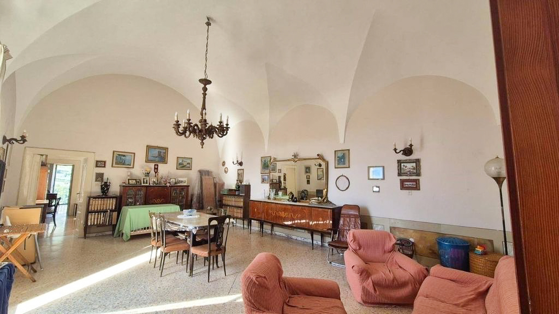 Tucked away in the enchanting town of Ravello, this elegant property exudes a timeless charm, where the serene ambiance harmonizes with the gentle whisper of the sea breeze. Bathed in natural light, the high ceilings and arched architecture create an atmosphere of grandeur and grace, inviting you to experience a lifestyle of luxury and tranquility. Spanning 140 square meters, this exquisite residence features five spacious rooms and two beautifully appointed bathrooms. The heart of the home is a luminous living area, where a vintage dining table invites gatherings and laughter. The decor, with its traditional touches and vibrant pink upholstered chairs, evokes warmth and sophistication. A terrace beckons you to unwind, offering a haven of relaxation amidst the idyllic surroundings of Ravello, Salerno. Living here is a daily indulgence, where every moment is enriched by the splendor of the Amalfi Coast. Picture yourself savoring morning coffee on the sun-drenched terrace, or relishing quiet evenings surrounded by the soft glow of framed artworks that adorn the walls. This residence offers more than just a home; it’s an invitation to embrace a lifestyle steeped in beauty and elegance. This property stands as a testament to luxurious living, a distinctive jewel in the heart of Ravello. Here, elegance meets comfort, providing an unparalleled retreat in the vibrant landscape of the Amalfi Coast.