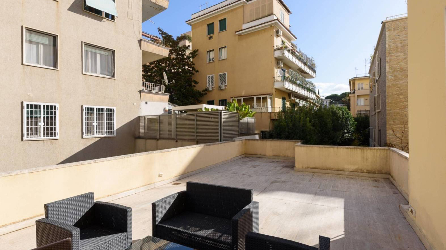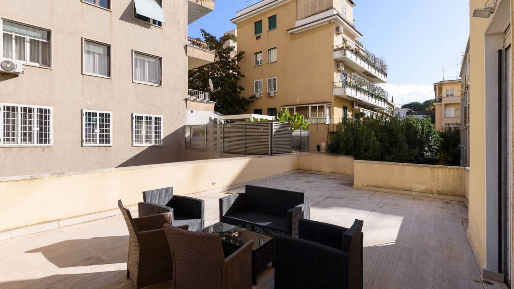 Enveloped in a serene and sophisticated ambiance, this exquisite property captures the essence of modern elegance in the heart of Rome. The gentle flow of natural light through expansive windows casts a warm, inviting glow over the meticulously designed living spaces, where every detail speaks of understated luxury and comfort. Spanning 184 square meters, this splendid residence boasts five generously sized rooms and three elegantly appointed bathrooms. The minimalist design features light-colored furniture, including two plush sofas and a stylish dining table, set against a backdrop of neutral-toned walls and floors. A large mirror with a wooden frame enhances the room's brightness, while a bookshelf brimming with books and decorative items adds a touch of intellectual charm. Located in the vibrant city of Rome, this property offers a contemporary lifestyle amidst historic charm. Imagine savoring tranquil mornings in the airy living room, with sunlight streaming through the windows, or hosting intimate gatherings around the sleek coffee table adorned with books and artful decor. The harmony of design and functionality creates a space perfect for both relaxation and entertainment. This residence is a testament to refined living, a rare sanctuary of sophistication in the bustling cityscape of Rome. It is not just a home, but a statement of luxury and exclusivity in the real estate market.