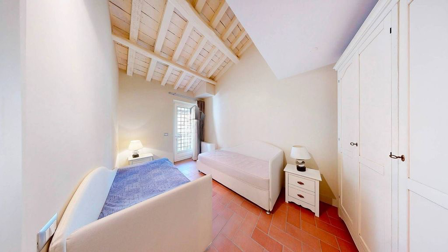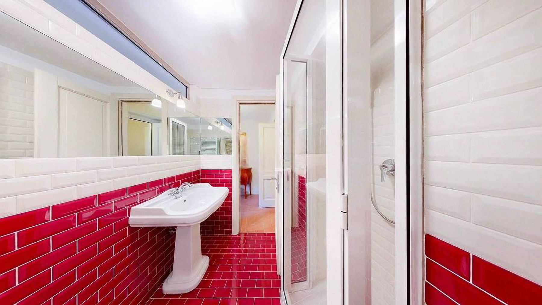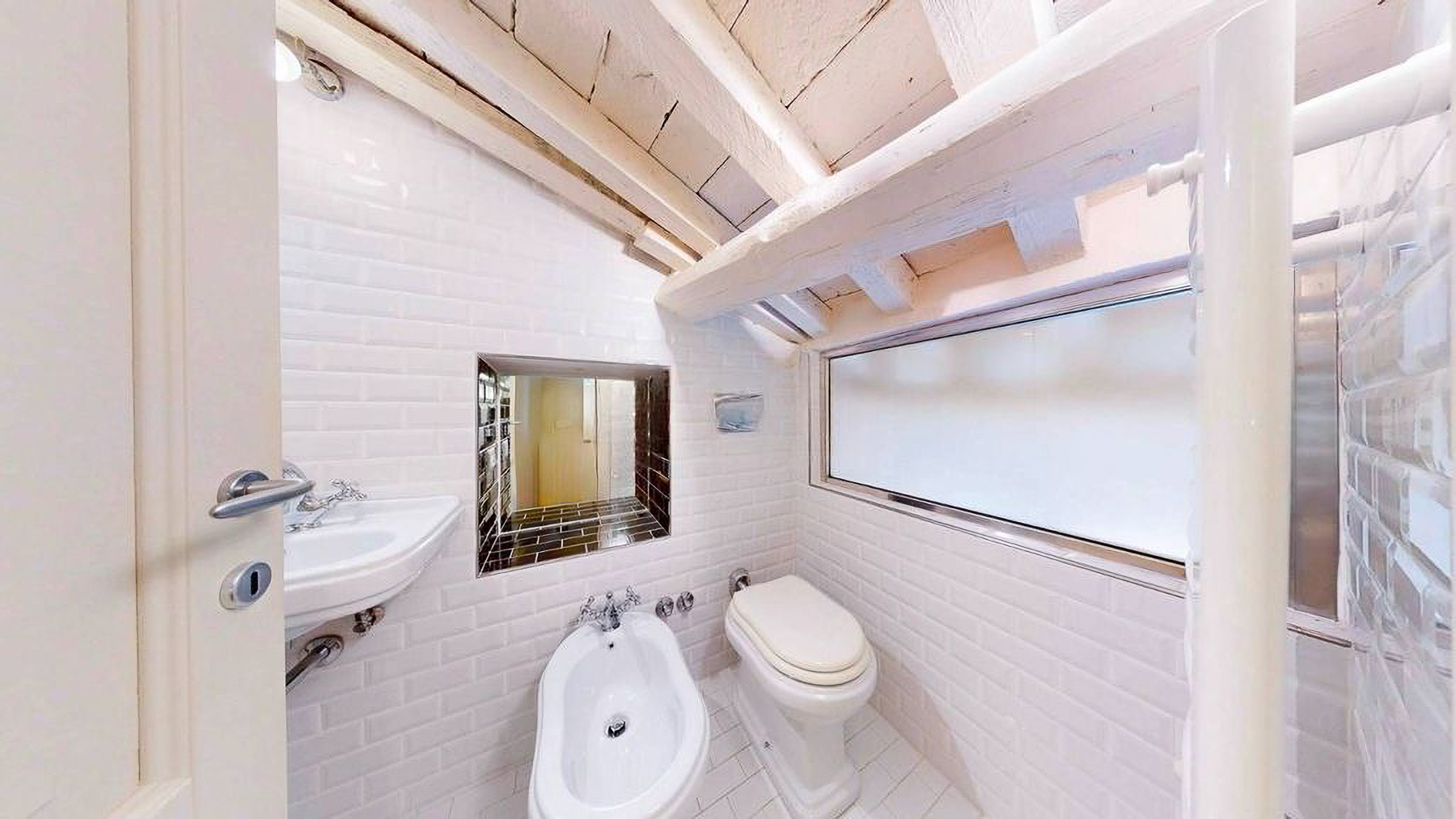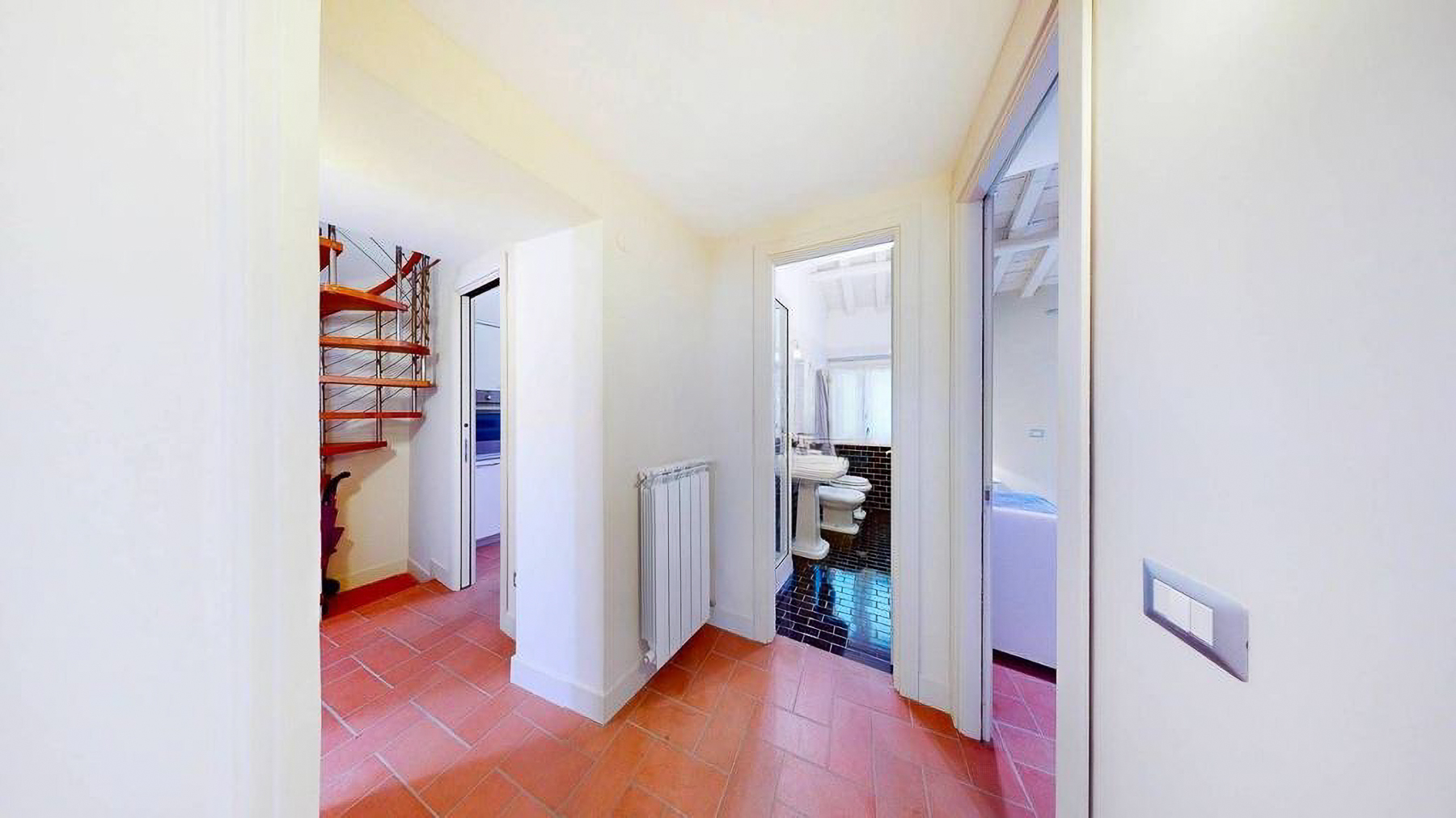 Tucked away in the heart of Rome, this exquisite residence epitomizes the perfect blend of modern sophistication and classic charm. As you step inside, you're embraced by the warmth of wooden beams overhead and the soft glow of elegant lighting, inviting you to explore further into this serene oasis amidst the bustling city. Spanning a generous 123 square meters, this luxurious home features four spacious rooms and three elegantly styled bathrooms. The open living and dining area boasts a high ceiling, a decorative gold-framed mirror, and a beautiful fusion of modern and classic elements. The kitchen is a masterpiece of contemporary design, with dark cabinetry, gold accents, and a pristine marble countertop. A distinctive red armchair adds a pop of color, while the cozy light-colored sofa promises relaxation. The property also offers a stunning terrace, perfect for outdoor enjoyment in the heart of Rome. Living here means indulging in a lifestyle of luxury and comfort. Picture yourself unwinding in the inviting lounge, or hosting intimate dinner parties with the city as your backdrop. The terrace becomes a focal point for gatherings, where you can savor Italian wine under the stars, feeling the pulse of the city in the air. This remarkable residence offers an unparalleled opportunity to experience the finest in urban living. It is not just a home, but a statement of elegance and sophistication—truly a rare find in Rome's luxury real estate market.