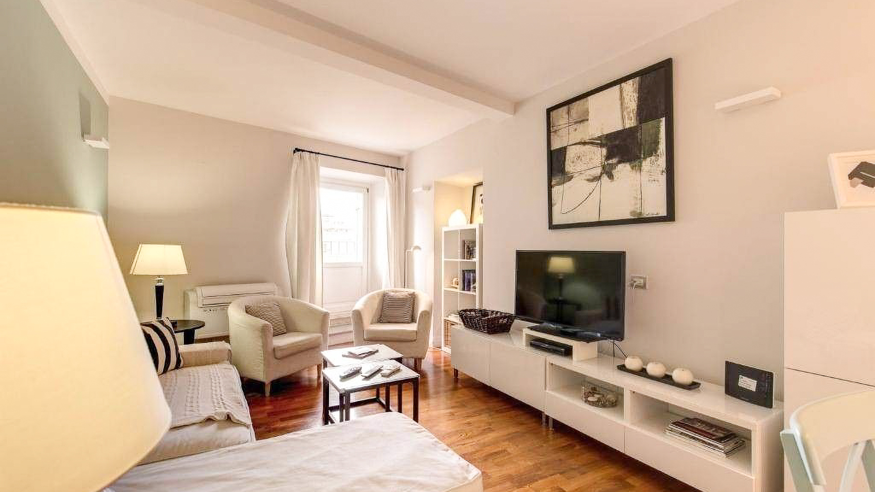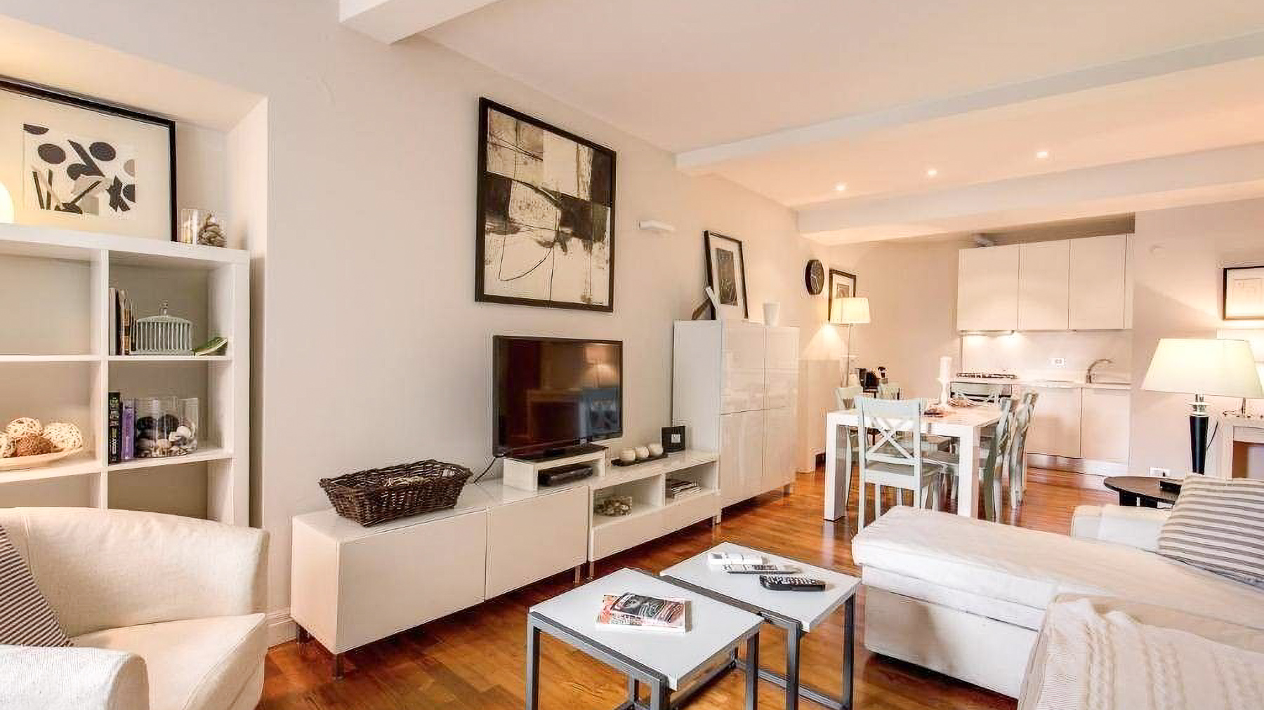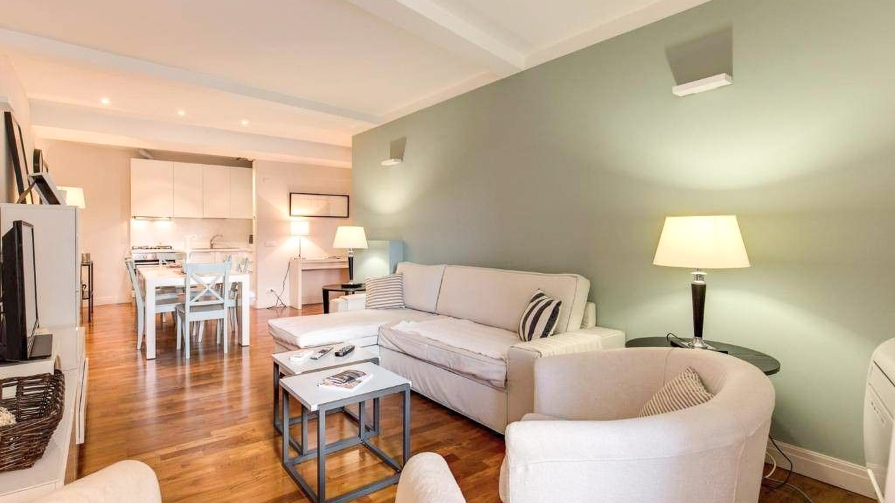 In the heart of Rome, this exquisite apartment is a sanctuary of modern elegance and comfort. Bathed in natural light, the space invites you into a world of warmth, where the gentle hues of beige and muted green create a serene ambiance, harmonizing with the soft rustle of white curtains in the breeze. Spanning 88 square meters, this sophisticated residence offers three beautifully appointed rooms and two luxurious bathrooms. The open-plan design seamlessly connects the living room, dining area, and kitchen, creating an inviting flow that's perfect for both relaxation and entertaining. The stylish interior boasts wooden flooring and carefully selected furnishings, enhancing the sense of understated luxury. Located in the vibrant city of Rome, this property epitomizes urban living with a touch of tranquility. Imagine coming home to this tranquil retreat, where every detail is designed to soothe and inspire. The cozy living area, with its plush armchairs and elegant decor, promises intimate evenings of unwinding, while the dining area beckons for gatherings with friends and family. The experience of living here is one of refined simplicity and effortless grace. This apartment is a rare find, offering a harmonious blend of modern luxury and timeless charm, set within one of the world's most captivating cities. An exceptional opportunity awaits those seeking an extraordinary lifestyle in Rome.