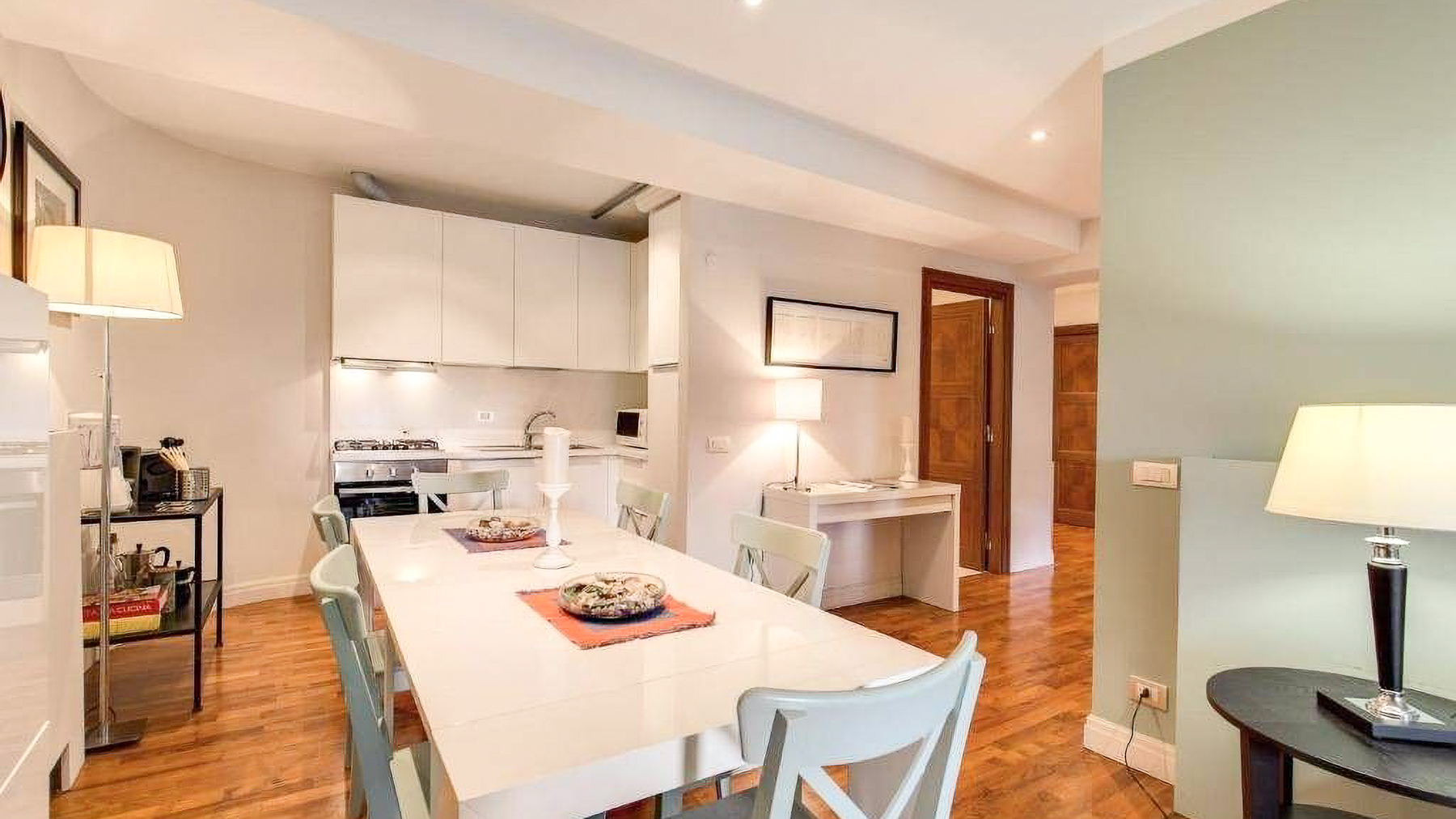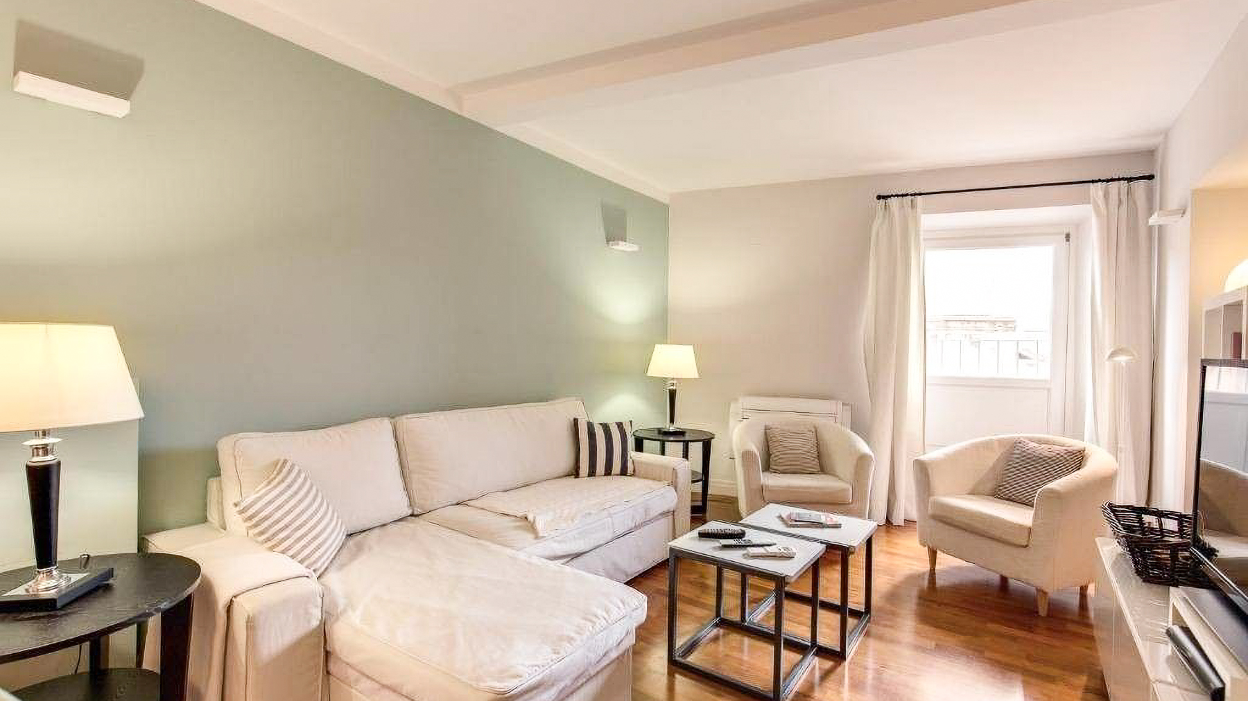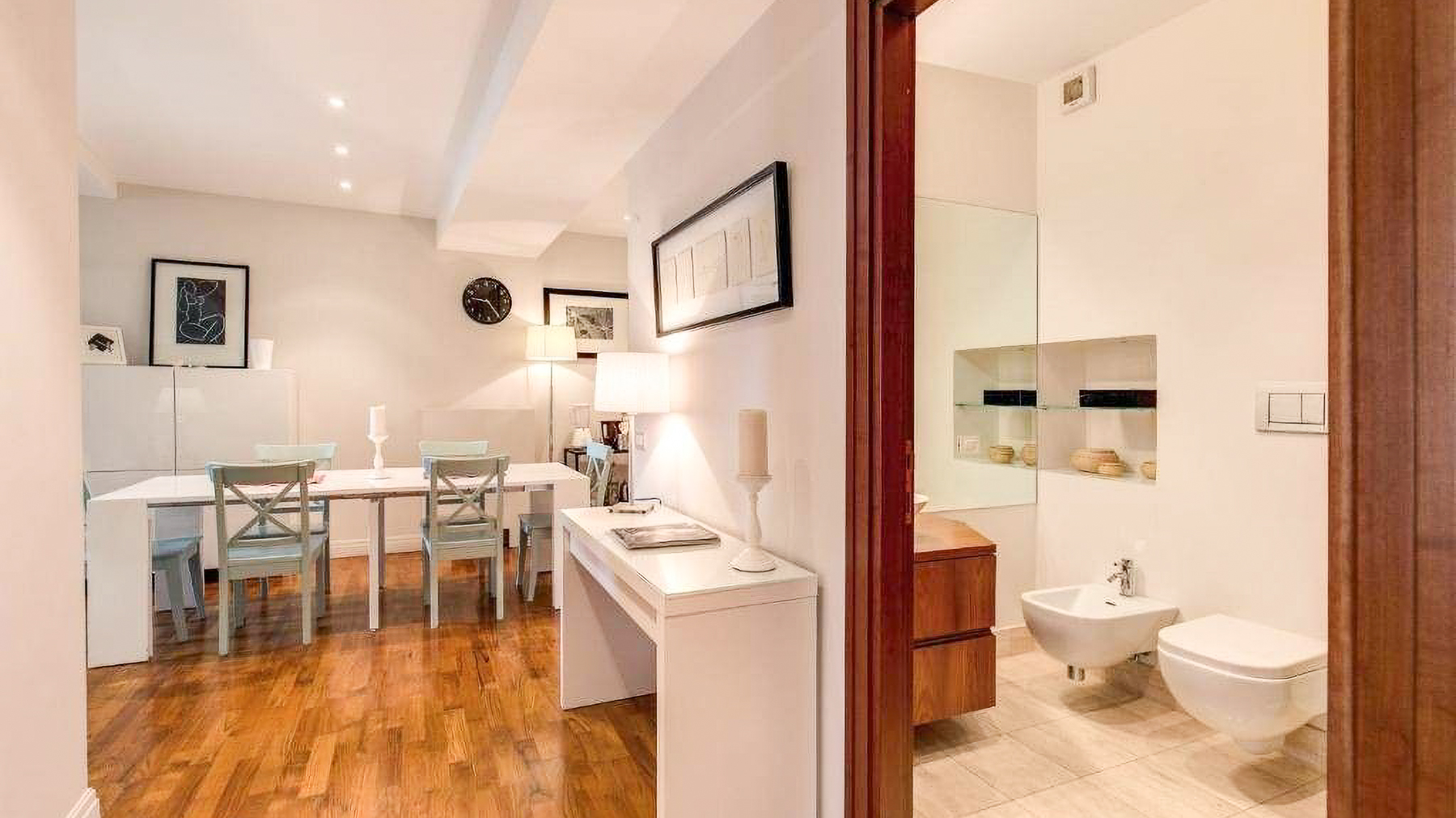 In the heart of Rome, this exquisite apartment is a sanctuary of modern elegance and comfort. Bathed in natural light, the space invites you into a world of warmth, where the gentle hues of beige and muted green create a serene ambiance, harmonizing with the soft rustle of white curtains in the breeze. Spanning 88 square meters, this sophisticated residence offers three beautifully appointed rooms and two luxurious bathrooms. The open-plan design seamlessly connects the living room, dining area, and kitchen, creating an inviting flow that's perfect for both relaxation and entertaining. The stylish interior boasts wooden flooring and carefully selected furnishings, enhancing the sense of understated luxury. Located in the vibrant city of Rome, this property epitomizes urban living with a touch of tranquility. Imagine coming home to this tranquil retreat, where every detail is designed to soothe and inspire. The cozy living area, with its plush armchairs and elegant decor, promises intimate evenings of unwinding, while the dining area beckons for gatherings with friends and family. The experience of living here is one of refined simplicity and effortless grace. This apartment is a rare find, offering a harmonious blend of modern luxury and timeless charm, set within one of the world's most captivating cities. An exceptional opportunity awaits those seeking an extraordinary lifestyle in Rome.