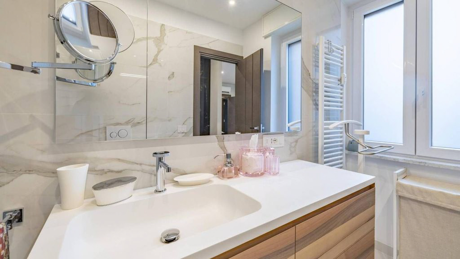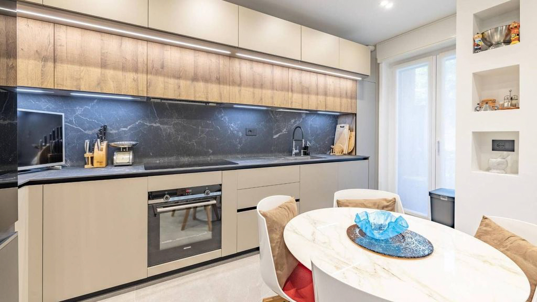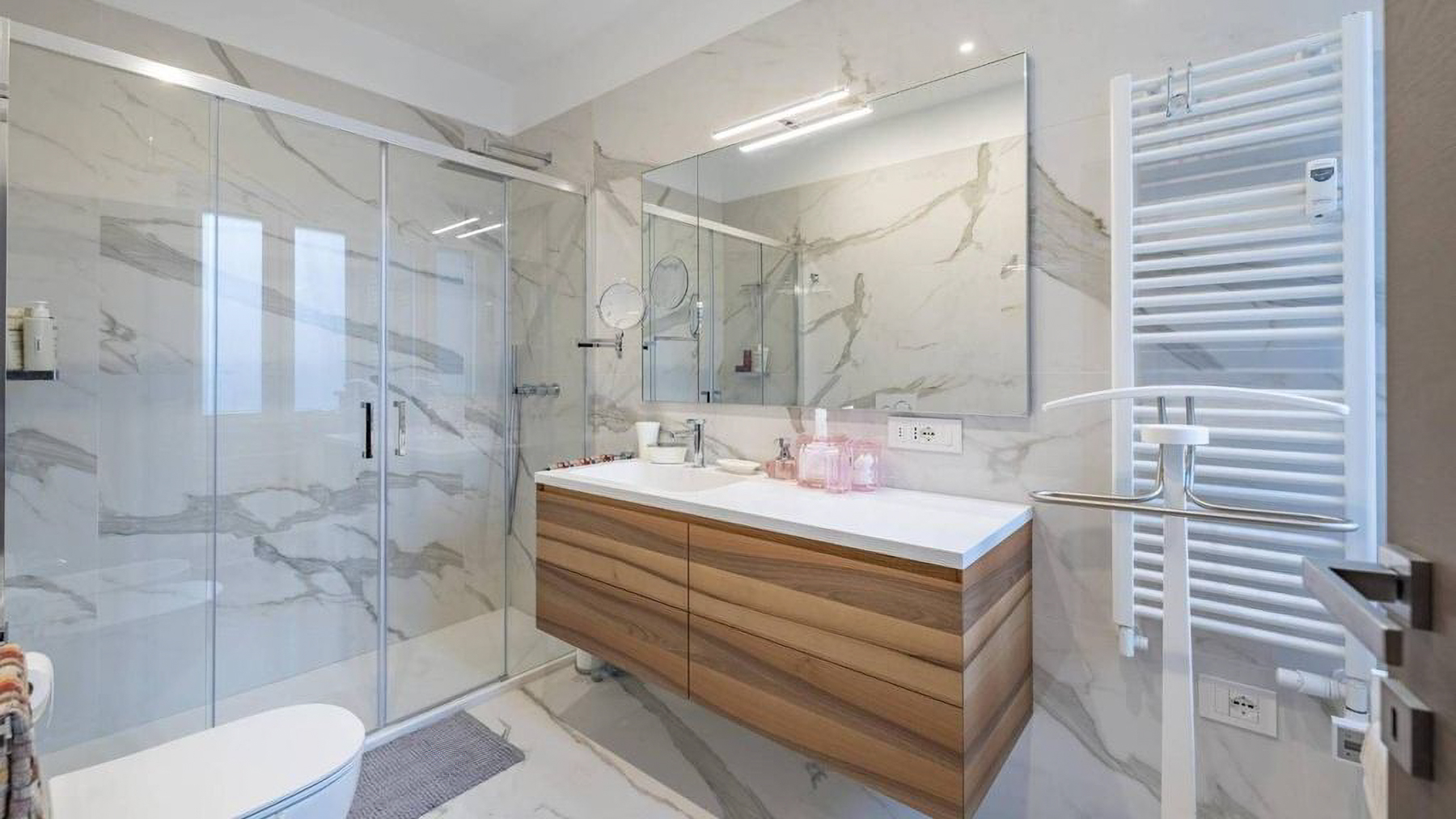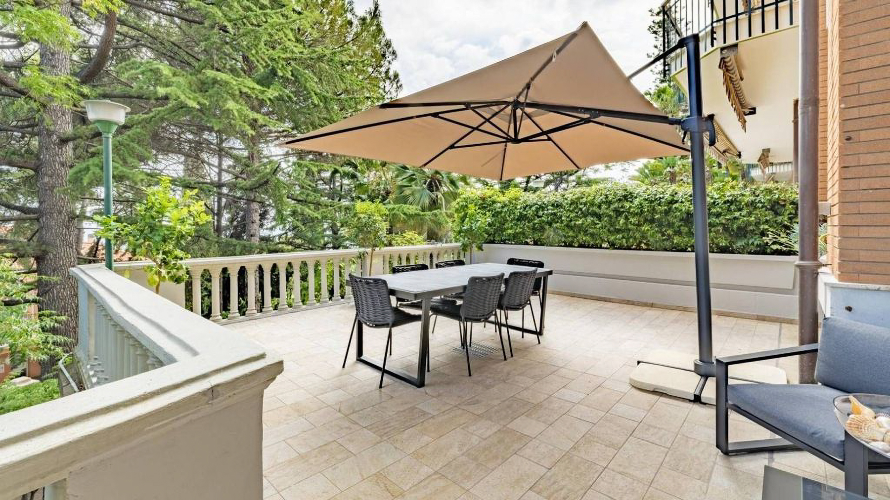 In the heart of Sanremo, where the azure waves meet the golden sun, lies an exquisite sanctuary of modern elegance. Bathed in natural light from expansive windows, this home offers a serene retreat with the gentle hum of the sea whispering through light-colored curtains. Spanning 165 square meters, this sophisticated residence boasts four impeccably designed rooms and three luxurious bathrooms. The open-plan living space is a testament to contemporary design, featuring a plush gray sectional sofa, a sleek entertainment unit, and a dining area set for intimate gatherings. The property’s pièce de résistance is its spacious terrace, providing a perfect setting for savoring the picturesque views of Sanremo, Imperia. Life here is an experience of indulgence and ease. Picture yourself savoring a morning espresso on the terrace as the day begins, or unwinding in the chic bathroom, enveloped in the elegance of marble tiles. This home is not just a residence; it’s a lifestyle where each day feels like a luxurious getaway. This property is a testament to refined living, offering an unparalleled blend of sophistication and comfort. It is a rare treasure in the luxury real estate market, promising an exclusive haven for those who seek the extraordinary.