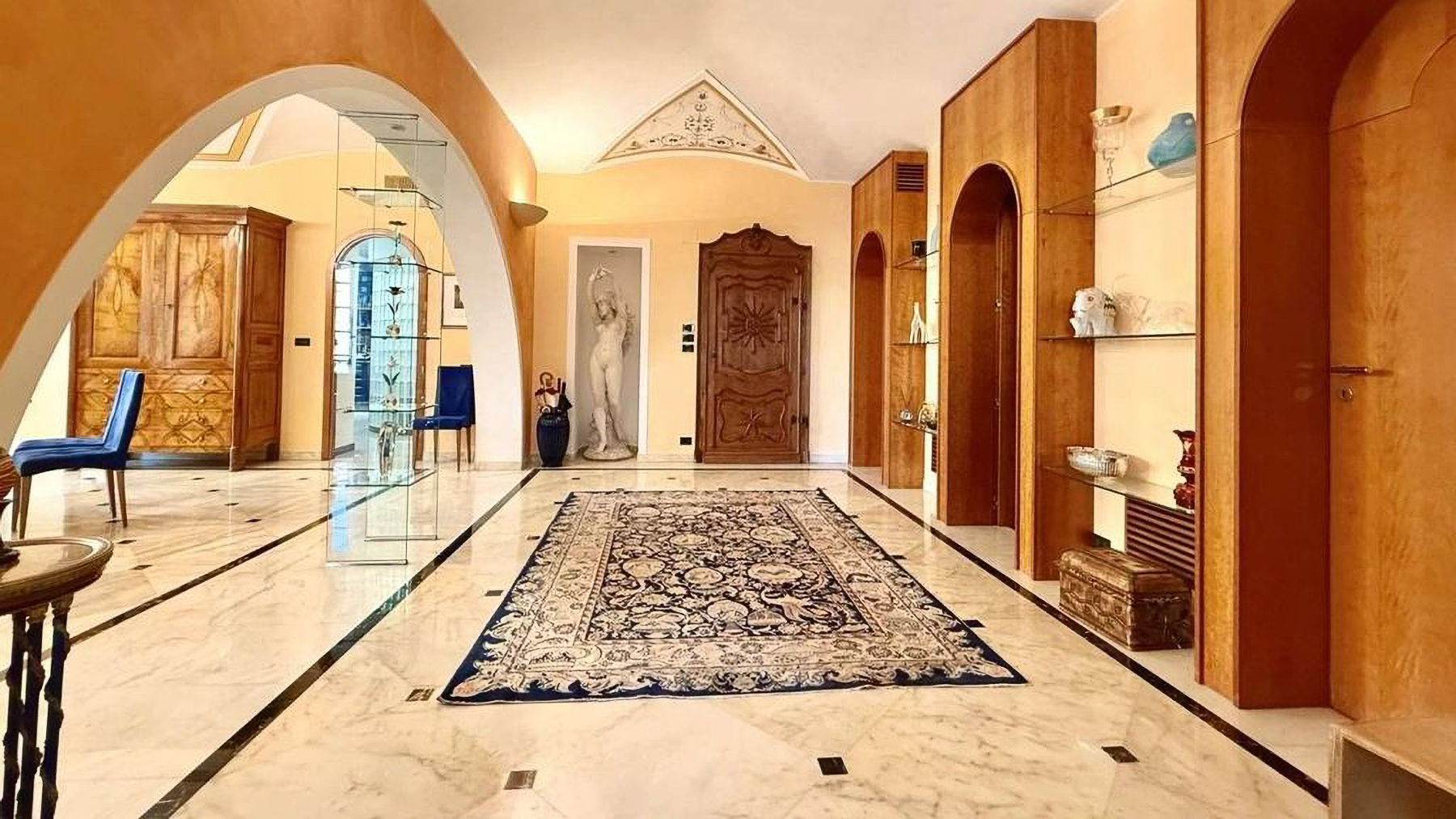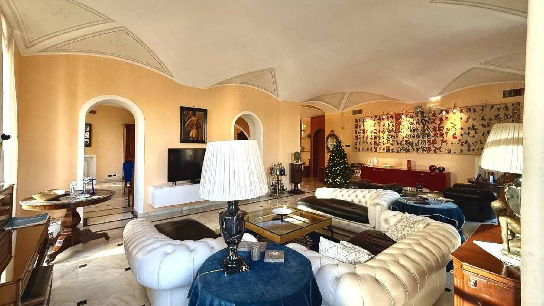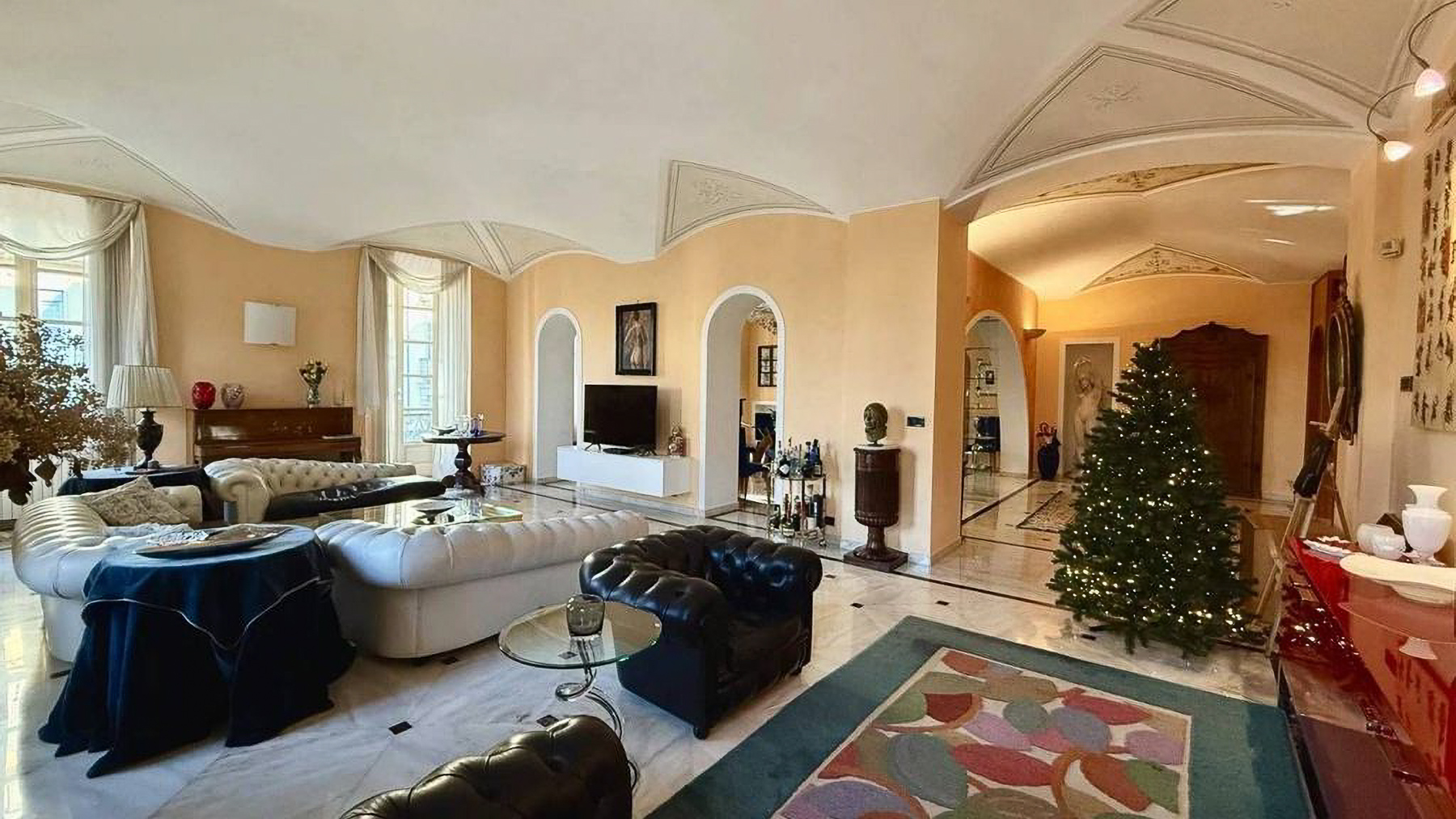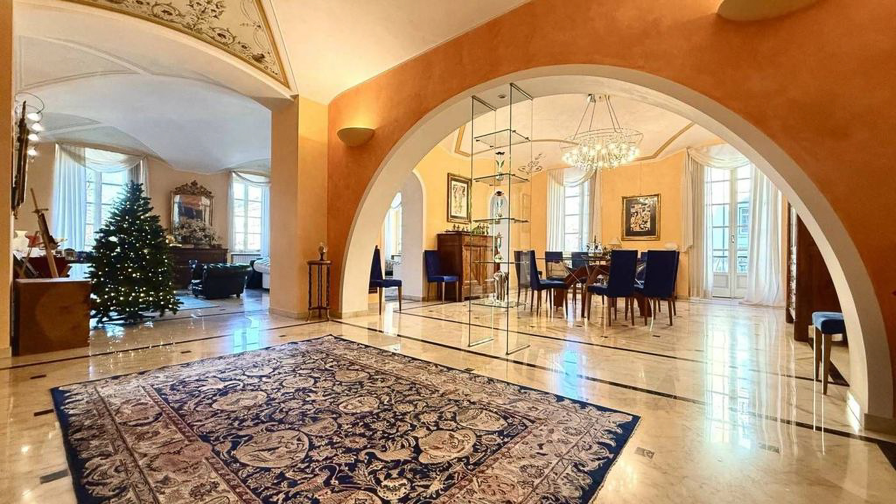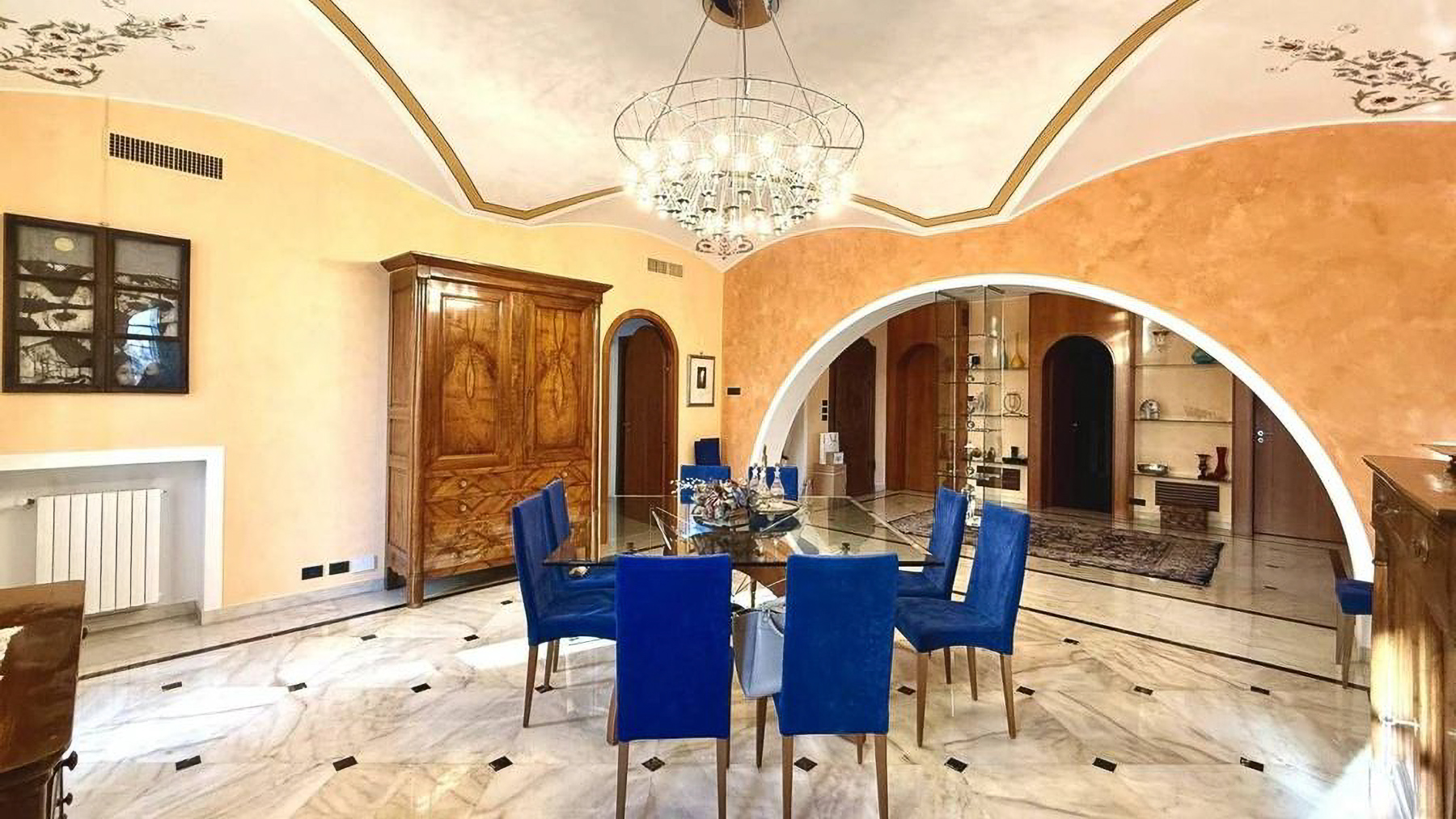 Imagine stepping into a world where modern elegance meets classic charm, right in the bustling heart of Torino. As you enter this magnificent property, you're greeted by a symphony of sophistication and style. The warm orange hues of the walls create a cozy ambiance, while the decorative chandelier bathes the room in a soft, inviting glow, setting the perfect atmosphere for luxurious living. Spanning 300 square meters, this exquisite residence offers five spacious rooms and three beautifully appointed bathrooms. The dining room is a masterpiece, featuring a round glass-topped table surrounded by plush blue-upholstered chairs. Elegant marble flooring with black accents adds a touch of opulence, while the wooden cabinet and shelves provide a refined display space. Outside, the building's classical façade, with its elegant balconies and decorative columns, exudes timeless appeal, perfectly complementing the lively urban setting of Torino. Living here means indulging in the vibrant city lifestyle, with every convenience just steps away. Imagine hosting intimate dinner parties in the stunning dining room or enjoying a quiet evening admiring the cityscape from your balcony. This is a home where experiences are cherished, and memories are made. This residence is a testament to the perfect blend of classic architecture and contemporary luxury, offering an unparalleled living experience in Torino's dynamic cityscape. A rare opportunity to own a piece of elegance in the heart of the city.