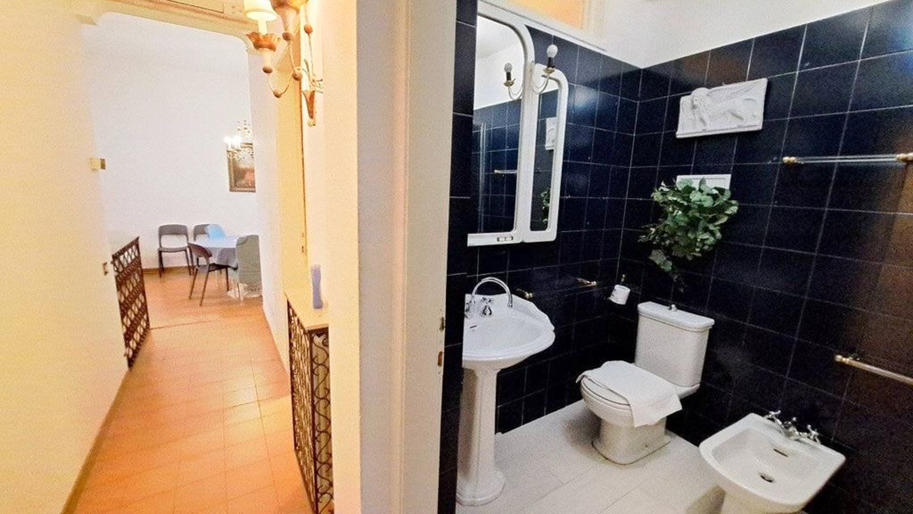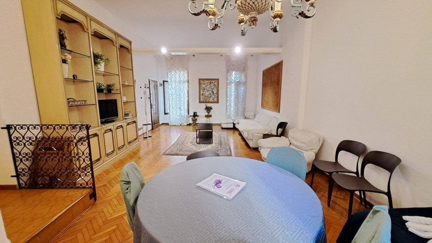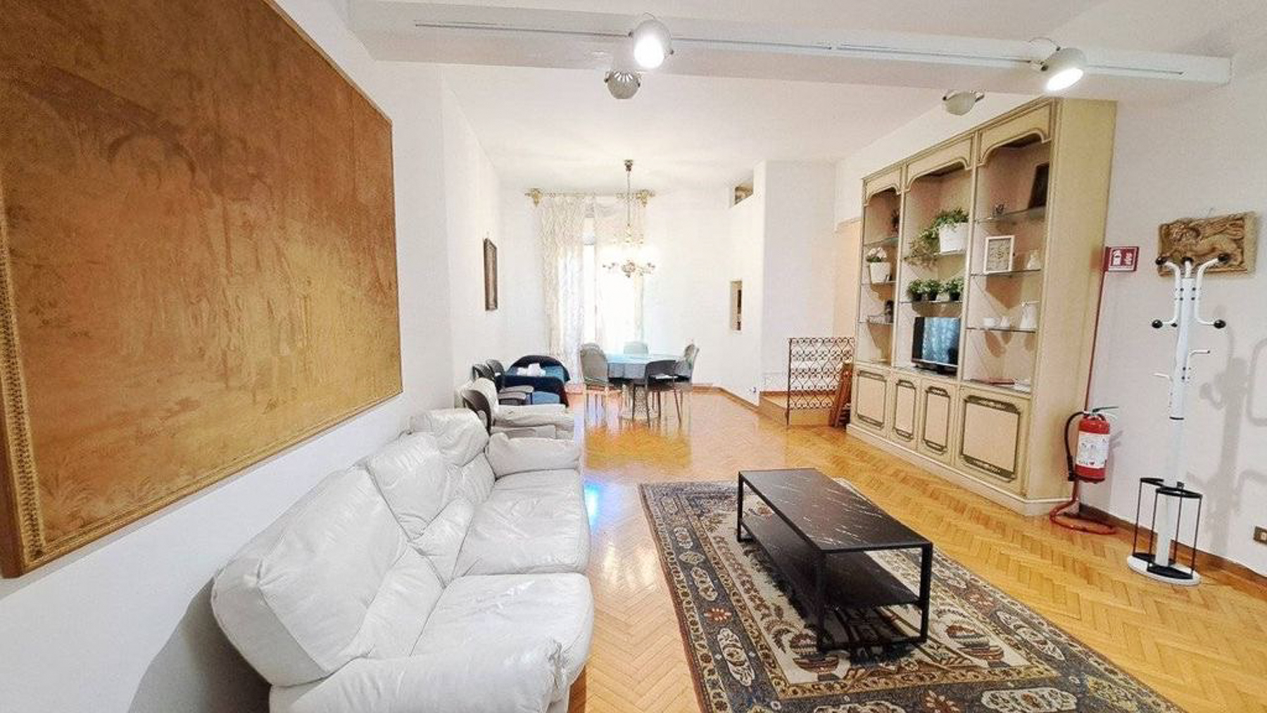 In the heart of enchanting Venice, where art and history meet, lies a residence that invites you into a world of elegance and modern charm. As sunlight filters through sheer curtains, the gentle ambiance of this home wraps around you, creating a sanctuary amidst the vibrant cityscape. Spanning 110 square meters, this exquisite property offers three thoughtfully designed rooms and a pristine bathroom. The interior is a blend of contemporary and cozy, featuring a spacious living area with a plush white sofa and a sleek black coffee table, all set upon a stylish patterned rug. The dining area, with its light blue table and chairs, sits adjacent to a built-in wooden shelf that doubles as a display unit and entertainment center. Light-colored walls and a herringbone-patterned wooden floor enhance the sense of space, while large windows bring in abundant natural light. Living here offers an unparalleled lifestyle that combines the serenity of your private retreat with the lively pulse of Venice. Imagine leisurely mornings sipping espresso as sunlight dances across the room, or intimate dinners surrounded by art and elegance. This home is more than just a dwelling; it's an experience of luxury in the city's heart. An oasis of sophistication and warmth, this property is a rare find in Venice. It provides an exquisite blend of modern living and timeless charm, ensuring it stands as a testament to refined taste and exclusivity.