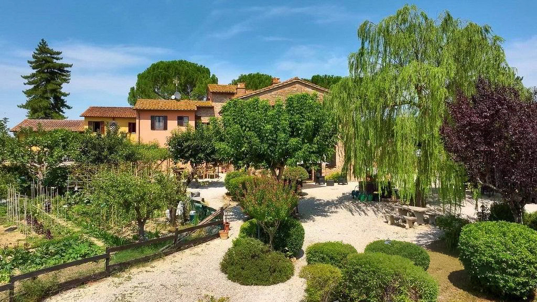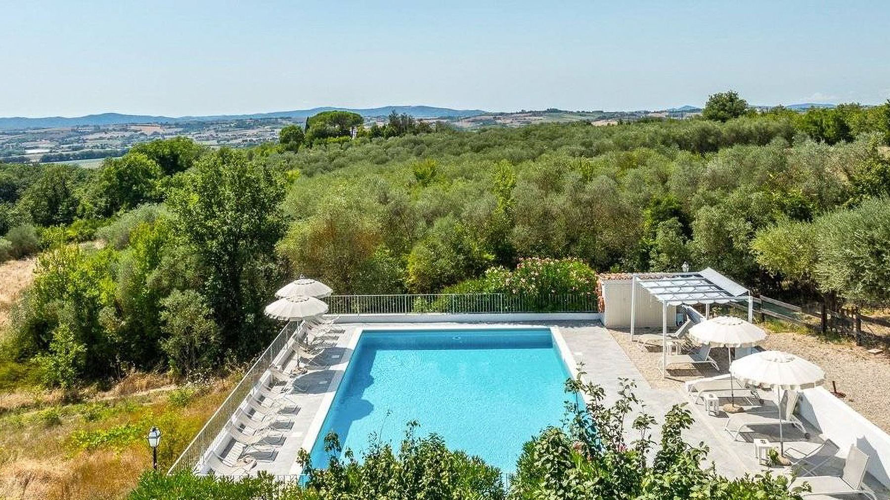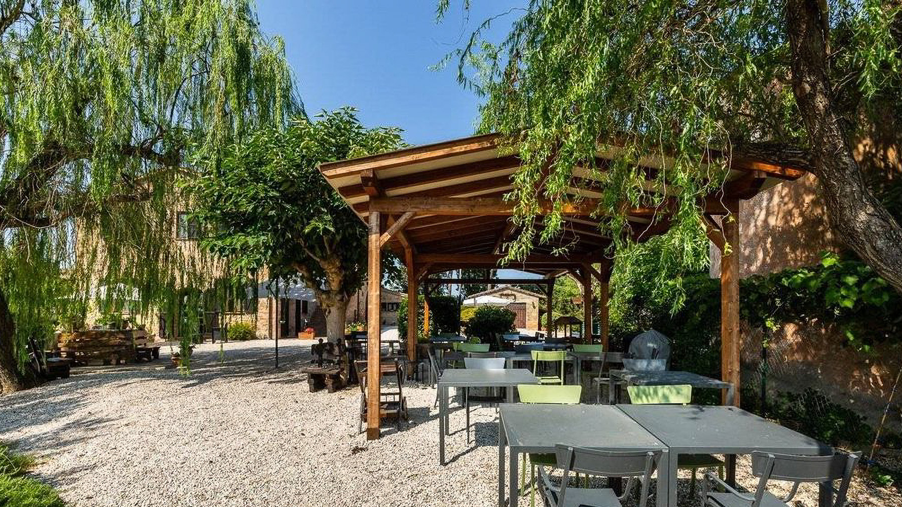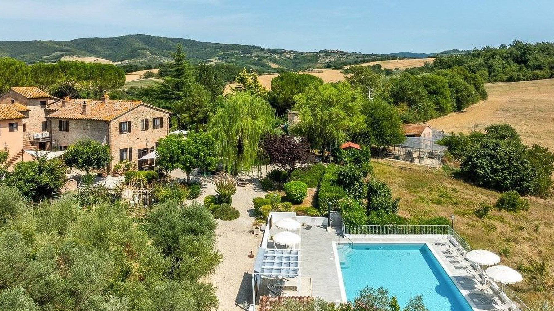 In the heart of Italy's verdant countryside, this enchanting property offers a sanctuary of peace and luxury. As you approach, the gentle rustling of leaves and the faint aroma of blooming flowers create a soothing symphony, inviting you to leave behind the hustle and bustle of daily life. Spanning an impressive 621 square meters, this rustic villa in Deruta, Perugia, captures the essence of Italian country living. With five spacious rooms and three elegantly designed bathrooms, it combines comfort with classic charm. The property boasts a private garden and a serene pool, set against a backdrop of open fields. The distinctive tiled roof and brick walls exude a timeless allure, while the outdoor seating areas under white umbrellas promise leisurely afternoons in nature's embrace. Here, life unfolds at a leisurely pace. Imagine days spent by the pool, surrounded by lush greenery, or evenings dining alfresco under a wooden canopy, the sky a canvas of stars. The serene countryside setting offers a lifestyle of tranquility, allowing you to reconnect with nature and yourself. This villa stands as a testament to the perfect blend of rustic charm and modern luxury—a rare find in the prestigious realm of luxury real estate.