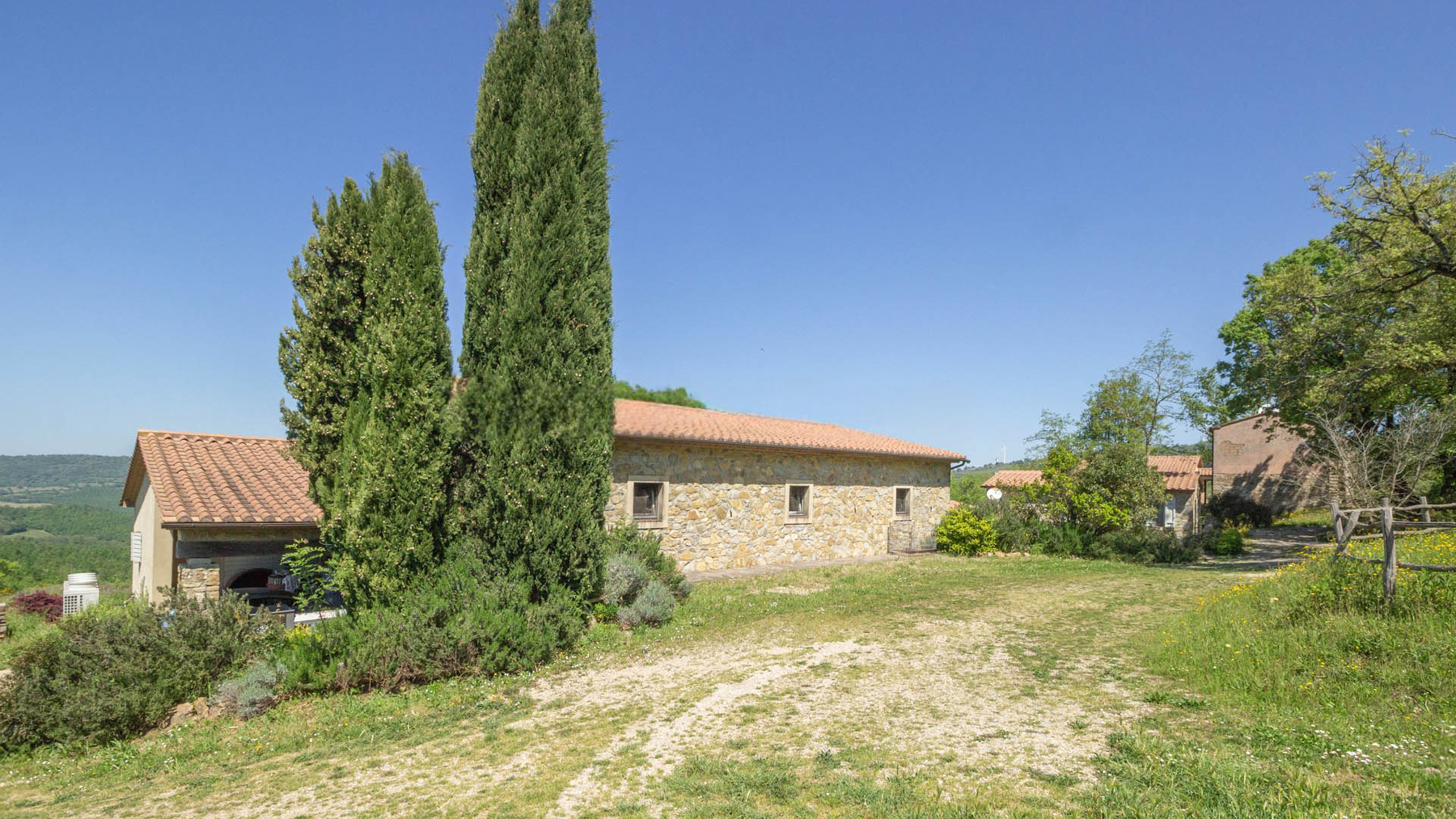 Amidst the rolling hills of Scansano in the picturesque region of Grosseto, this enchanting estate offers a secluded retreat where nature and luxury harmoniously coexist. Imagine waking to the gentle rustle of leaves and the refreshing scent of dew-kissed fields, as sunlight dances across the vibrant landscape. This property invites you to indulge your senses in a serene countryside setting where tranquility reigns supreme. Spanning an impressive 850 square meters, this estate encompasses 25 exquisite rooms and 7 elegantly appointed bathrooms. The property is a testament to rustic charm with its stone architecture and reddish-brown roofs, seamlessly blending into the lush greenery that surrounds it. A private garden offers an oasis of peace, perfect for moments of quiet reflection or lively gatherings with loved ones. The presence of wind turbines in the distance underscores a commitment to sustainable living without compromising on comfort or style. Living here means embracing a lifestyle of pastoral elegance and timeless beauty. Picture yourself strolling through fields dotted with wildflowers, or enjoying the panoramic views from your terrace as the sun sets over the hills. The essence of Italian countryside living is captured in every corner of this remarkable estate, promising unforgettable experiences and cherished memories. This property is a rare find in the luxury real estate market, offering a unique blend of rustic allure and modern convenience. It stands as a testament to refined living in the heart of Tuscany, where every moment is an invitation to savor life's simple pleasures in an extraordinary setting.