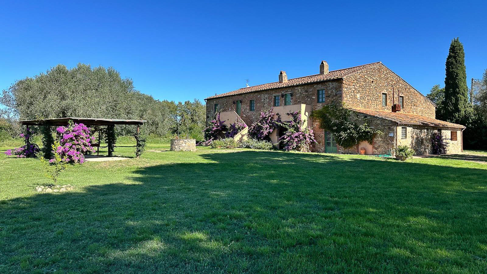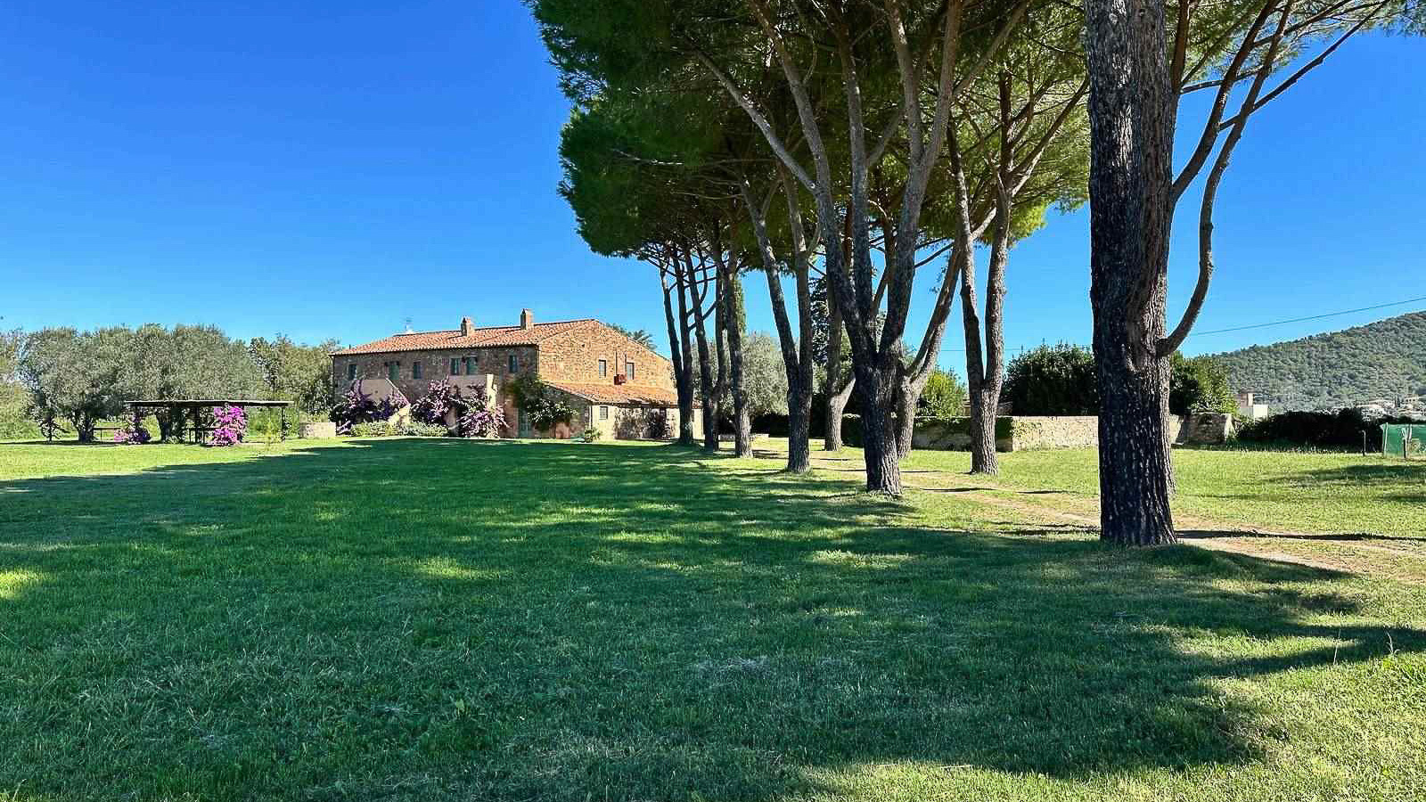 Tucked away in the enchanting countryside of Suvereto, Livorno, this remarkable stone house invites you into a world of serene beauty and refined luxury. Imagine the gentle rustle of leaves in the breeze, the vibrant colors of blooming purple flowers, and the warm glow of sunlight on the terracotta roof, crafting an atmosphere of pure tranquility. Set on a sprawling 1109 sqm, the property boasts 21 exquisitely designed rooms and 7 luxurious bathrooms, offering ample space for both relaxation and entertainment. A private garden blooms with life, embracing a serene gazebo and a sparkling pool, making it a perfect retreat. The charming arched openings and the pathway guiding you through the lush greenery create an inviting entrance, seamlessly blending elegance with nature. Living here means indulging in the simple pleasures of countryside life. Picture yourself sipping a morning coffee under the gazebo, surrounded by vibrant blossoms, or hosting intimate gatherings by the pool under a canopy of stars. This property offers a lifestyle of peace and rejuvenation, where every moment is a breath of fresh air. This exceptional residence is a true masterpiece, embodying the perfect blend of rustic charm and modern luxury. It stands as a rare jewel in the world of luxury real estate, promising an unparalleled living experience amidst the captivating landscape of the Italian countryside.