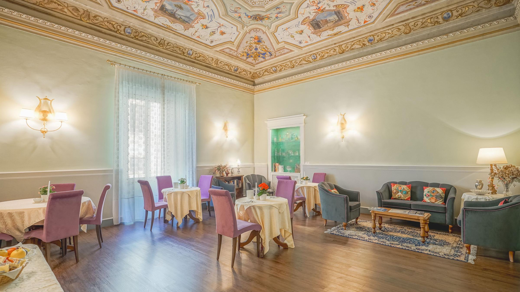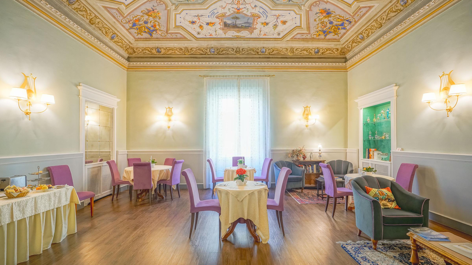 Imagine stepping into an oasis of elegance in the heart of Florence, where every corner whispers stories of refined luxury and timeless charm. As you enter, the soft glow of ambient lighting and the gentle hum of city life create a seamless blend of tranquility and vibrancy, inviting you to indulge your senses in an atmosphere of sophisticated serenity. Spanning an impressive 402 square meters, this exquisite property offers a harmonious blend of space and style. With twelve beautifully appointed rooms and six luxurious bathrooms, it is designed to cater to the most discerning tastes. The interior is adorned with distinctive features, such as ornately decorated ceilings, muted purple upholstery, and elegantly set tables. A private garden offers a serene retreat, perfect for moments of reflection or intimate gatherings. Located in the heart of Florence, this residence epitomizes city living with an air of exclusivity and refinement. Living here is an experience like no other. Picture yourself hosting soirées in the elegantly decorated dining area, where the soft light from wall sconces casts a warm glow over conversations that linger into the night. Every day brings the promise of new memories, whether you're enjoying a quiet morning with a book from the corner bookshelf or savoring a leisurely afternoon in the private garden, surrounded by the rich tapestry of Florentine life. This property is more than a home; it is a testament to timeless elegance and modern luxury—a unique treasure in the heart of the city, offering an unparalleled lifestyle for those who seek the extraordinary.
