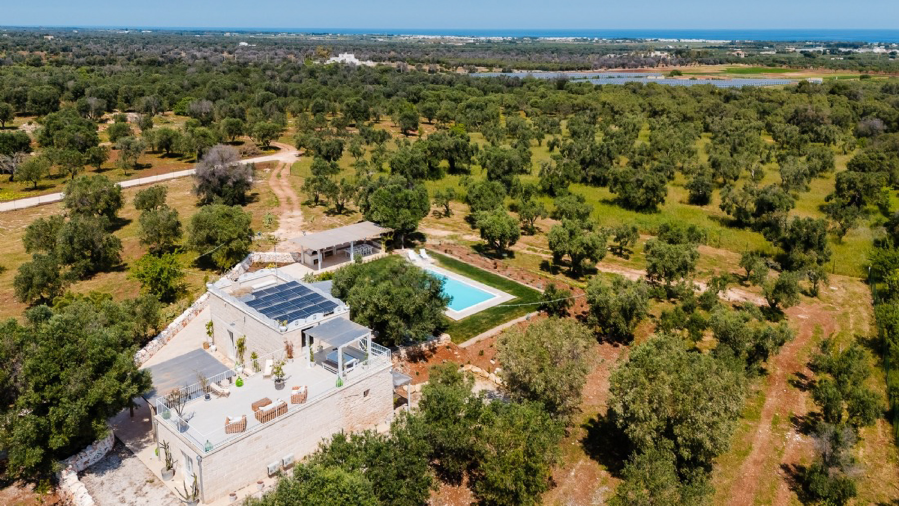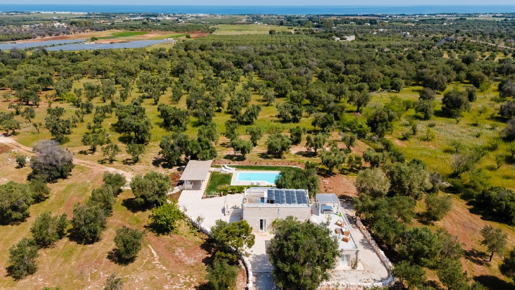 In the idyllic landscapes of Carovigno, Brindisi, lies a modern sanctuary where luxury meets tranquility. Surrounded by the gentle rustle of olive trees and bathed in sunlight, this property offers a serene escape from the everyday hustle. Imagine waking up to the soft glow of morning light streaming through large windows, with the peaceful countryside as your backdrop. This exquisite 170 square meter residence boasts eight spacious rooms, including four elegant bathrooms. A private pool glimmers invitingly in the sun, while a charming terrace offers breathtaking views of the surrounding greenery. The property is a true embodiment of rural elegance, perfectly situated in the picturesque Italian countryside. Living here means embracing a lifestyle filled with leisurely afternoons by the pool and cozy evenings in a living space adorned with stone walls and warm lighting. The home’s inviting atmosphere is perfect for intimate gatherings or simply enjoying the quiet beauty of the countryside. This residence is a rare find in the luxury real estate market, a harmonious blend of modern design and natural beauty that promises an unparalleled living experience.