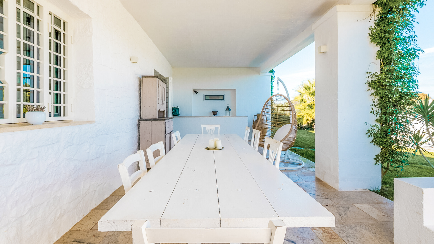 In the heart of a verdant oasis, this exquisite modern residence emerges like a serene retreat, surrounded by a symphony of nature's finest elements. The gentle rustle of leaves and the soothing sound of water from the sparkling pool beckon you to unwind and savor the tranquility of this sanctuary. Spanning an impressive 350 square meters, this luxurious abode boasts 13 elegantly appointed rooms and 5 sumptuous bathrooms. The house’s sleek white exterior, partially adorned with lush green ivy, harmonizes perfectly with its surroundings. A private garden and pool enhance the allure of this property, offering an idyllic escape. Located in the enchanting region of Ostuni, Provincia di Brindisi, this home embodies the quintessential coastal lifestyle, where the azure sea meets the sky. Imagine mornings spent basking in the warmth of the Italian sun by your private pool, surrounded by the scent of blooming flowers and the gentle breeze from the olive trees. Evenings transform into magical experiences as you dine alfresco under the stars, with the serene landscape as your backdrop. This property epitomizes a harmonious blend of modern luxury and natural beauty, offering a rare opportunity for those seeking an extraordinary lifestyle. A true jewel in the world of luxury real estate, it promises an unparalleled living experience.