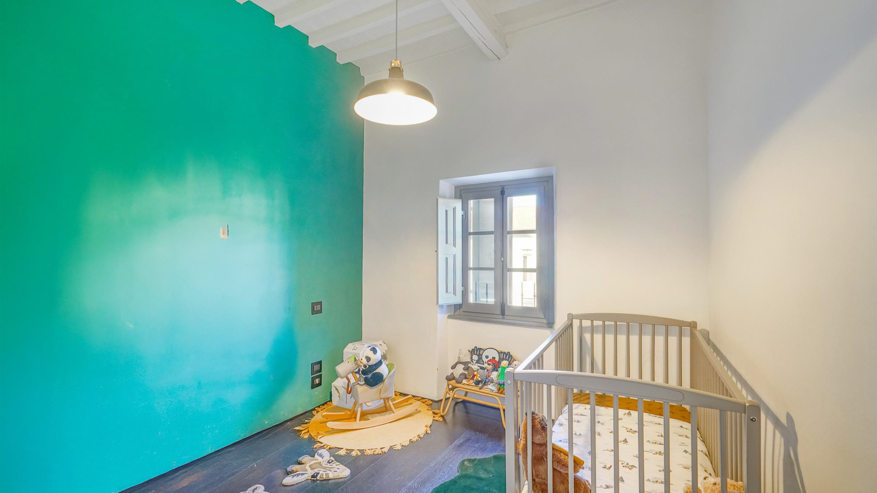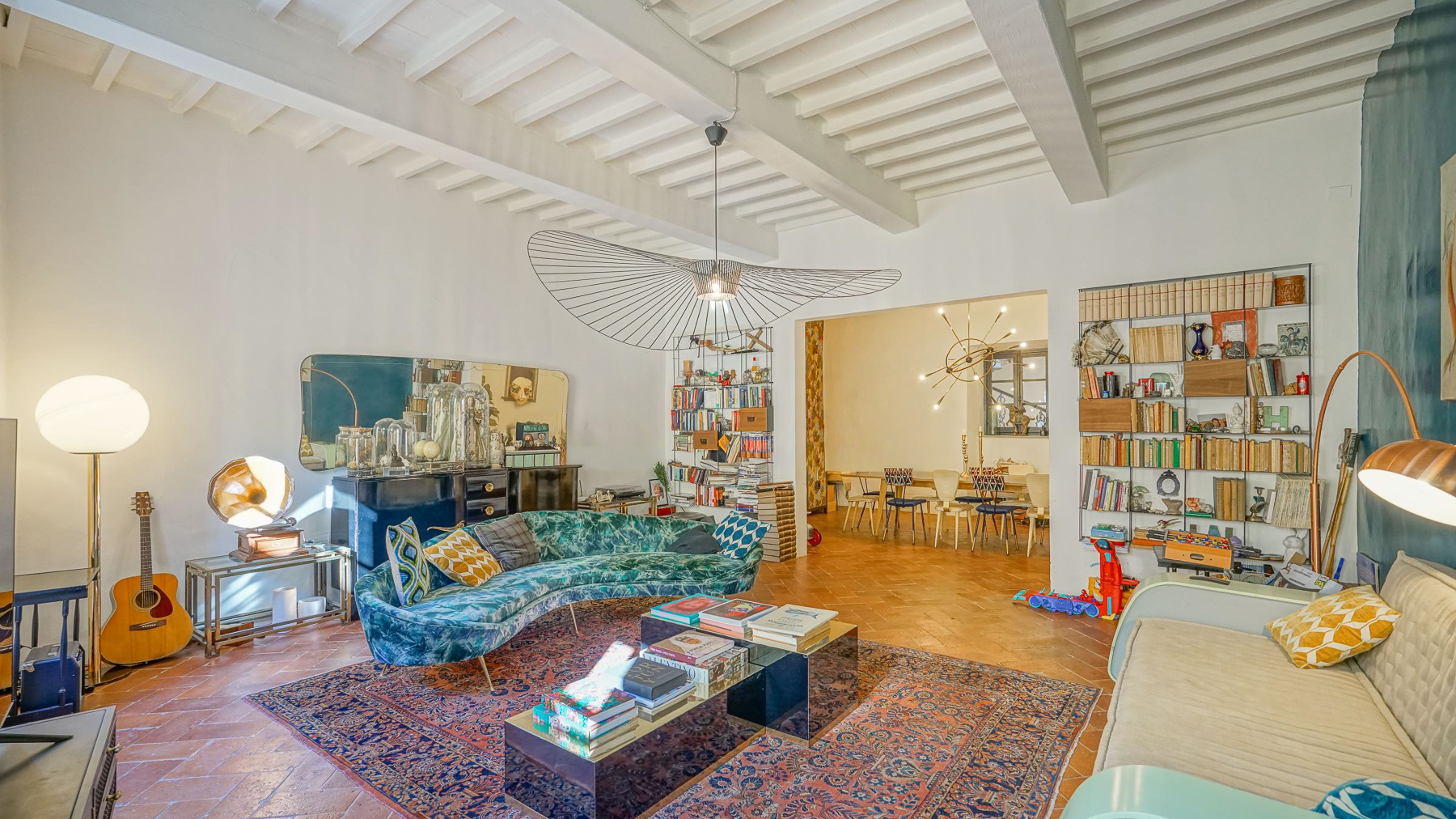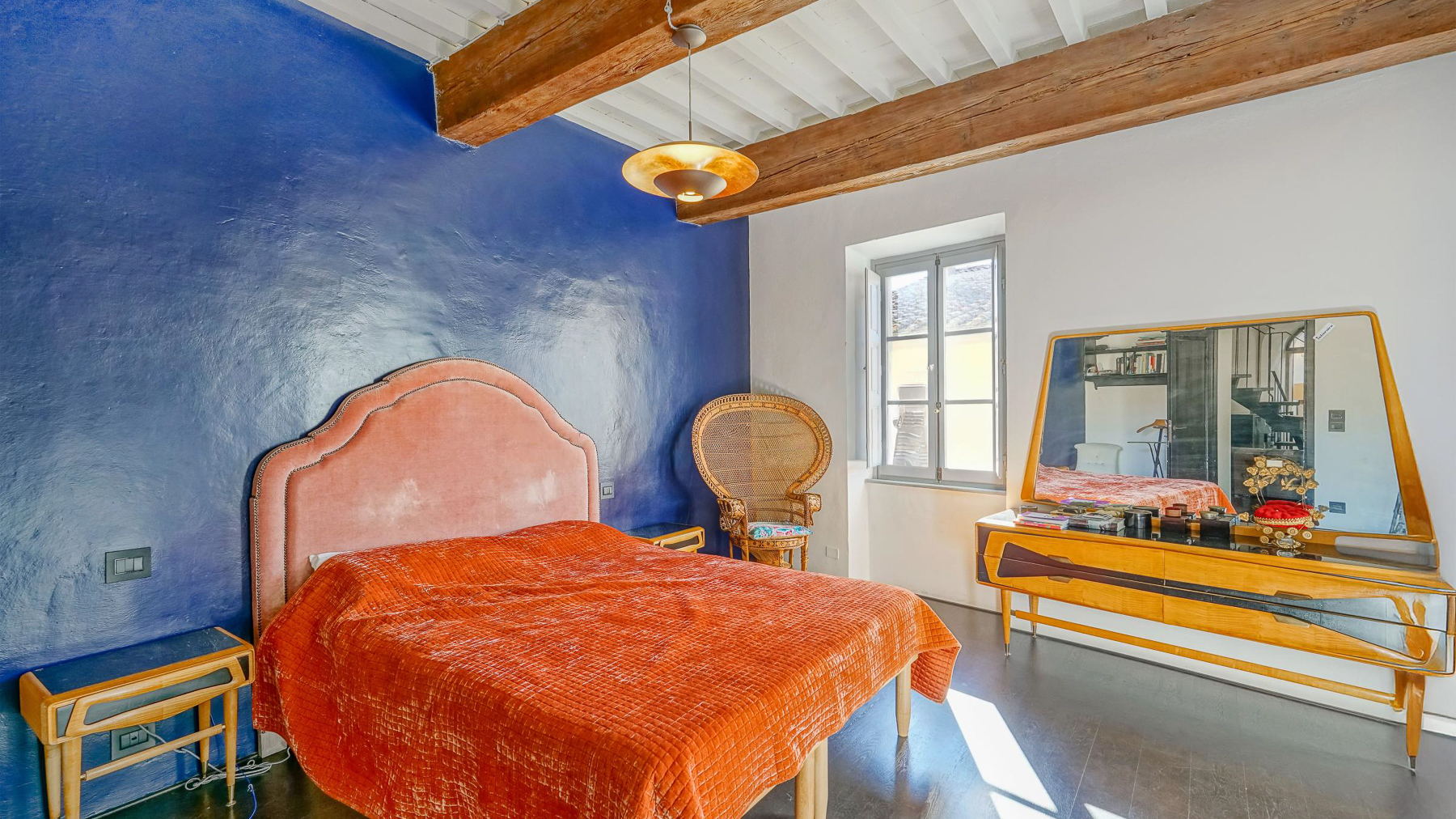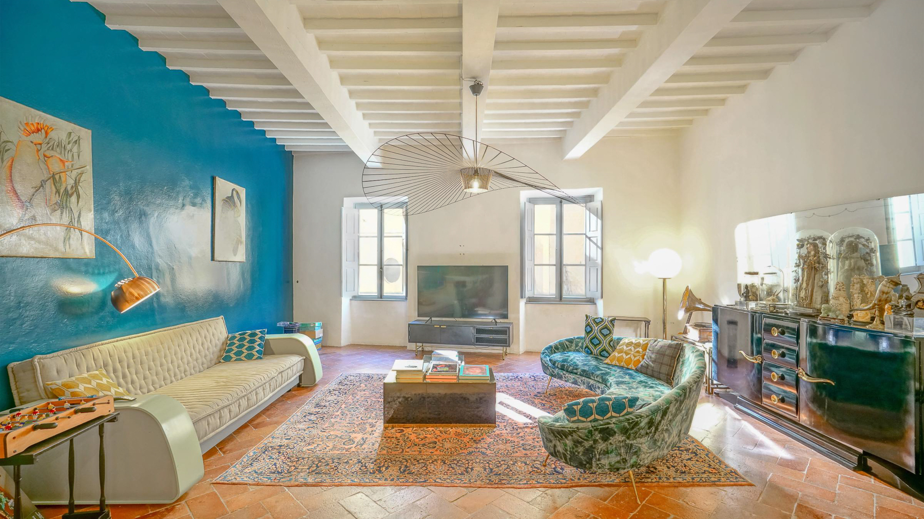Tucked away in the vibrant heart of Arezzo, this exquisite residence is a sanctuary of style and sophistication. Imagine stepping into a world where modern elegance meets vintage charm, bathed in natural light streaming through open shutters. The soothing blue walls, exposed beams, and unique light fixtures create a captivating atmosphere, inviting you to unwind and indulge your senses. Spanning a generous 340 square meters, this luxurious property boasts seven beautifully appointed rooms and five stylish bathrooms. Each room is a masterpiece, thoughtfully designed to blend contemporary flair with timeless allure. The spacious interiors flow seamlessly into a private garden and a stunning terrace, perfect for hosting gatherings or savoring quiet moments of solitude. Located in the bustling city life of Arezzo, this property offers a unique blend of urban convenience and serene living. Picture yourself lounging in the chic living room, surrounded by a harmonious mix of modern and vintage decor. The plush sofas and vibrant artwork set the stage for delightful conversations, while the patterned rug adds warmth and character. Step outside to the terrace, where the cityscape unfolds before you, offering breathtaking views and the promise of unforgettable alfresco dinners under the stars. This extraordinary dwelling epitomizes the pinnacle of luxury living. It's a rare jewel that perfectly combines contemporary design with timeless sophistication—a true testament to elegance and comfort in the heart of Arezzo.