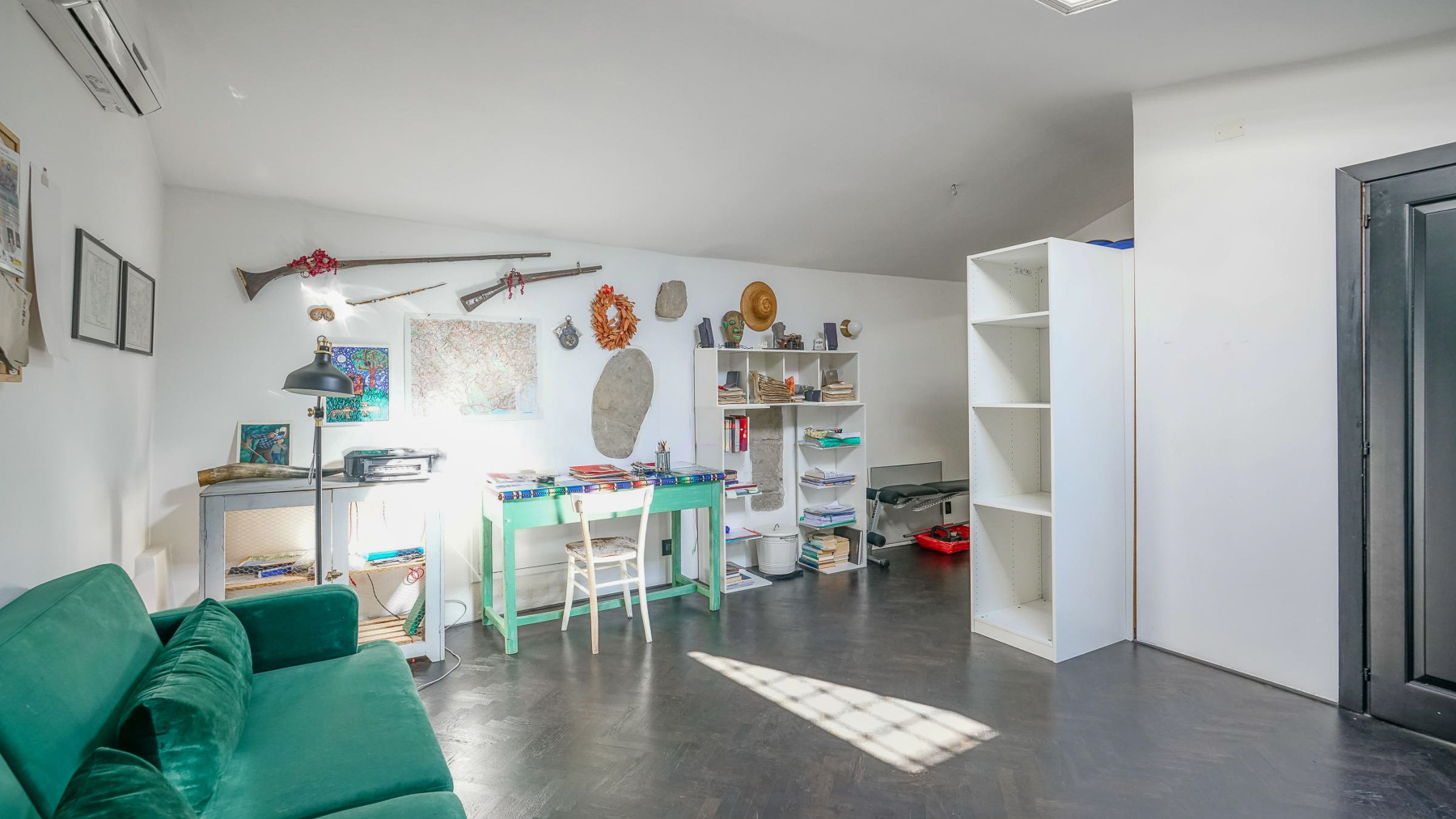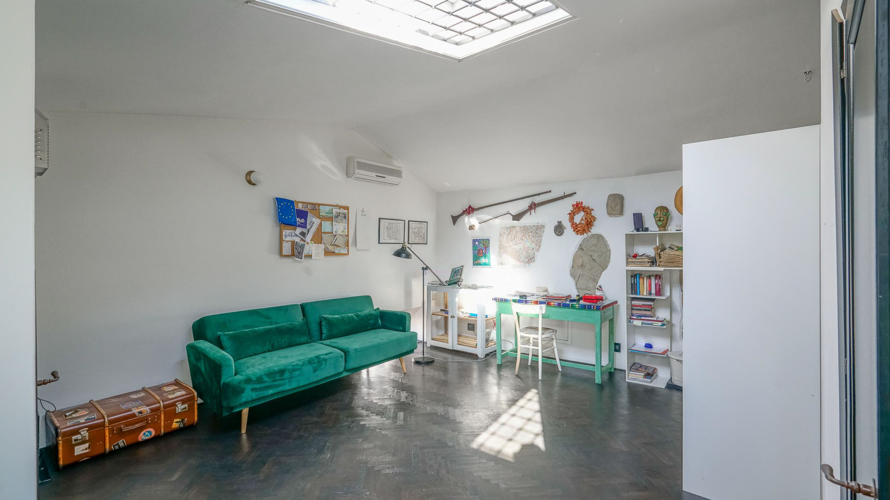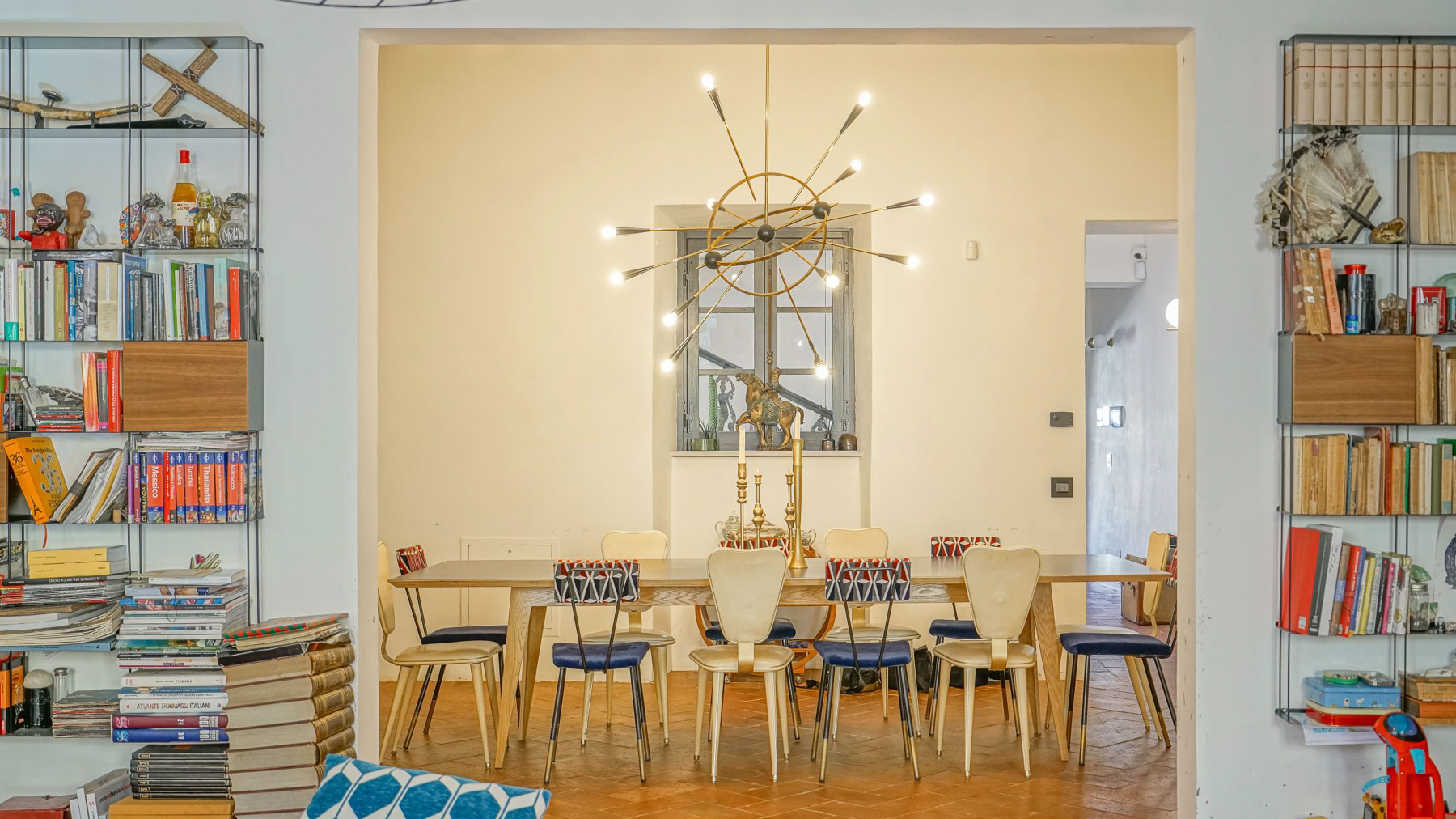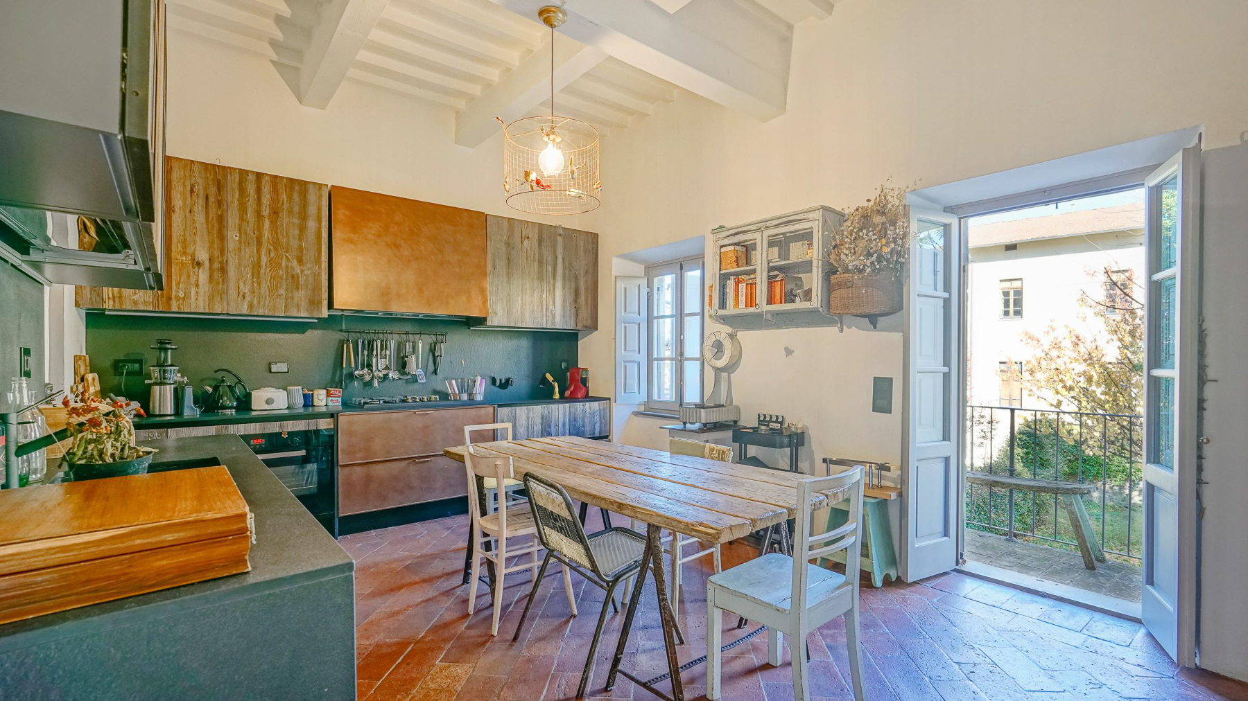Tucked away in the vibrant heart of Arezzo, this exquisite residence is a sanctuary of style and sophistication. Imagine stepping into a world where modern elegance meets vintage charm, bathed in natural light streaming through open shutters. The soothing blue walls, exposed beams, and unique light fixtures create a captivating atmosphere, inviting you to unwind and indulge your senses. Spanning a generous 340 square meters, this luxurious property boasts seven beautifully appointed rooms and five stylish bathrooms. Each room is a masterpiece, thoughtfully designed to blend contemporary flair with timeless allure. The spacious interiors flow seamlessly into a private garden and a stunning terrace, perfect for hosting gatherings or savoring quiet moments of solitude. Located in the bustling city life of Arezzo, this property offers a unique blend of urban convenience and serene living. Picture yourself lounging in the chic living room, surrounded by a harmonious mix of modern and vintage decor. The plush sofas and vibrant artwork set the stage for delightful conversations, while the patterned rug adds warmth and character. Step outside to the terrace, where the cityscape unfolds before you, offering breathtaking views and the promise of unforgettable alfresco dinners under the stars. This extraordinary dwelling epitomizes the pinnacle of luxury living. It's a rare jewel that perfectly combines contemporary design with timeless sophistication—a true testament to elegance and comfort in the heart of Arezzo.