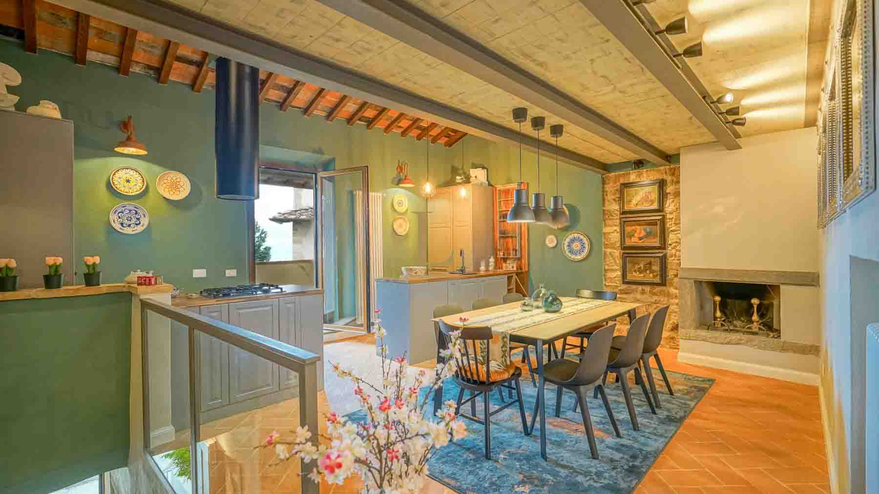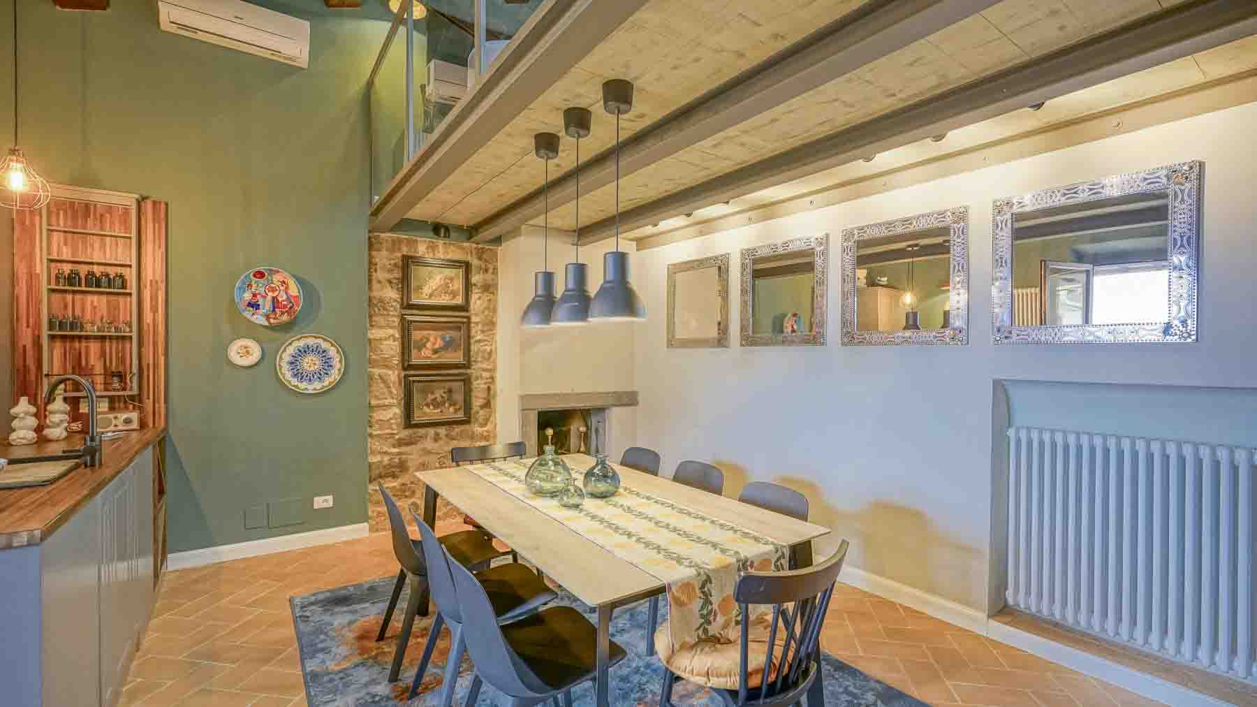 Envision stepping into a sanctuary of modern elegance, where the gentle glow of pendant lights reflects off sleek surfaces, and the soft crackling of the fireplace invites you to unwind. This exquisite property, bathed in natural light from expansive windows, promises a serene retreat amidst the vibrant energy of Florence. Spanning an impressive 160 square meters, this luxurious city residence boasts seven spacious rooms and three elegantly designed bathrooms. Its harmonious blend of contemporary and rustic design elements is accentuated by a striking green accent wall adorned with decorative plates. A well-appointed kitchen, complete with modern cabinetry and a gas stove, flows seamlessly into a dining area designed for memorable gatherings. The property's lush terrace offers a private escape to enjoy the Florentine atmosphere in style. Living here is an experience of unparalleled sophistication. Visualize entertaining guests in a space that exudes warmth and charm, with every detail meticulously curated to enhance comfort and style. Picture yourself savoring a quiet morning coffee by the fireplace or hosting lively dinners against the backdrop of breathtaking city views. This residence stands as a testament to refined living, a pinnacle of luxury that captures the essence of Florence's timeless allure. It is a unique opportunity to own a piece of elegance in one of the world's most desired locations.