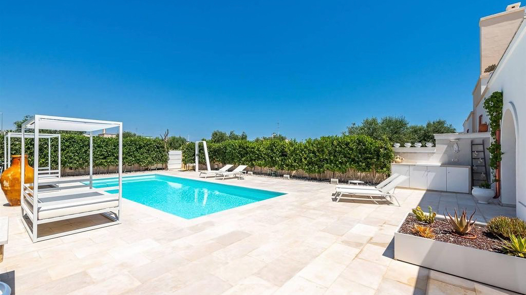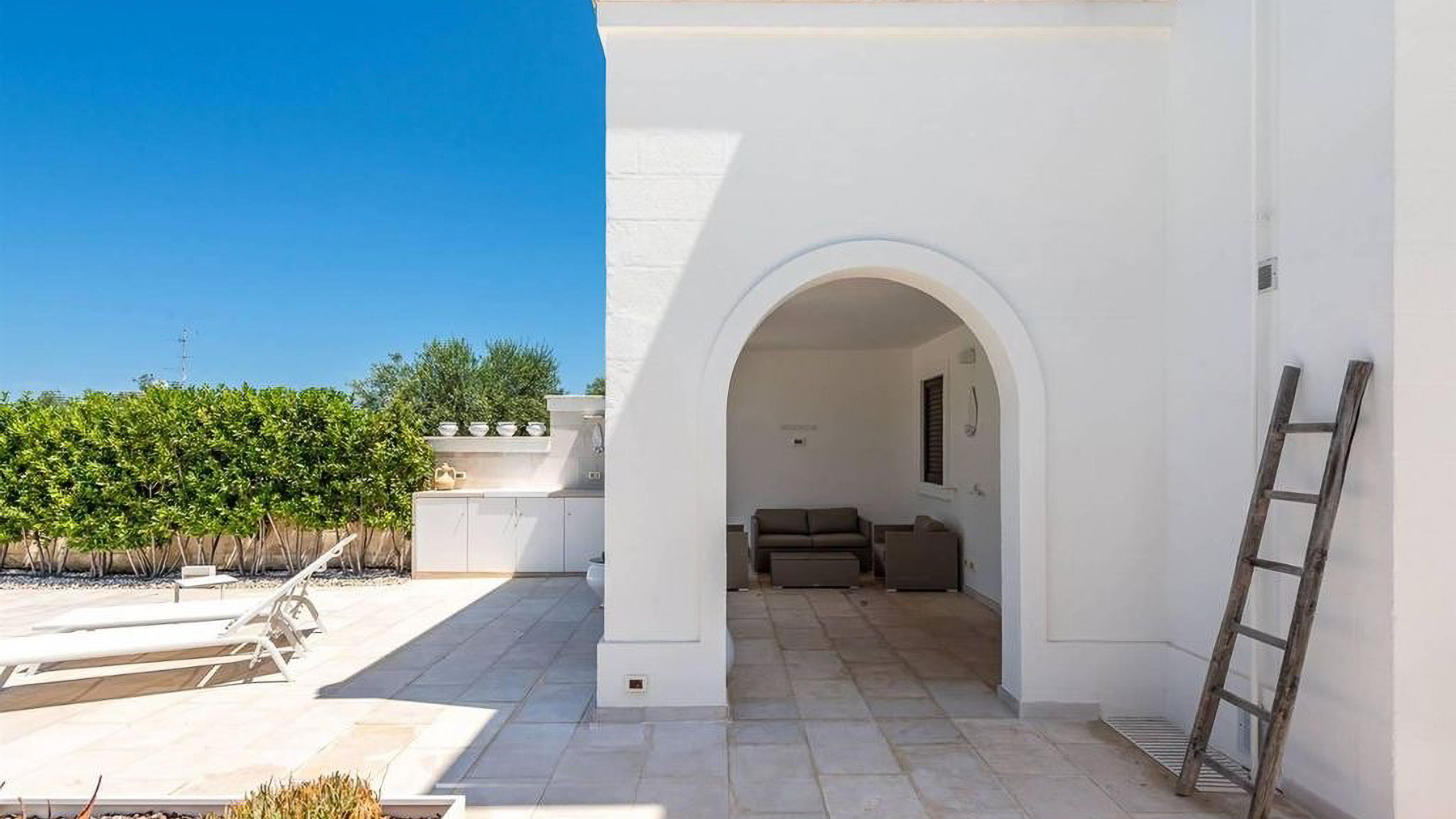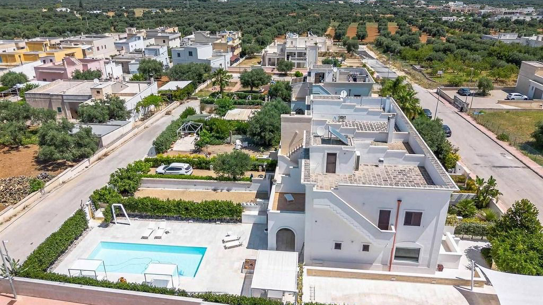 In the serene embrace of a verdant landscape, this exquisite property offers a sanctuary of elegance and comfort. The gentle rustle of leaves in the breeze and the soothing sight of a sparkling pool create a tranquil ambiance that envelops you in peace. Spanning 155 square meters, this luxurious home in Fasano, Brindisi boasts five well-appointed rooms and three stylish bathrooms. The property features a private garden and a shimmering pool, perfect for relaxation and leisure. A spacious terrace provides a delightful space to enjoy the surrounding picturesque views. Located in the heart of the countryside, this residence combines the charm of rural living with modern sophistication. Imagine waking up to the gentle light filtering through large windows, filling the minimalistic bedroom with warmth. Spend your days lounging by the pool or wandering through the meticulously landscaped garden. As evening falls, the terrace becomes an inviting retreat for alfresco dining under the stars, offering a serene escape from the world. This property is a testament to refined living, offering a unique blend of tranquility and luxury that is a true rarity in the real estate market.