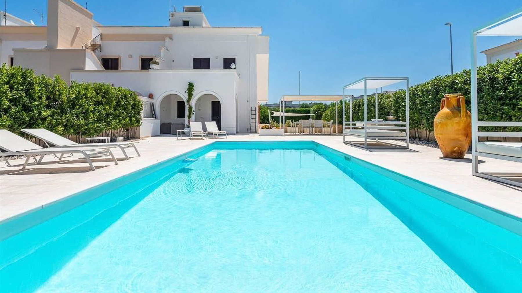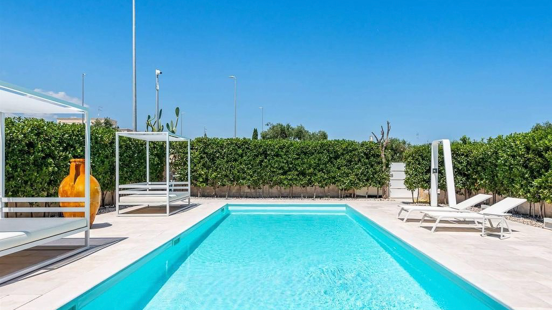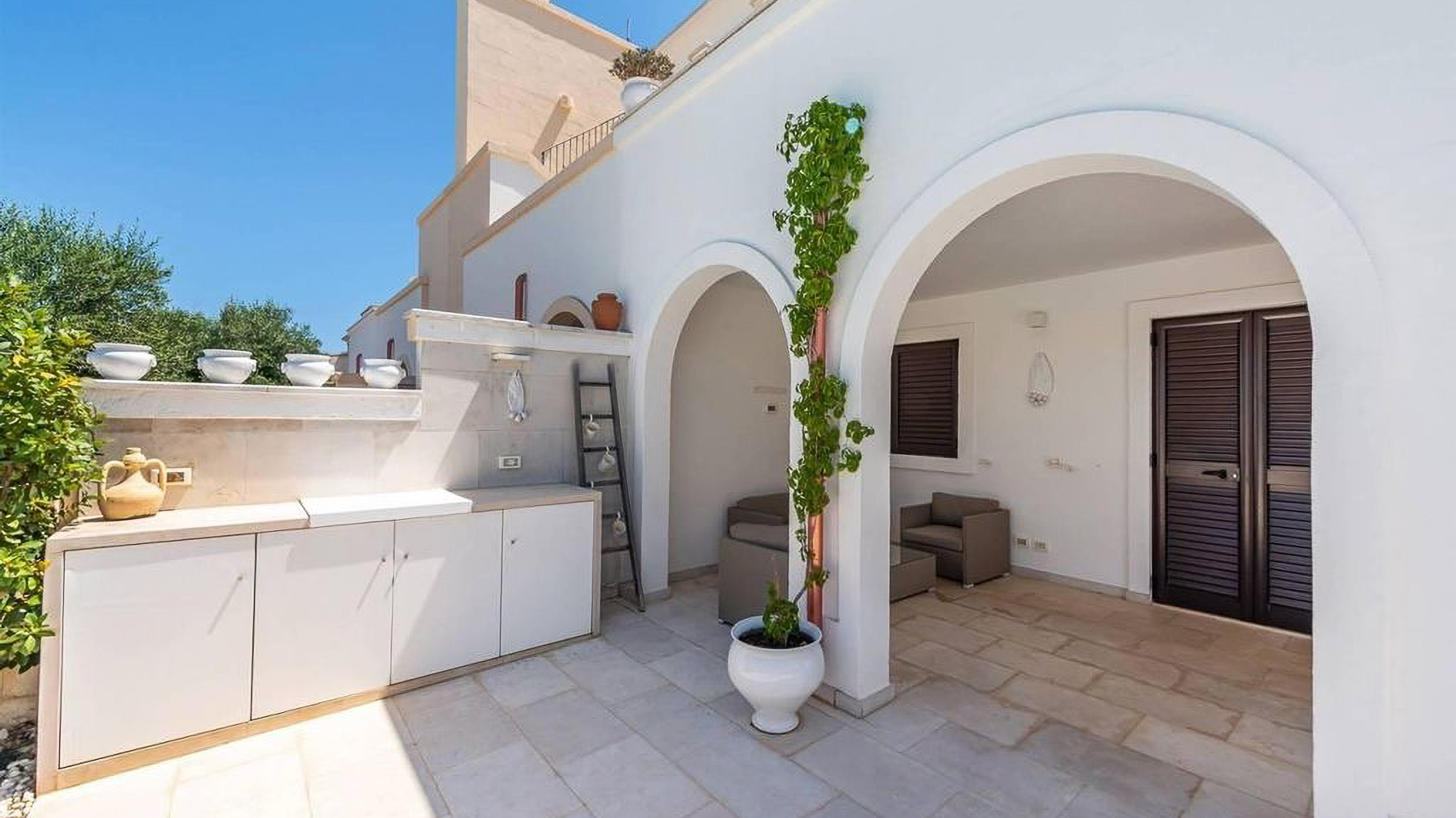 In the serene embrace of a verdant landscape, this exquisite property offers a sanctuary of elegance and comfort. The gentle rustle of leaves in the breeze and the soothing sight of a sparkling pool create a tranquil ambiance that envelops you in peace. Spanning 155 square meters, this luxurious home in Fasano, Brindisi boasts five well-appointed rooms and three stylish bathrooms. The property features a private garden and a shimmering pool, perfect for relaxation and leisure. A spacious terrace provides a delightful space to enjoy the surrounding picturesque views. Located in the heart of the countryside, this residence combines the charm of rural living with modern sophistication. Imagine waking up to the gentle light filtering through large windows, filling the minimalistic bedroom with warmth. Spend your days lounging by the pool or wandering through the meticulously landscaped garden. As evening falls, the terrace becomes an inviting retreat for alfresco dining under the stars, offering a serene escape from the world. This property is a testament to refined living, offering a unique blend of tranquility and luxury that is a true rarity in the real estate market.