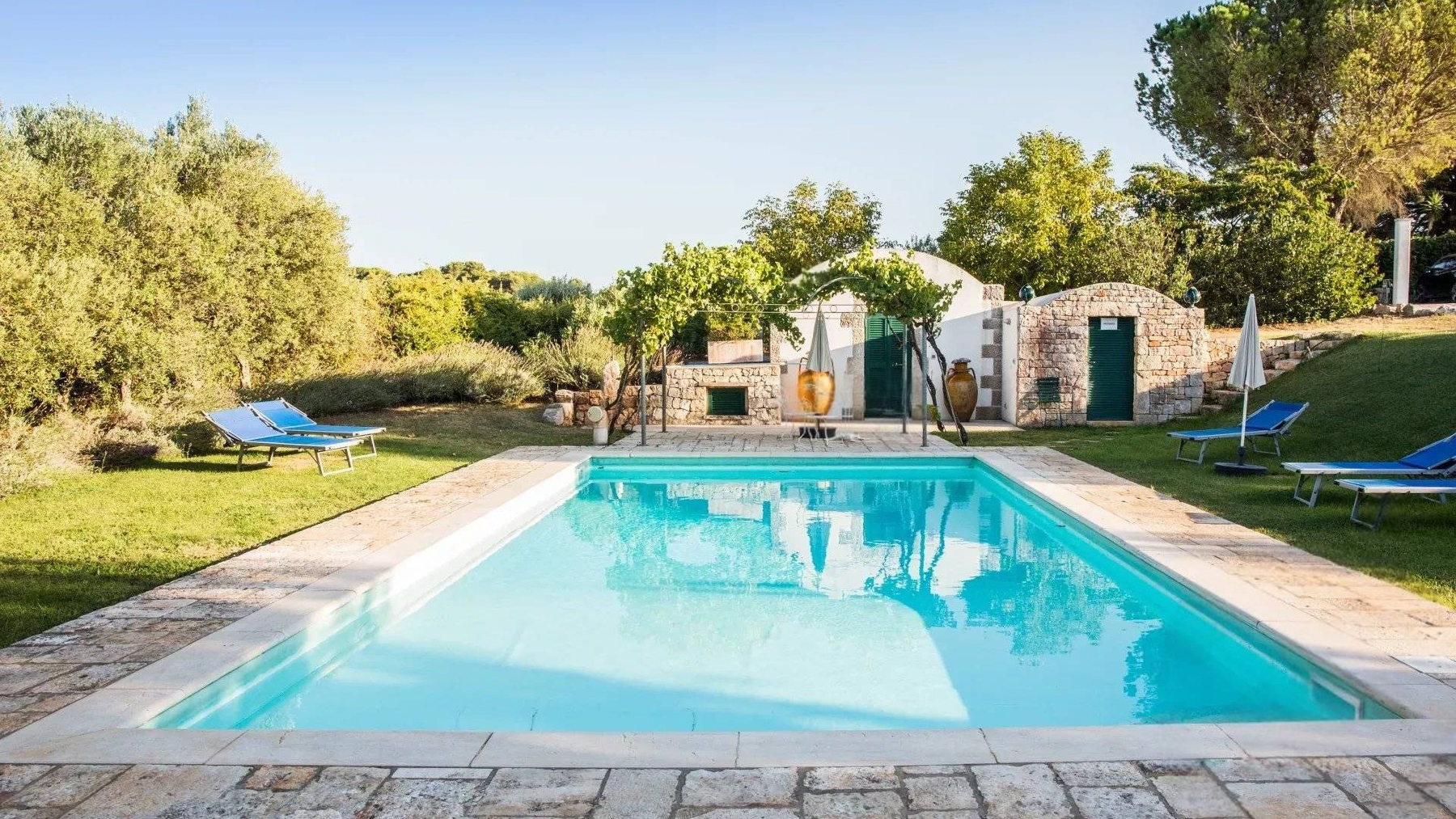 Tucked away in the tranquil embrace of the Italian countryside, this exquisite property offers a sanctuary of serenity and sophistication. Imagine the gentle rustle of leaves and the inviting sparkle of a sun-kissed pool, all set against the backdrop of a lush, green landscape in the heart of Ostuni, Brindisi. Here, every moment is a retreat from the ordinary. Spanning 180 square meters, this luxurious estate boasts eight spacious rooms and three elegantly appointed bathrooms, offering ample space for relaxation and entertainment. The property is a masterpiece of modern comfort blended seamlessly with rustic charm, featuring a private garden and an alluring swimming pool that beckons you to unwind. The small structure by the pool, whether serving as a changing area or a cozy retreat, adds to the allure of outdoor living. This is a place where lifestyle meets elegance, set in the picturesque Campagna. Living here means embracing a lifestyle of unparalleled beauty and peace. Picture yourself lounging by the pool, with the sun's warmth enveloping you, or retreating to the cozy bedroom adorned with a vibrant quilt and inviting decor. Whether it's a lazy afternoon spent under the sun or a serene night in, this property offers experiences that enrich the soul and invigorate the senses. This estate is more than just a home; it is a testament to timeless luxury and exclusivity. A rare find in the thriving luxury real estate market, it promises a life of elegance and tranquility, where every day feels like a cherished escape.