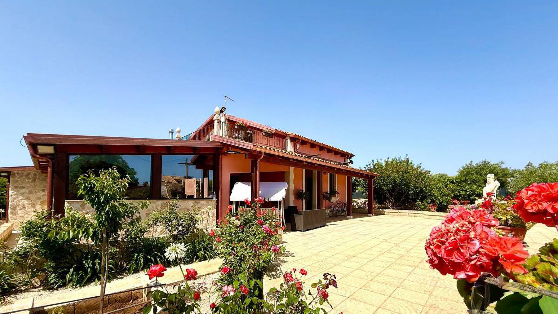 Tucked away in the idyllic setting of Avola, this enchanting residence invites you into a world of rustic charm and refined elegance. Imagine the gentle rustle of leaves from the surrounding trees and the sweet scent of roses wafting through the air as sunlight dances across the red-tiled roof and gardens. This home is a serene escape where every corner whispers tranquility and beauty. Spanning an impressive 2330 square meters, this property boasts eight spacious rooms and three luxurious bathrooms. The harmonious blend of stone and painted walls, complemented by wooden beams, creates a timeless aesthetic. Large windows offer sweeping views of the private garden, while the inviting patio and terrace beckon for leisurely afternoons and social gatherings. Situated in Avola within the Libero consorzio comunale di Siracusa, this home perfectly embodies the coastal lifestyle, providing a peaceful retreat just moments from the sea. Life in this exquisite home is a sensory delight. Picture yourself savoring sun-drenched mornings in the garden, surrounded by vibrant blooms, or enjoying intimate dinners on the terrace as the sun sets over the horizon. The beautifully appointed interior, with its elegant decor and warm ambiance, offers a perfect setting for creating cherished memories with family and friends. This property is a testament to the seamless blend of traditional charm and modern luxury—a rare find in the world of high-end real estate. Experience the allure and prestige of owning a piece of paradise, where every day is an invitation to indulge in life's finest pleasures.