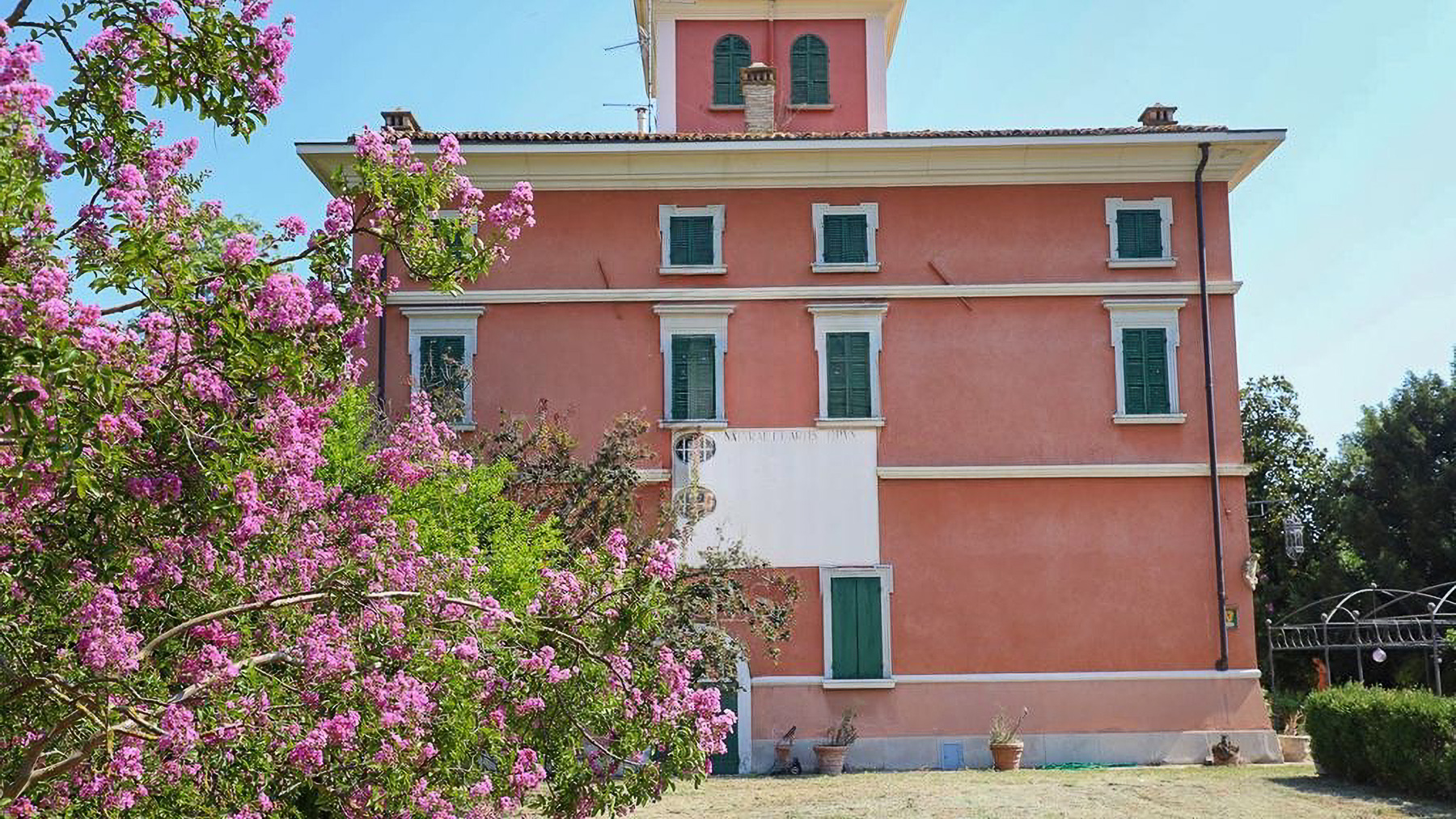 Amidst the captivating beauty of Campello sul Clitunno, this exquisite property stands as a beacon of elegance and charm. The peach-hued facade, adorned with verdant green shutters, is complemented by the vibrant blooming flowers that surround it, creating a picturesque scene against the clear blue sky. The gentle rustle of leaves and the scent of garden blossoms fill the air, crafting an enchanting ambiance that captivates the senses. Spanning an impressive 1170 square meters, this multi-story residence is a masterpiece of architectural symmetry and design. With ten spacious rooms and four luxurious bathrooms, it offers an abundance of space for comfort and opulence. The property boasts distinctive features that enhance its allure, though they remain to be detailed. Located in the serene countryside of Perugia, this home offers a harmonious blend of rural tranquility and refined living. Life in this splendid home is a tapestry of serene experiences and cherished moments. Picture mornings bathed in sunlight as you sip espresso on the balcony, and evenings filled with laughter and the fragrance of blooming flowers in the garden. The idyllic setting invites you to savor each day, surrounded by nature's beauty and the timeless elegance of this remarkable abode. This property is a true testament to luxury living, offering a unique opportunity to own a slice of Italian paradise. It is more than just a home