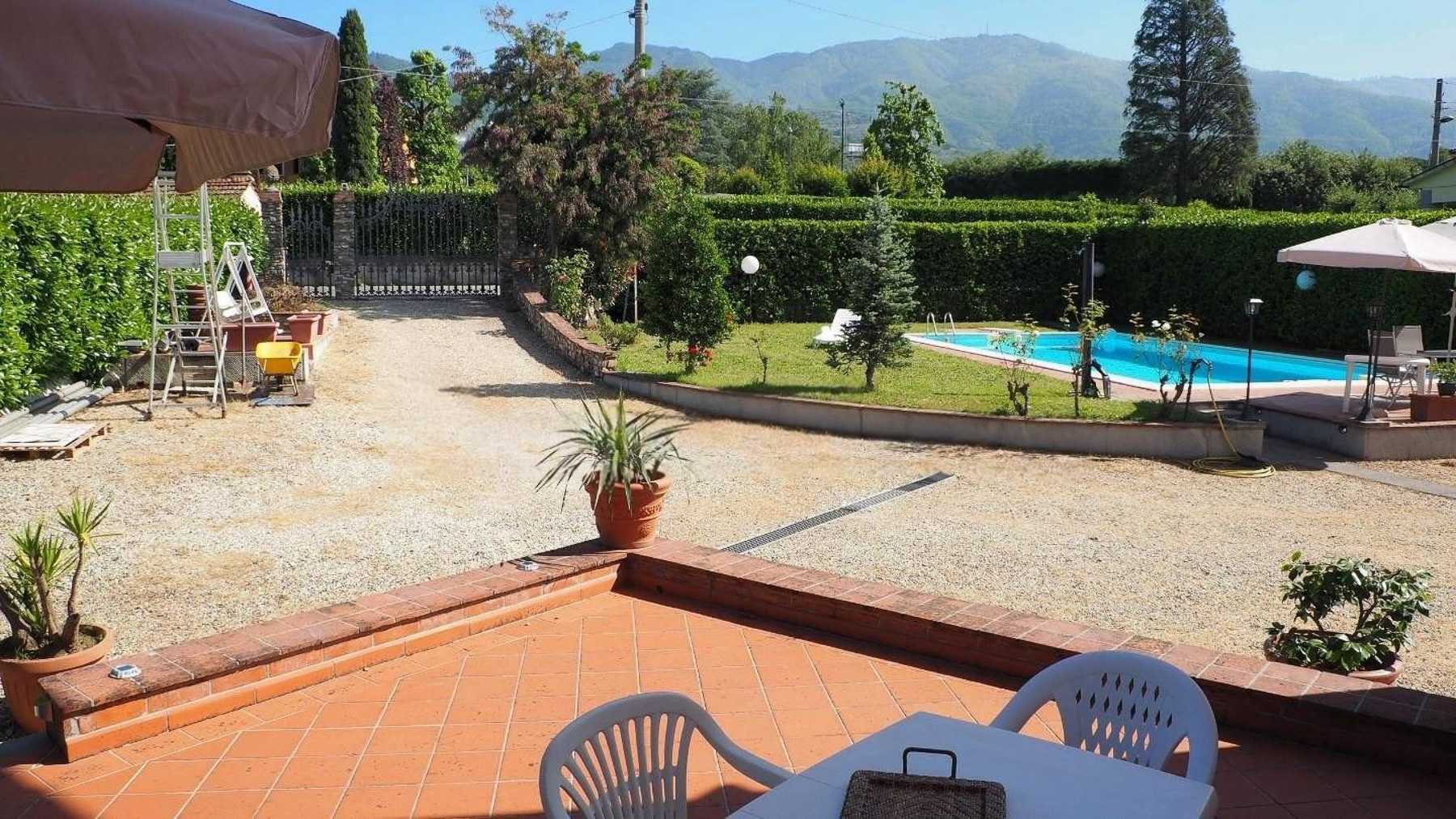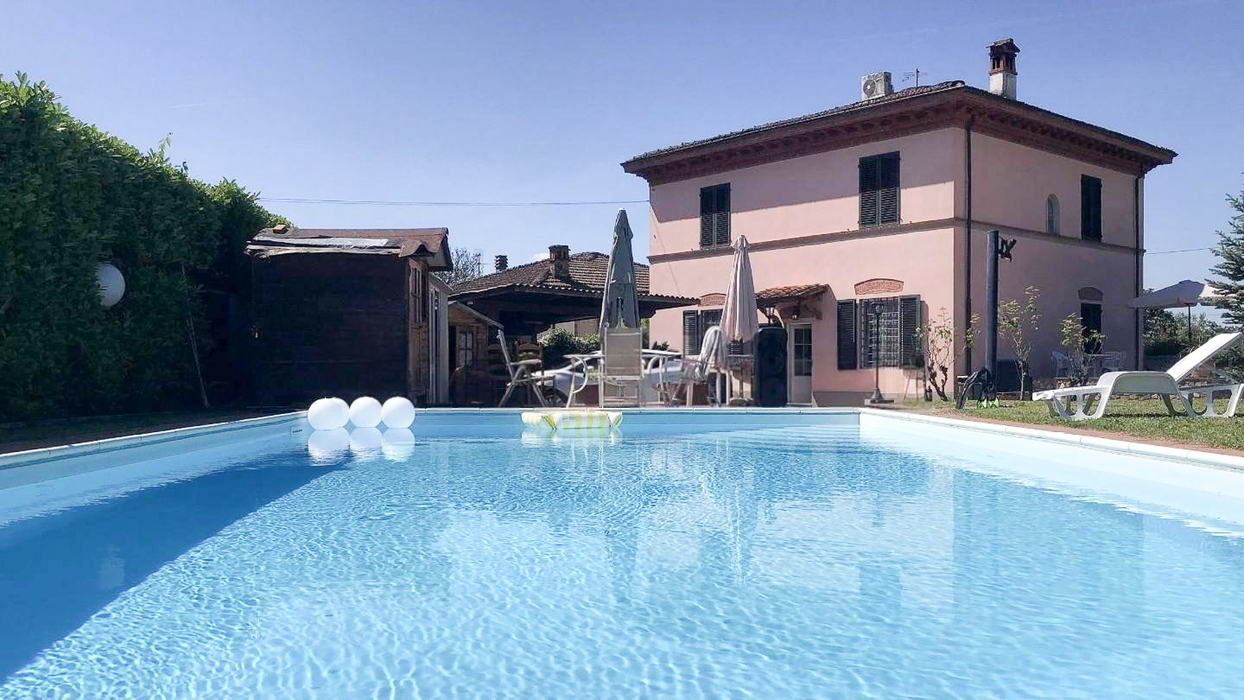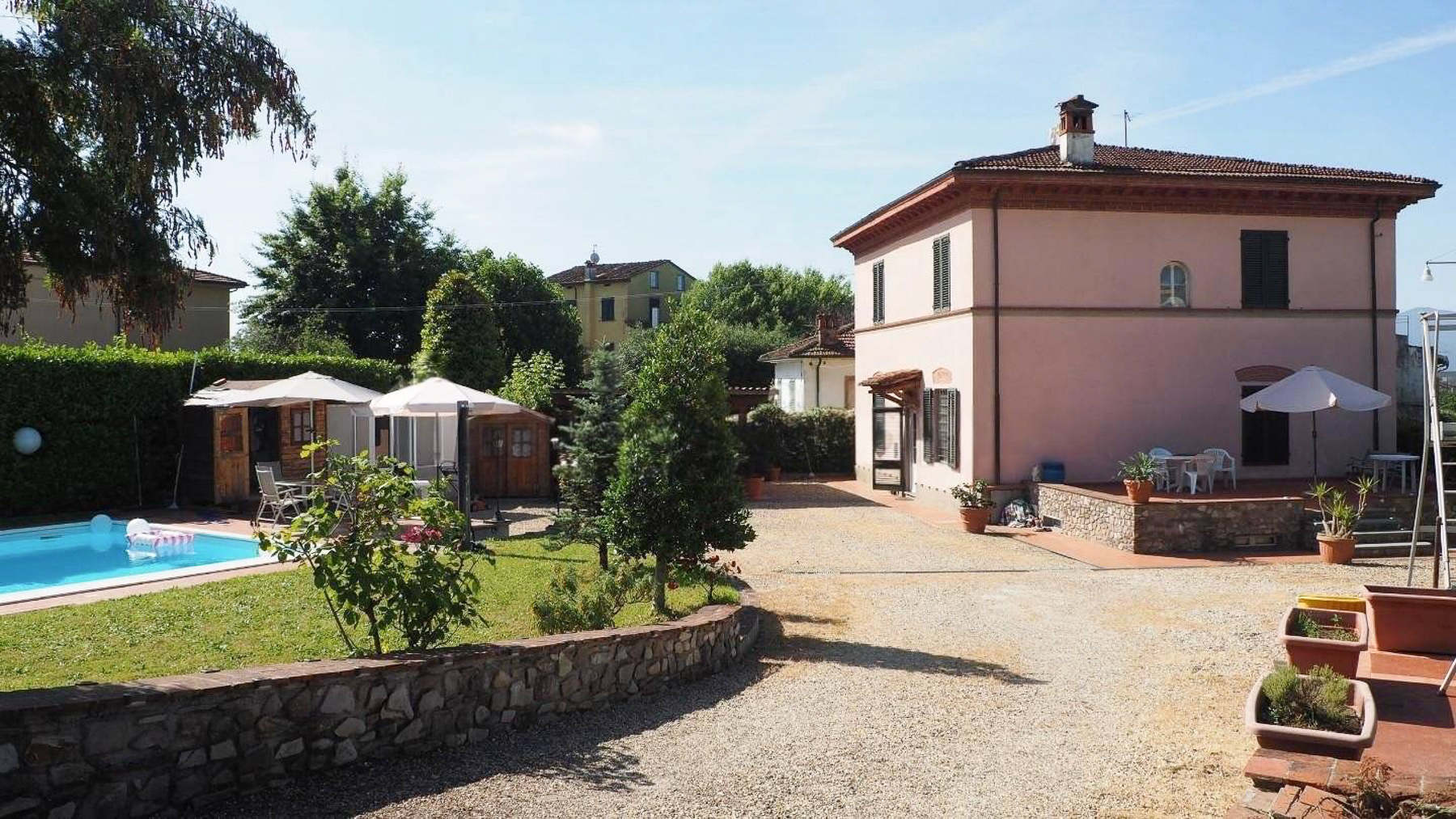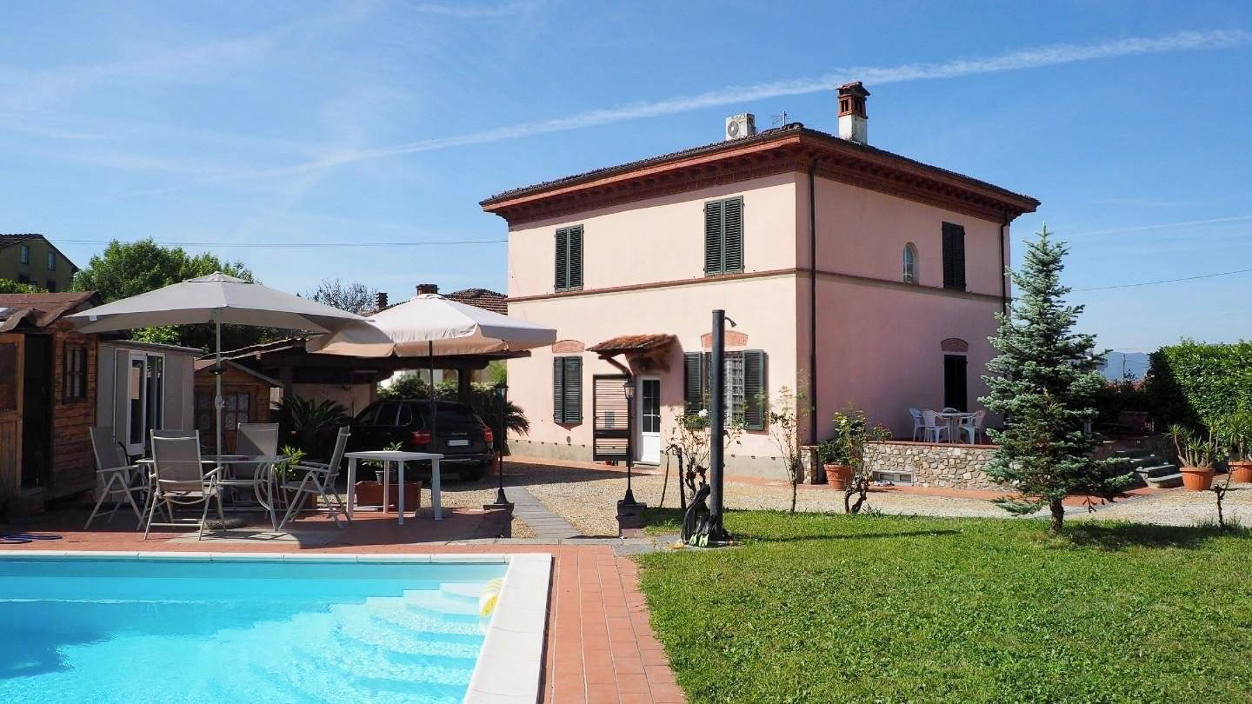 Cradled in the serene embrace of Capannori, Lucca, this exquisite property is a sanctuary of elegance and tranquility. As you step into this idyllic retreat, the gentle rustle of leaves and the shimmering reflection of sunlight on the azure pool beckon you into a world of luxury and relaxation. Spanning 195 square meters, this residence boasts eight rooms and two elegantly appointed bathrooms, offering ample space for both comfort and sophistication. The property is distinguished by its private garden, where lush greenery envelops a magnificent swimming pool, and a terrace that offers a breathtaking vista of the surrounding landscape. This haven is perfectly situated in the countryside, providing a peaceful escape while being within reach of the vibrant local culture. Life in this remarkable home is an experience of pure delight. Picture yourself lounging by the pool on sun-drenched afternoons, enveloped in the scent of blooming flowers, or hosting unforgettable gatherings on the terrace, with the majestic mountains as your backdrop. This property is a rare treasure in the realm of luxury real estate, offering an unparalleled blend of serene countryside living and sophisticated design. It truly embodies modern elegance with a touch of timeless charm.