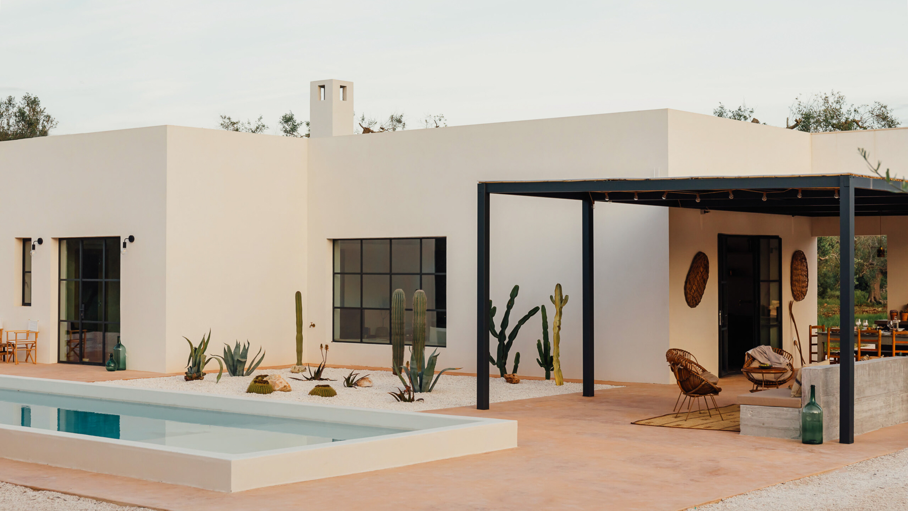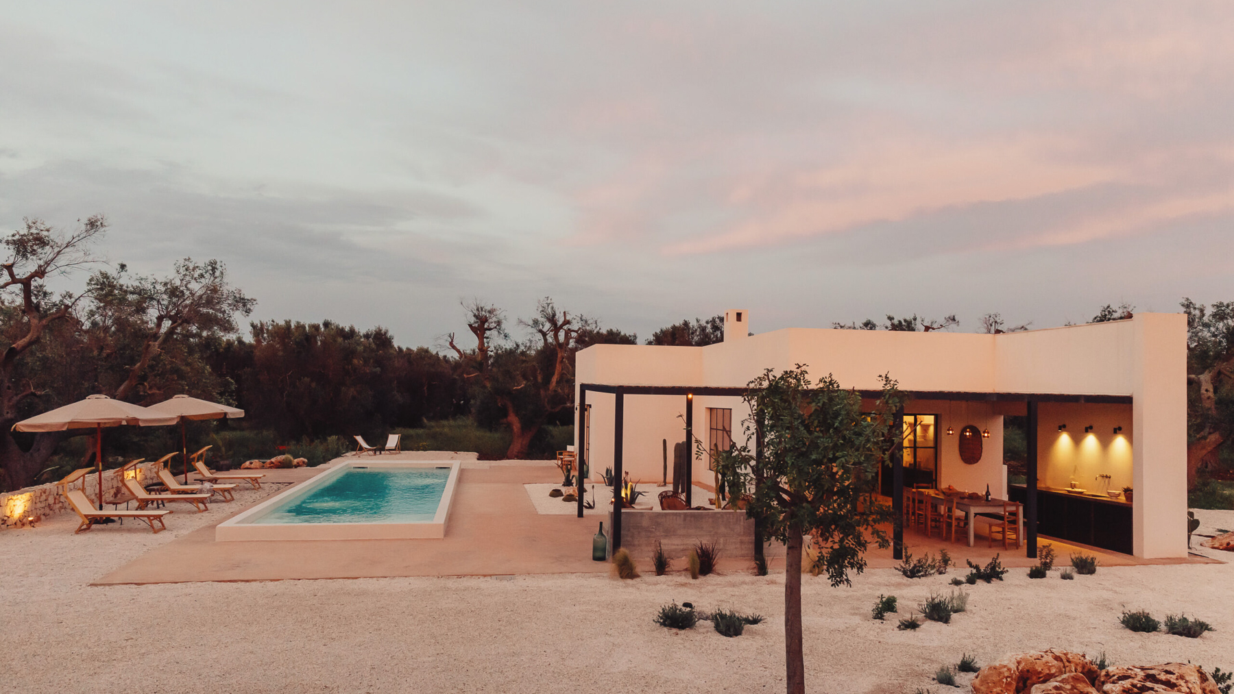 Tucked away in the serene countryside of Carovigno, Brindisi, this luxurious modern retreat promises a world of tranquility and elegance. Surrounded by lush greenery and the gentle rustle of leaves, the ambiance is one of peaceful seclusion, where natural beauty harmonizes with contemporary design. Imagine the soft glow of the sun reflecting off the pristine waters of your private swimming pool, creating a scene of pure relaxation. Spanning 150 square meters, this exquisite property boasts seven spacious rooms and four elegantly appointed bathrooms. The light-colored facade of the minimalist house, complemented by expansive windows and a sleek flat roof, embodies a seamless blend of indoor and outdoor living. The private garden, adorned with cacti and white gravel pathways, serves as a perfect sanctuary for meditation or afternoon siestas. This residence is more than just a home