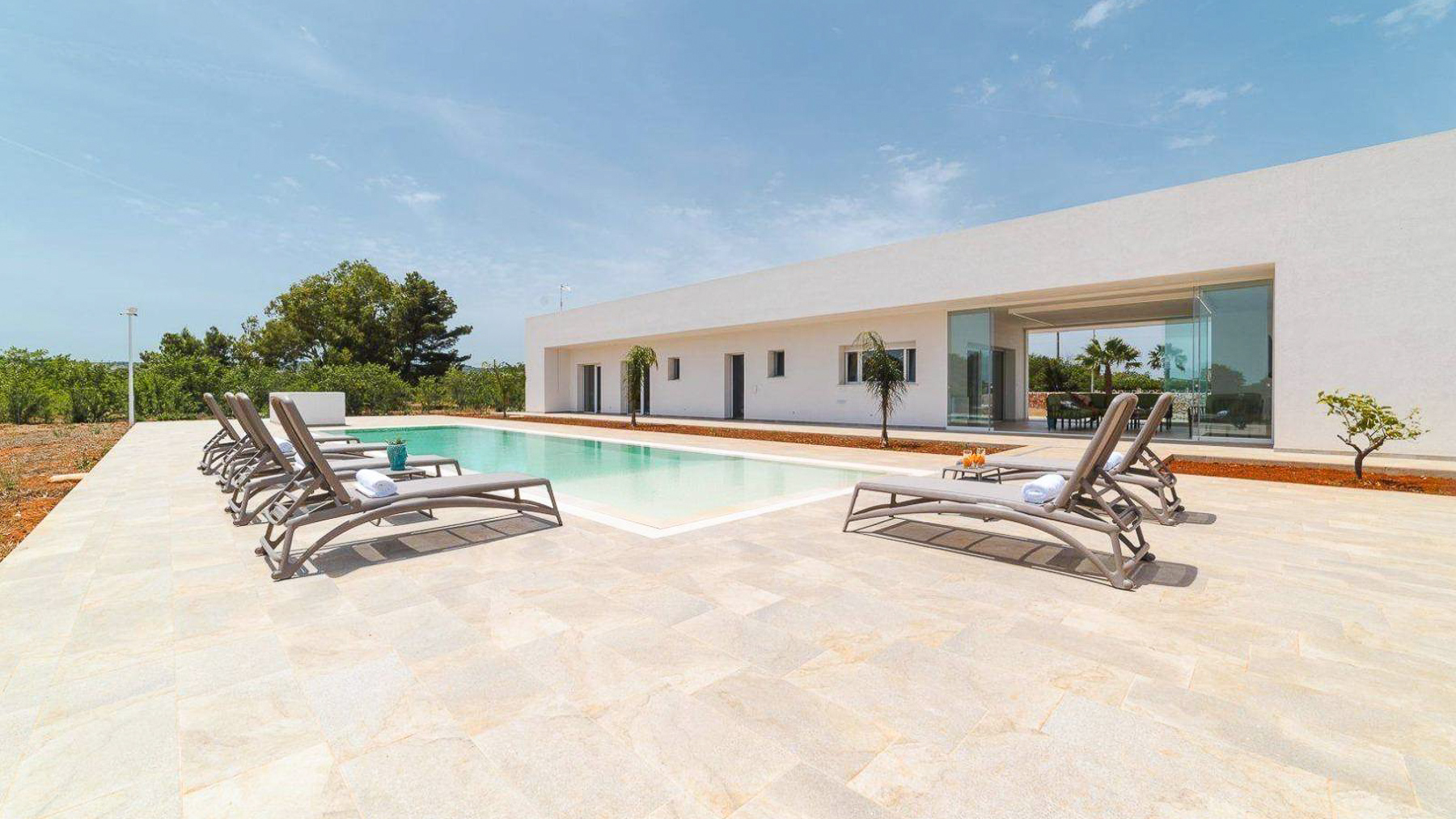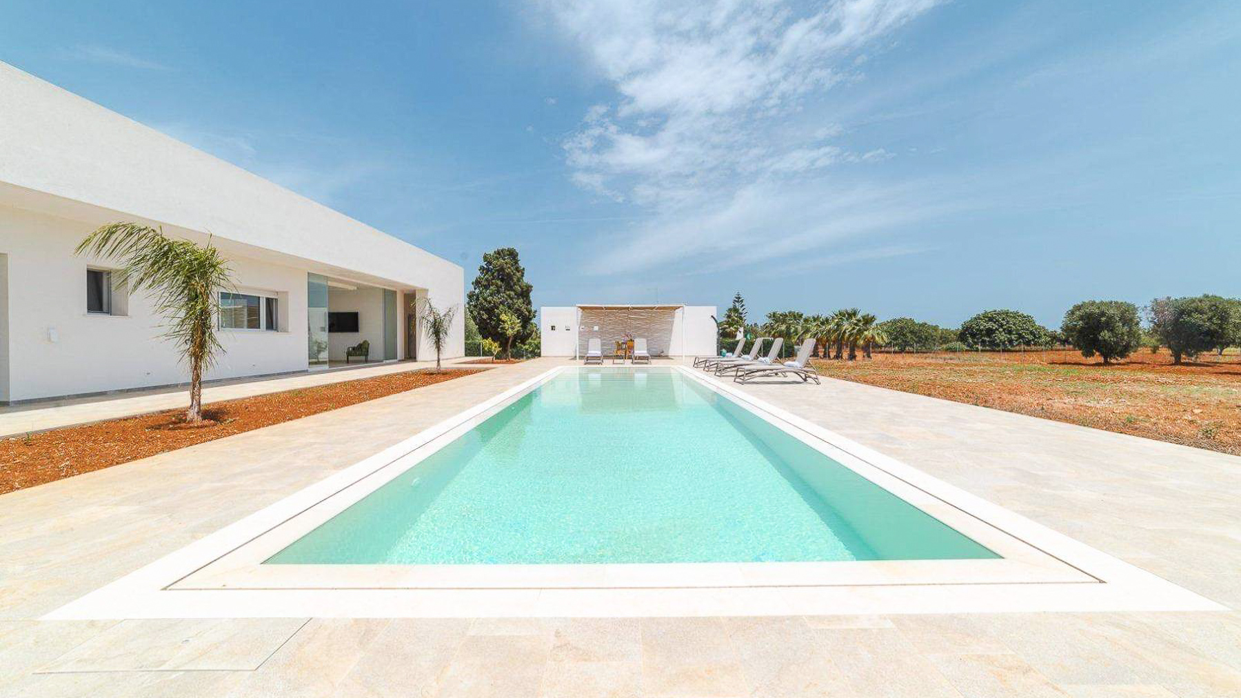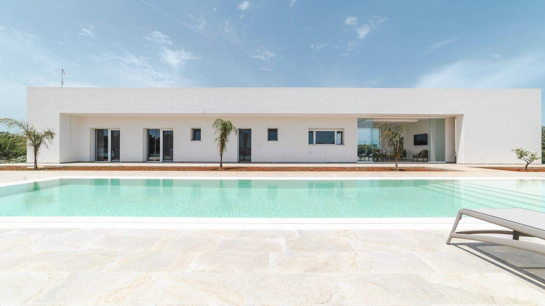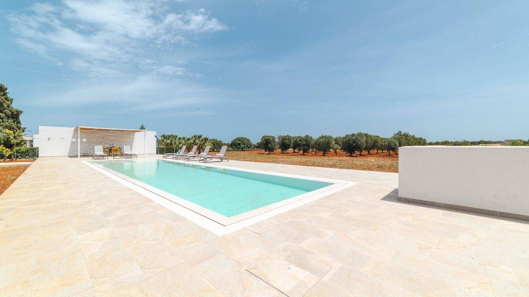 Embrace the allure of modern sophistication in this exquisite home, where sleek lines and expansive glass windows seamlessly blend the indoor and outdoor realms. Surrounded by the tranquility of the countryside, this residence offers a serene escape, framed by the gentle rustling of leaves and the shimmering reflection of the swimming pool under the sun. Spanning 270 square meters, this luxurious property in Carovigno, Brindisi, is perfectly crafted for those who appreciate contemporary elegance. With eight spacious rooms and four elegant bathrooms, the home boasts a private garden and a pristine pool. The expansive terrace provides an ideal setting for both relaxation and entertaining, offering a magnificent view of the lush landscape. Imagine waking up to the soft light filtering through the large sliding glass doors, sipping your morning coffee as you overlook the pool. The minimalist design and neutral palette create a soothing ambiance, perfect for unwinding after a day spent exploring the captivating Italian countryside. This home is a remarkable blend of luxury and modern design—a true sanctuary for those seeking a unique and prestigious lifestyle. Discover the perfect harmony of beauty and comfort in a home that is nothing short of extraordinary.