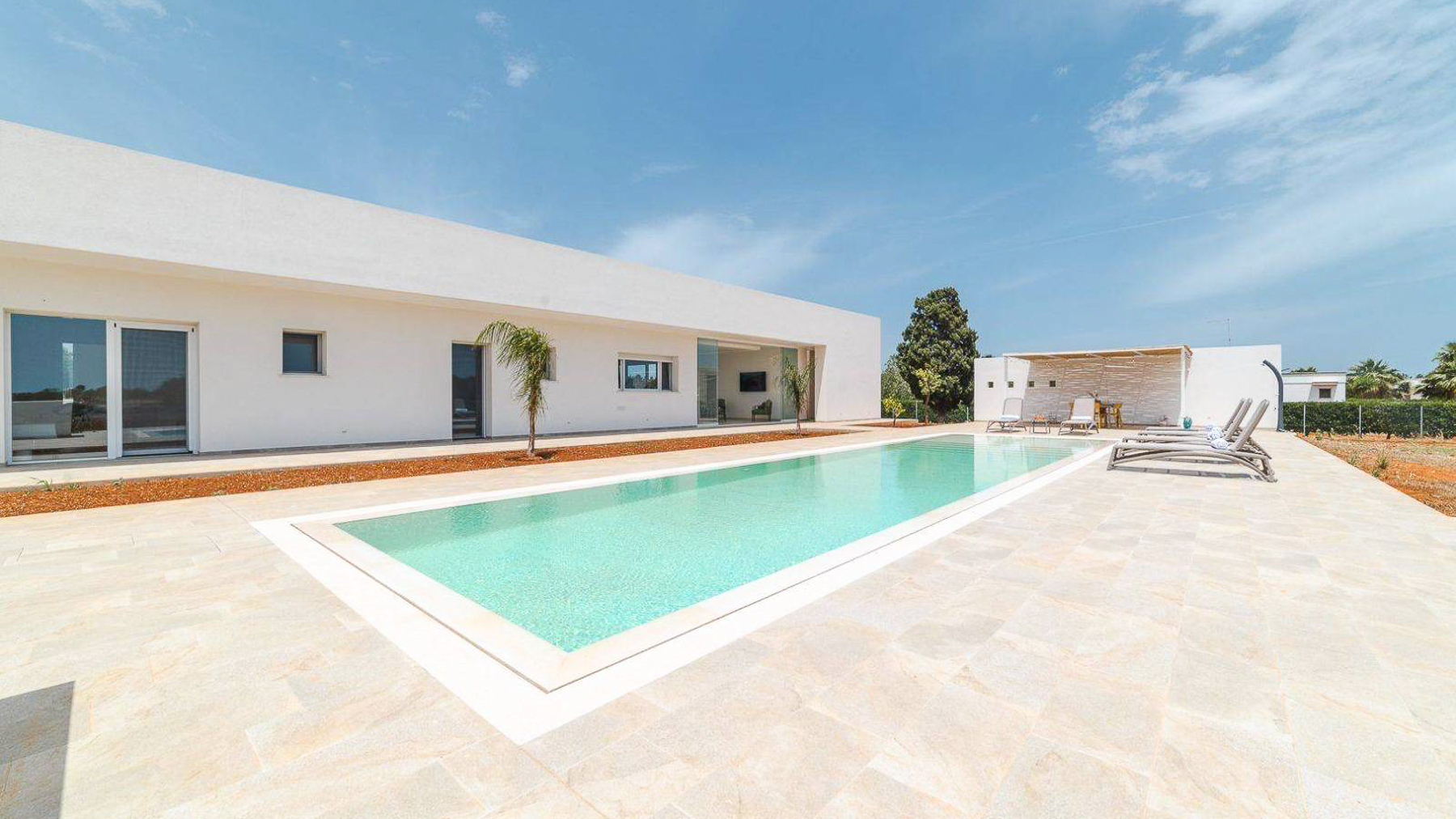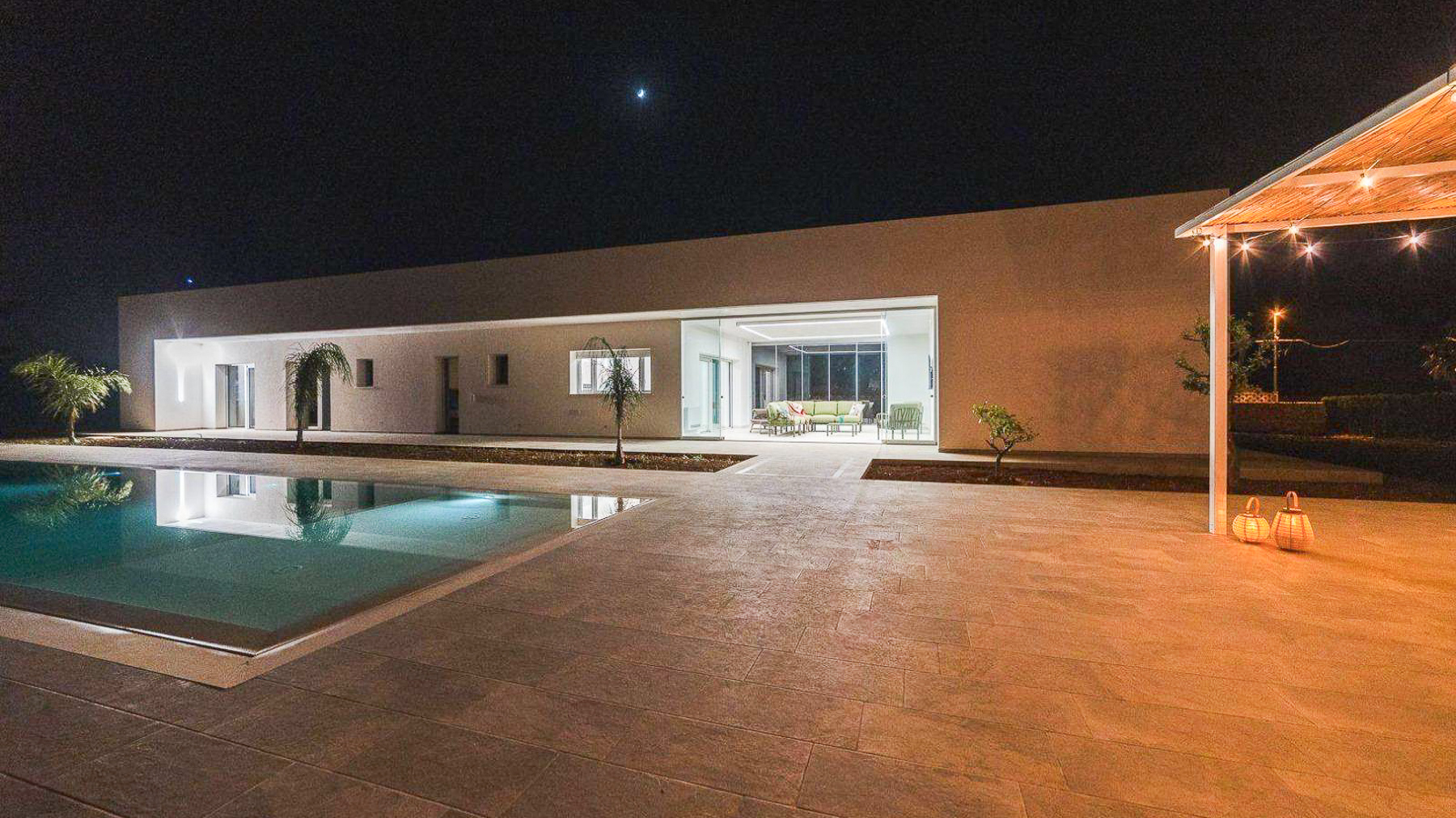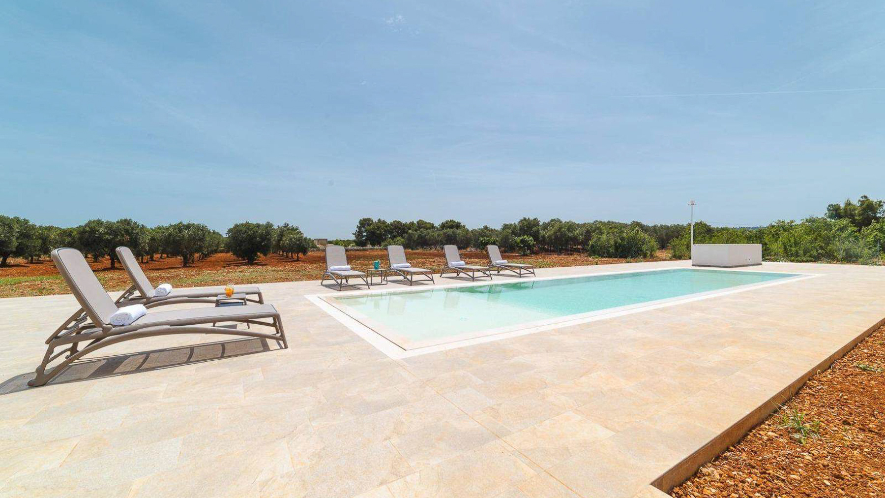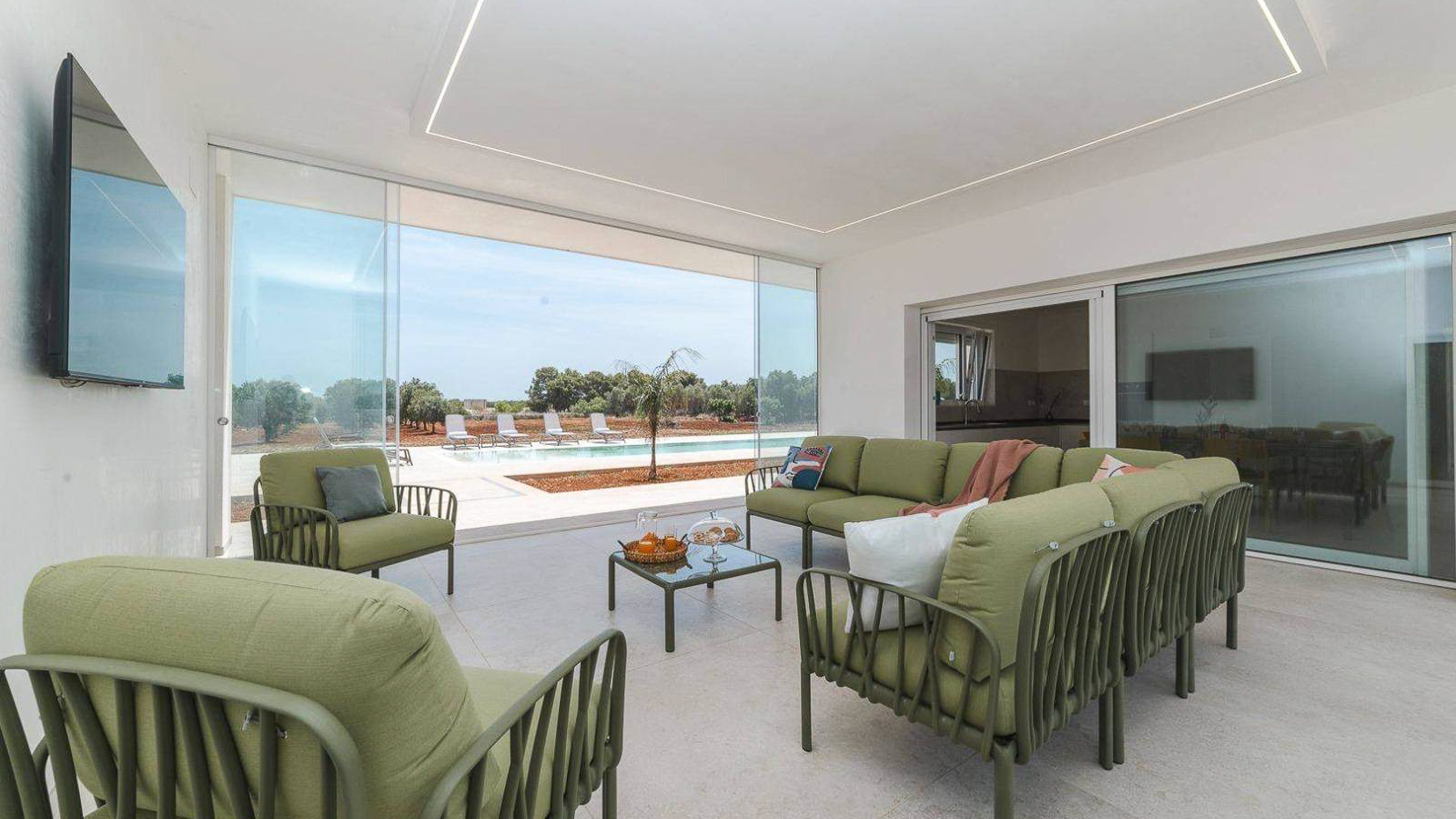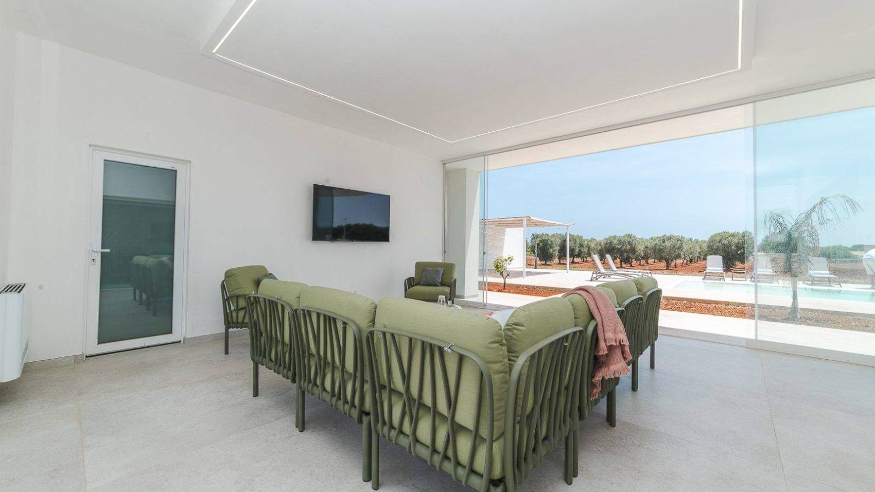 Embrace the allure of modern sophistication in this exquisite home, where sleek lines and expansive glass windows seamlessly blend the indoor and outdoor realms. Surrounded by the tranquility of the countryside, this residence offers a serene escape, framed by the gentle rustling of leaves and the shimmering reflection of the swimming pool under the sun. Spanning 270 square meters, this luxurious property in Carovigno, Brindisi, is perfectly crafted for those who appreciate contemporary elegance. With eight spacious rooms and four elegant bathrooms, the home boasts a private garden and a pristine pool. The expansive terrace provides an ideal setting for both relaxation and entertaining, offering a magnificent view of the lush landscape. Imagine waking up to the soft light filtering through the large sliding glass doors, sipping your morning coffee as you overlook the pool. The minimalist design and neutral palette create a soothing ambiance, perfect for unwinding after a day spent exploring the captivating Italian countryside. This home is a remarkable blend of luxury and modern design—a true sanctuary for those seeking a unique and prestigious lifestyle. Discover the perfect harmony of beauty and comfort in a home that is nothing short of extraordinary.