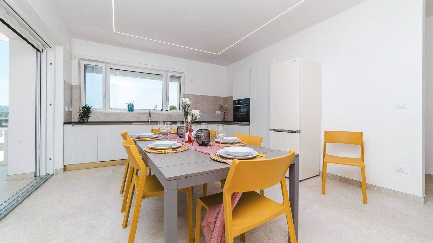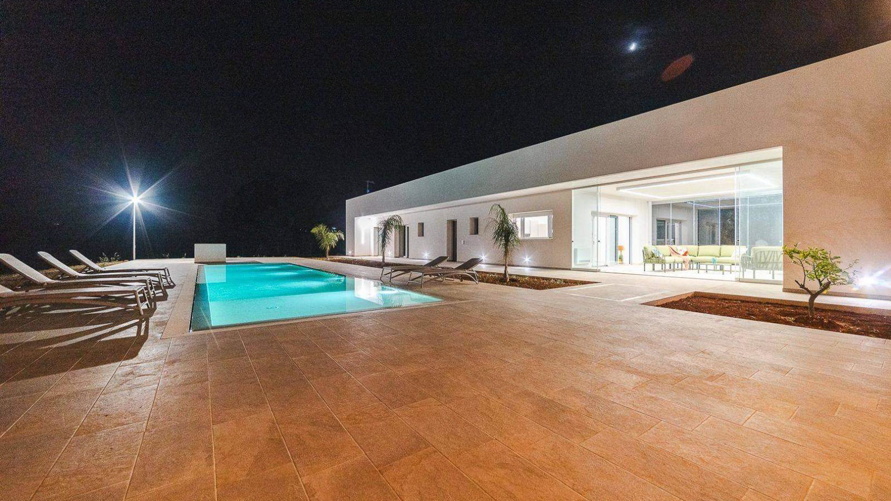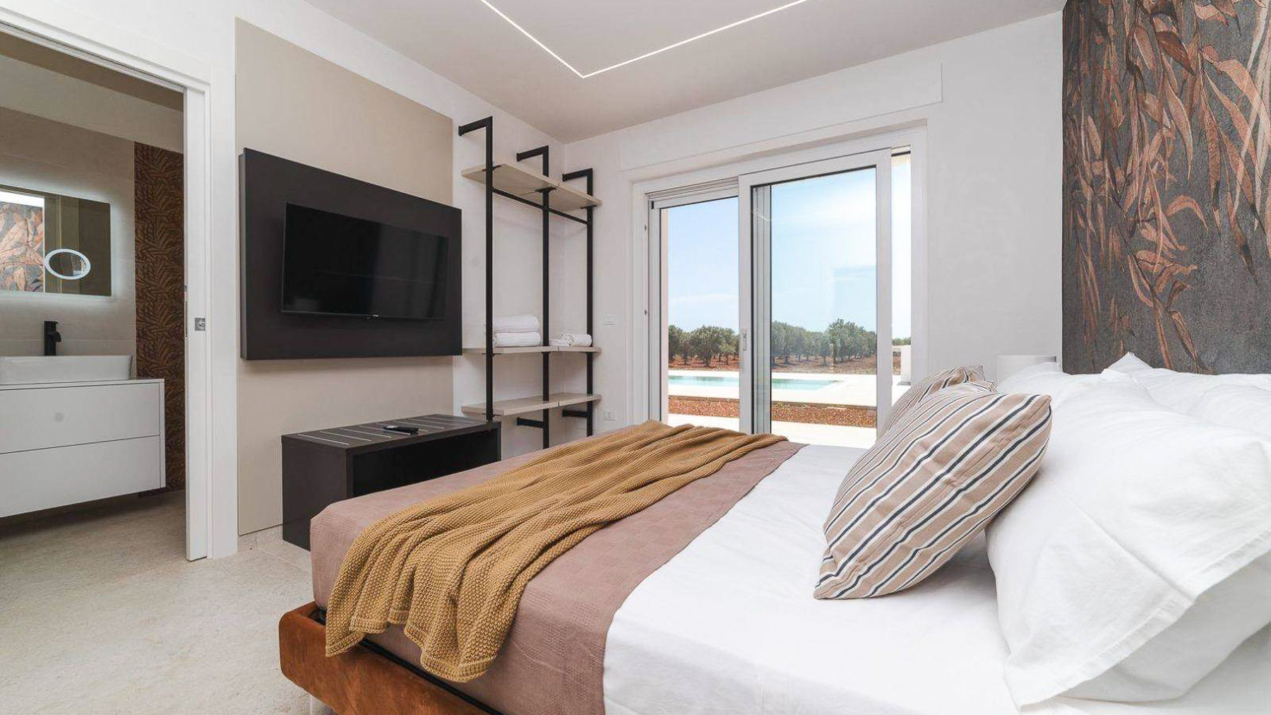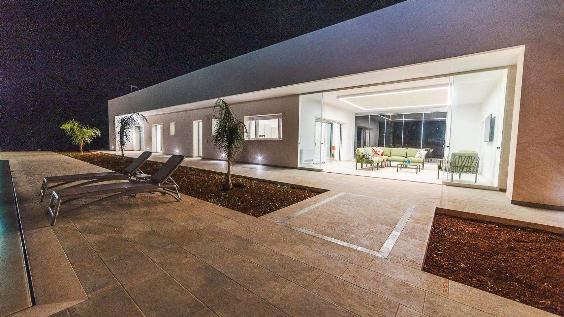 Embrace the allure of modern sophistication in this exquisite home, where sleek lines and expansive glass windows seamlessly blend the indoor and outdoor realms. Surrounded by the tranquility of the countryside, this residence offers a serene escape, framed by the gentle rustling of leaves and the shimmering reflection of the swimming pool under the sun. Spanning 270 square meters, this luxurious property in Carovigno, Brindisi, is perfectly crafted for those who appreciate contemporary elegance. With eight spacious rooms and four elegant bathrooms, the home boasts a private garden and a pristine pool. The expansive terrace provides an ideal setting for both relaxation and entertaining, offering a magnificent view of the lush landscape. Imagine waking up to the soft light filtering through the large sliding glass doors, sipping your morning coffee as you overlook the pool. The minimalist design and neutral palette create a soothing ambiance, perfect for unwinding after a day spent exploring the captivating Italian countryside. This home is a remarkable blend of luxury and modern design—a true sanctuary for those seeking a unique and prestigious lifestyle. Discover the perfect harmony of beauty and comfort in a home that is nothing short of extraordinary.