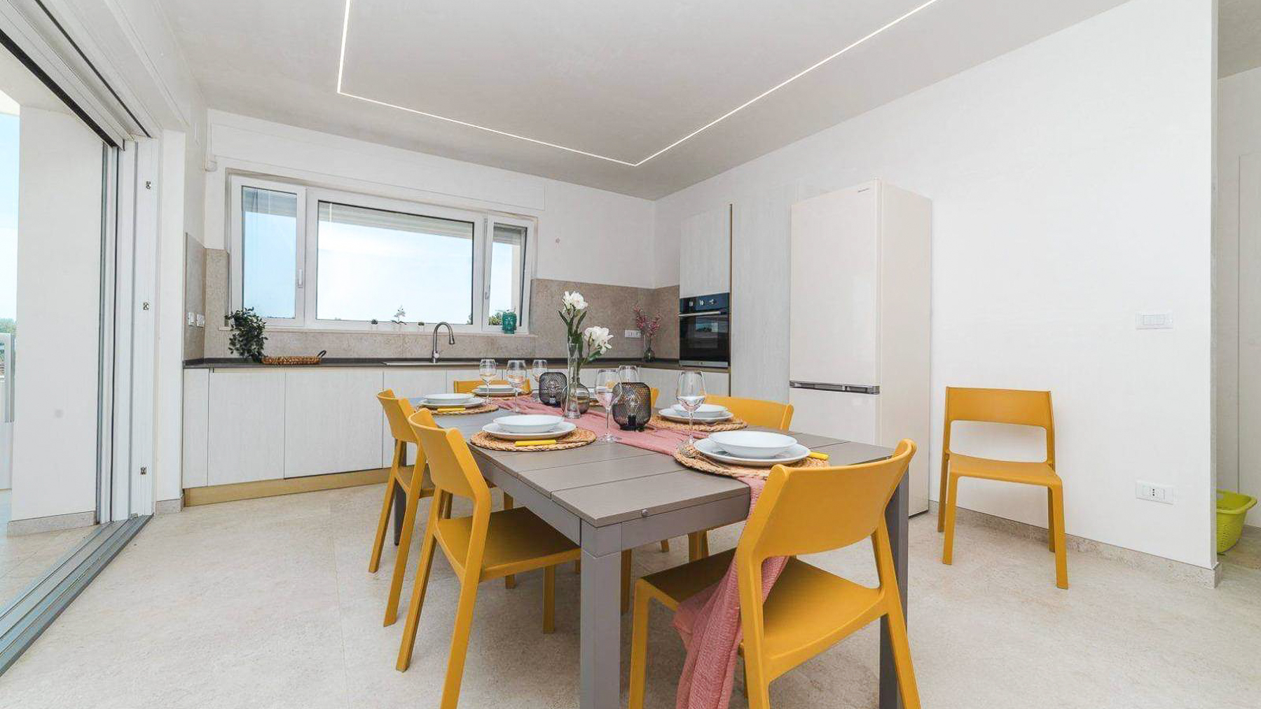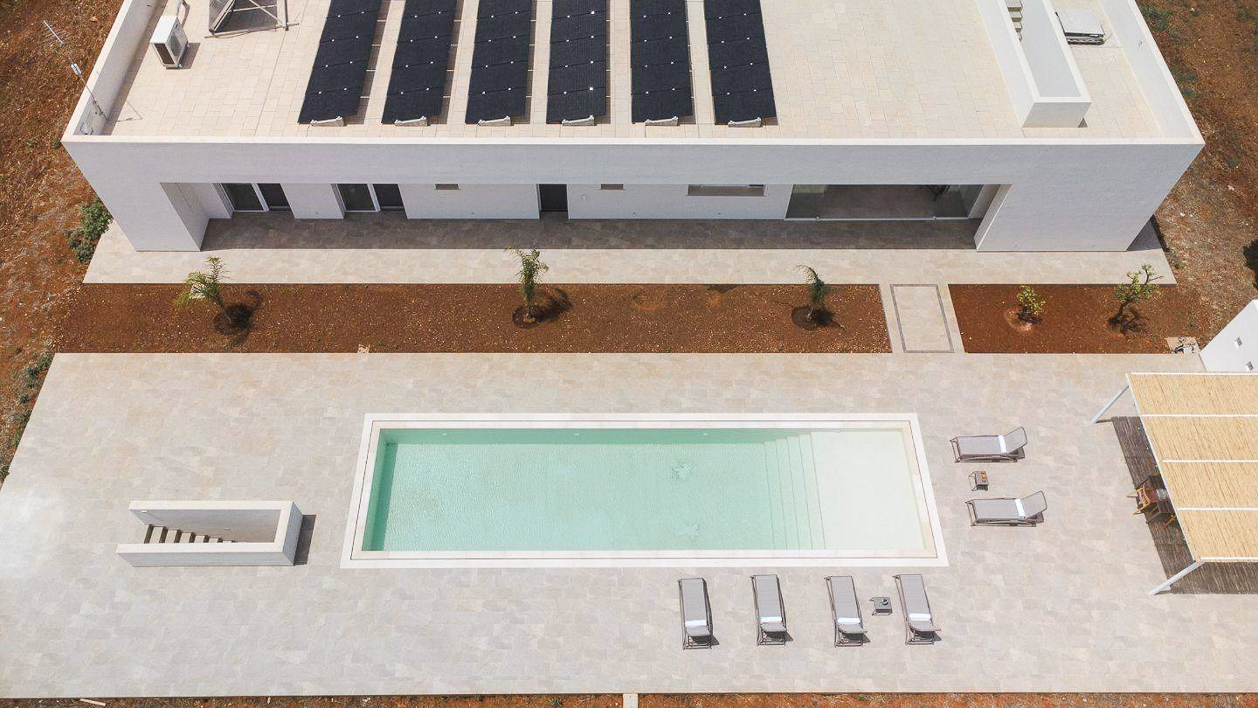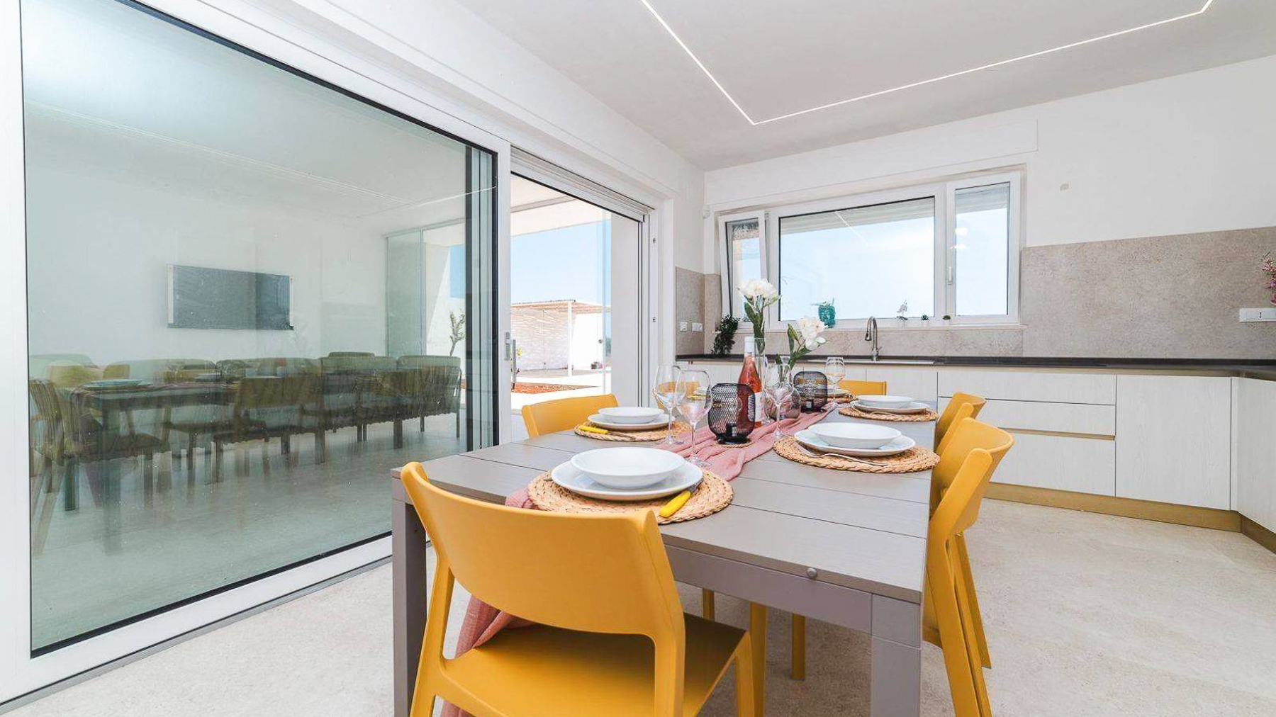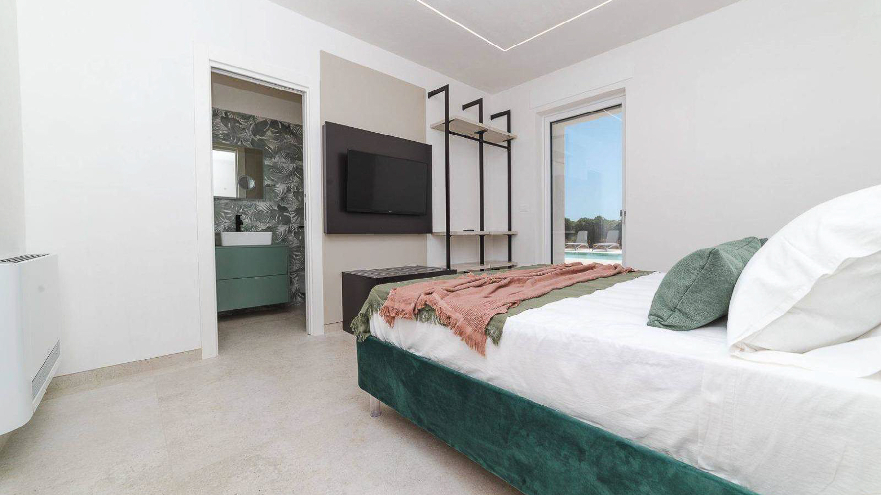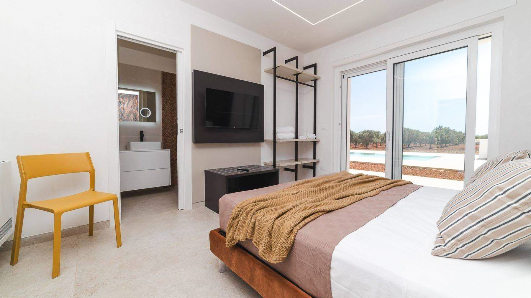 Embrace the allure of modern sophistication in this exquisite home, where sleek lines and expansive glass windows seamlessly blend the indoor and outdoor realms. Surrounded by the tranquility of the countryside, this residence offers a serene escape, framed by the gentle rustling of leaves and the shimmering reflection of the swimming pool under the sun. Spanning 270 square meters, this luxurious property in Carovigno, Brindisi, is perfectly crafted for those who appreciate contemporary elegance. With eight spacious rooms and four elegant bathrooms, the home boasts a private garden and a pristine pool. The expansive terrace provides an ideal setting for both relaxation and entertaining, offering a magnificent view of the lush landscape. Imagine waking up to the soft light filtering through the large sliding glass doors, sipping your morning coffee as you overlook the pool. The minimalist design and neutral palette create a soothing ambiance, perfect for unwinding after a day spent exploring the captivating Italian countryside. This home is a remarkable blend of luxury and modern design—a true sanctuary for those seeking a unique and prestigious lifestyle. Discover the perfect harmony of beauty and comfort in a home that is nothing short of extraordinary.