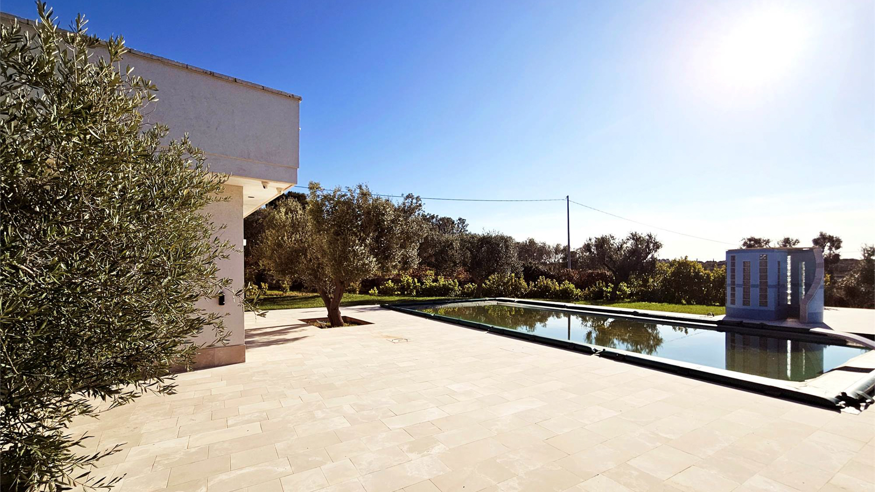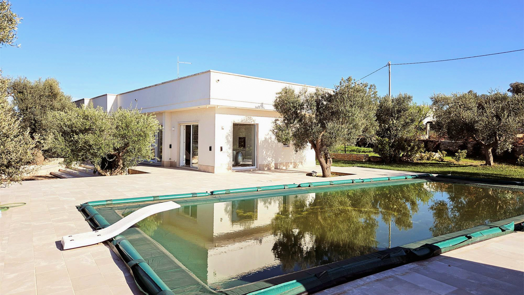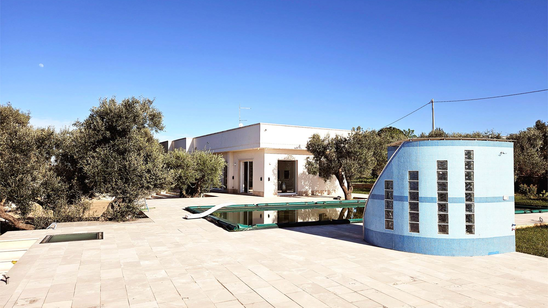 In the heart of a serene landscape, where olive trees sway under a warm, azure sky, discover a modern sanctuary that seamlessly blends luxury with tranquility. This exquisite property captures the essence of sophisticated living, with its light-filled spaces and harmonious connection to nature. Spanning 266 square meters, this single-story masterpiece in Carovigno, Brindisi, encompasses nine elegantly designed rooms and three luxurious bathrooms. Its distinctive features include a private garden, a serene terrace, and a reflecting pool that invites peace and reflection. The modern architectural style is accentuated by large windows and a minimalist kitchen, creating a bright and airy atmosphere that is perfect for entertaining or quiet reflection. Embrace a lifestyle where every day feels like a retreat. Imagine sun-drenched afternoons by the pool, evenings in the garden surrounded by the gentle rustle of olive leaves, and mornings filled with natural light pouring through expansive windows. This property offers an unparalleled living experience, where comfort meets elegance. This residence is not just a home; it is a statement of prestige and exclusivity. It stands as a unique opportunity to own a slice of paradise in the luxury real estate market, where modern design meets timeless beauty.