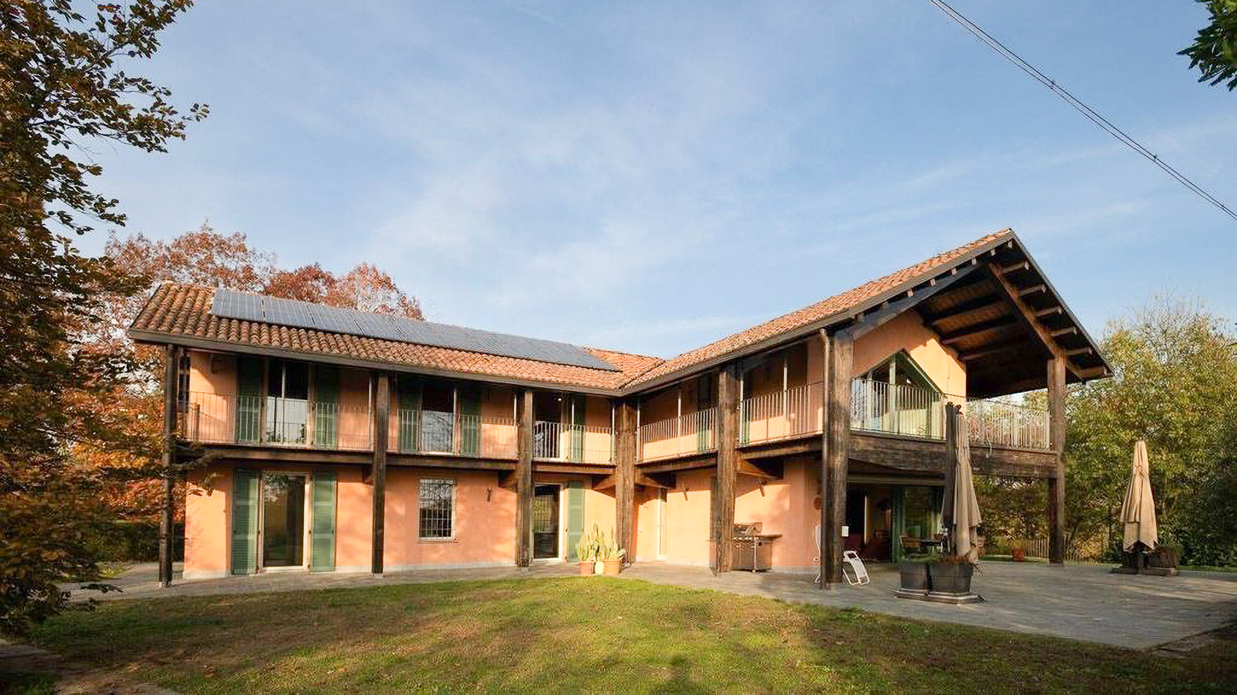 Tucked away in the serene embrace of a picturesque rural landscape, this exquisite two-story residence offers a harmonious blend of rustic charm and modern elegance. The vibrant orange façade, accented with rich wooden elements, stands in striking contrast to the lush greenery and colorful autumn foliage surrounding it. Natural light pours through large windows, illuminating the warmth and sophistication within. Spanning an impressive 535 square meters, this home features five spacious rooms and three luxurious bathrooms, perfectly designed for comfort and style. The property boasts distinctive features such as a private garden and a spacious terrace, ideal for relaxation and entertainment. Located in Carretti, Asti (AT), this residence epitomizes the idyllic countryside lifestyle—peaceful, picturesque, and profoundly connected to nature. Living here means embracing a lifestyle of tranquility and elegance. Imagine quiet mornings on the terrace with a cup of coffee, as the sun gently rises over the rolling hills. Evenings transform into magical gatherings beneath starry skies, where the garden becomes your personal haven of solitude and reflection. This property is a rare find in the luxury real estate market, offering a perfect synergy of timeless design and modern amenities. It stands as a testament to sophisticated living, inviting you to experience the ultimate in rural luxury.