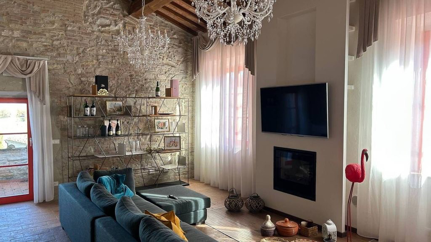 In the enchanting landscape of Casole d'Elsa, Siena, a stunning stone house awaits, embraced by nature's lush beauty. Imagine waking up to the gentle rustling of leaves and the sight of sunlit vineyards stretching to the horizon. The air is filled with the fragrance of flowers from the decorative garden, creating a serene atmosphere that soothes the soul. This exquisite property spans 1120 square meters and includes five charming rooms and three elegant bathrooms. Designed for a luxurious lifestyle, it features a private garden, a refreshing pool, and a terrace that promises breathtaking views. The rustic stone exterior complements the tranquil countryside setting, making it a perfect haven for those seeking peace and luxury. Living here means indulging in the simple pleasures of life. Picture yourself lounging by the pool, savoring the warmth of the sun, or enjoying al fresco dining on the terrace as the sun sets over the verdant fields. The cypress trees stand as silent sentinels, adding a touch of elegance to your every moment. This property is a sanctuary of sophistication, offering an unparalleled blend of rustic charm and modern comfort. It is a rare opportunity to own a piece of Tuscany's serene beauty, where every day feels like a retreat into tranquility.