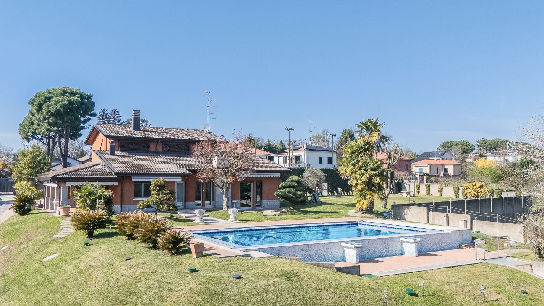 Enveloped by the serene beauty of its manicured landscape, this enchanting property offers a sanctuary of luxury and peace. The gentle rustle of leaves and the glistening reflection of the sun on the swimming pool create an inviting atmosphere, where every moment feels like a retreat into a private paradise. Spanning 400 square meters, this exquisite estate boasts 20 spacious rooms and 4 elegantly appointed bathrooms. The harmonious blend of stone and brick facade, complemented by a tiled roof and numerous windows, reveals the sophistication within. A private pool, surrounded by a charming patio and lush garden, provides a perfect escape. Located in the vibrant community of Cassano Magnago, Varese, this residence combines city life with tranquil living, offering the best of both worlds. Experience the joy of living where every day feels like a vacation. Picture afternoons spent lounging by your private pool, evenings dining on the terrace under a canvas of stars, and mornings waking up to the gentle embrace of sunlight filtering through the trees. This property is a testament to elegance and exclusivity, offering a unique blend of classic charm and modern luxury. It stands as a rare jewel in the prestigious landscape of luxury real estate.