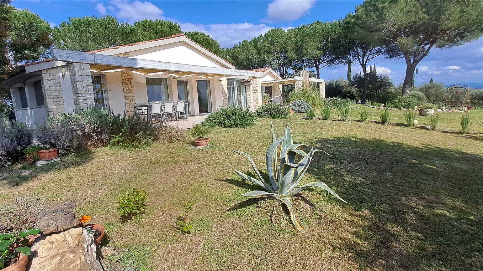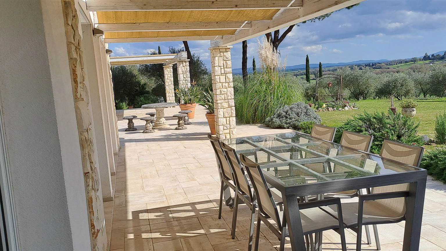 In the serene embrace of nature, this exquisite modern abode promises a retreat into luxury and tranquility. The light exterior, a harmonious blend of stone and plaster, is beautifully complemented by a vibrant red-tiled roof. As you step onto the lush green lawn, the gentle sway of the swing set and the whispering breeze through the trees invite you to immerse yourself in the idyllic surroundings. Spanning 346 square meters, this exceptional property in Castiglione della Pescaia, Grosseto, offers a spacious haven with nine rooms and three elegantly designed bathrooms. Its distinctive features include a private garden, creating a seamless connection between indoor elegance and outdoor serenity. The architectural style, highlighted by a generous porch, embodies modern sophistication while harmonizing with the natural landscape. Living in this residence is an experience of unparalleled serenity. Imagine waking up to the melodic chirping of birds, spending afternoons lounging in your private garden, and evenings in the gentle glow of twilight, surrounded by vibrant greenery. This home offers an escape into a lifestyle of comfort and elegance, a true sanctuary in the heart of the countryside. This property is a masterpiece of luxury and refinement, offering a rare opportunity to own a piece of paradise in the prestigious landscape of Italian real estate. It is a testament to timeless beauty and modern comfort, a unique jewel waiting to be discovered.