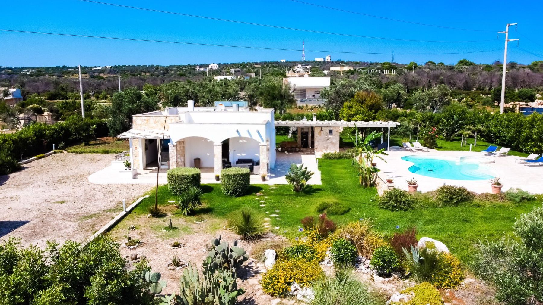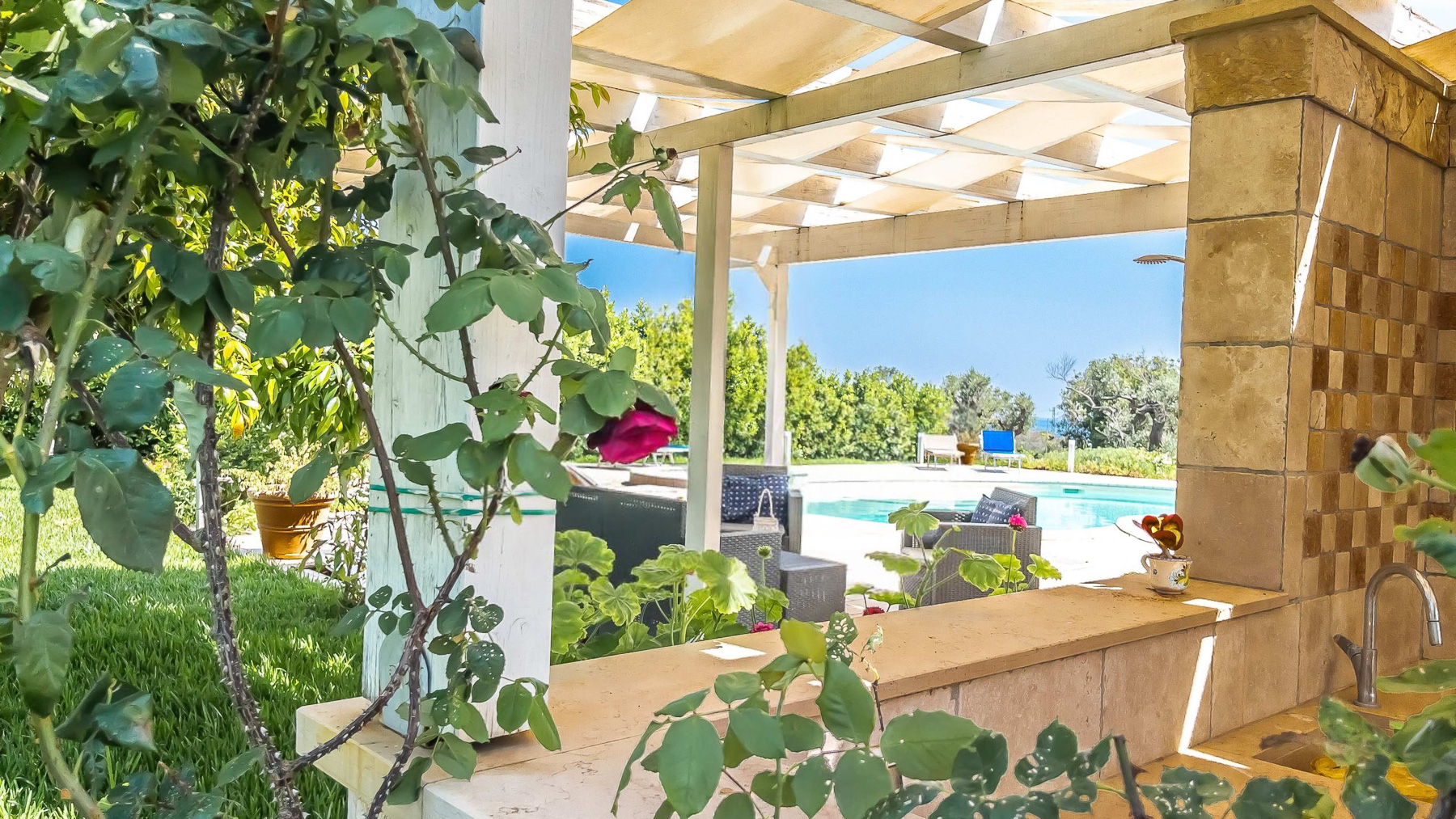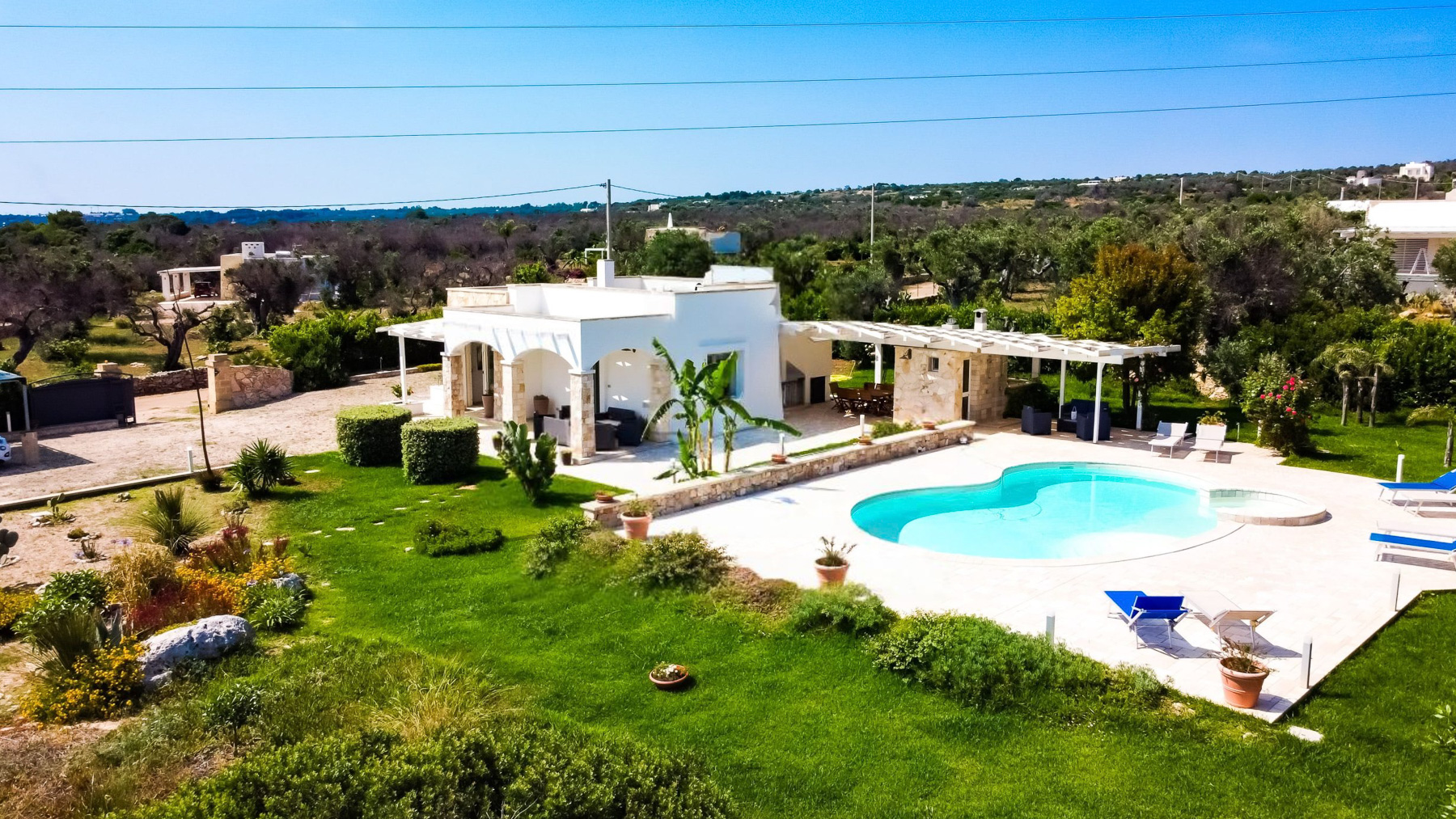 Amidst the serene embrace of Castrignano del Capo's enchanting countryside, a luxurious retreat beckons with the allure of tranquility and refinement. Imagine the gentle rustle of leaves and the distant song of birds creating a symphony of peace in this picturesque haven, where every moment feels like a timeless escape. Spanning 140 square meters, this exquisite residence offers an artful blend of modern sophistication and rustic charm. With five spacious rooms and three elegantly appointed bathrooms, the property is a sanctuary of comfort. A private garden flourishes with lush greenery, offering an intimate connection to nature. The home is surrounded by rolling hills and verdant landscapes, providing a stunning backdrop for daily life. The quaint town of Lecce is close by, inviting exploration of its rich history and vibrant culture. Life here is a symphony of experiences, where mornings begin with coffee on the patio, and afternoons unfold by the glistening swimming pool. As the sun sets, the cozy indoor spaces transform into a haven of warmth, with floral-patterned sofas and elegant glassware casting a gentle glow. Each day invites a new adventure in relaxation and luxury. This property is a masterpiece of elegance and comfort, a rare treasure in the luxury real estate market. It promises a lifestyle of unparalleled grace and serenity, where every moment is a celebration of beauty and ease.